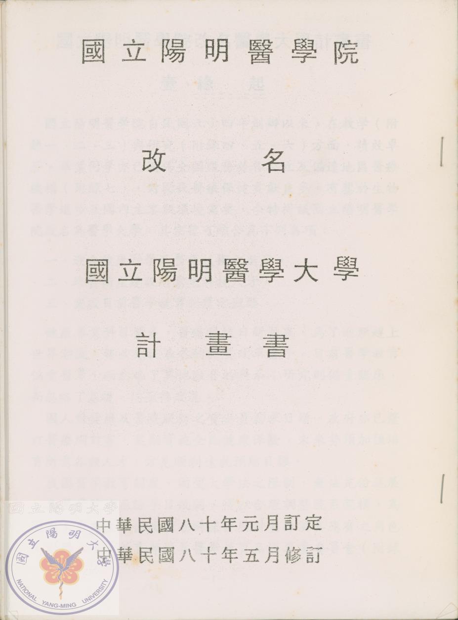 國立陽明醫學院簡介英文版。/秘書室移交