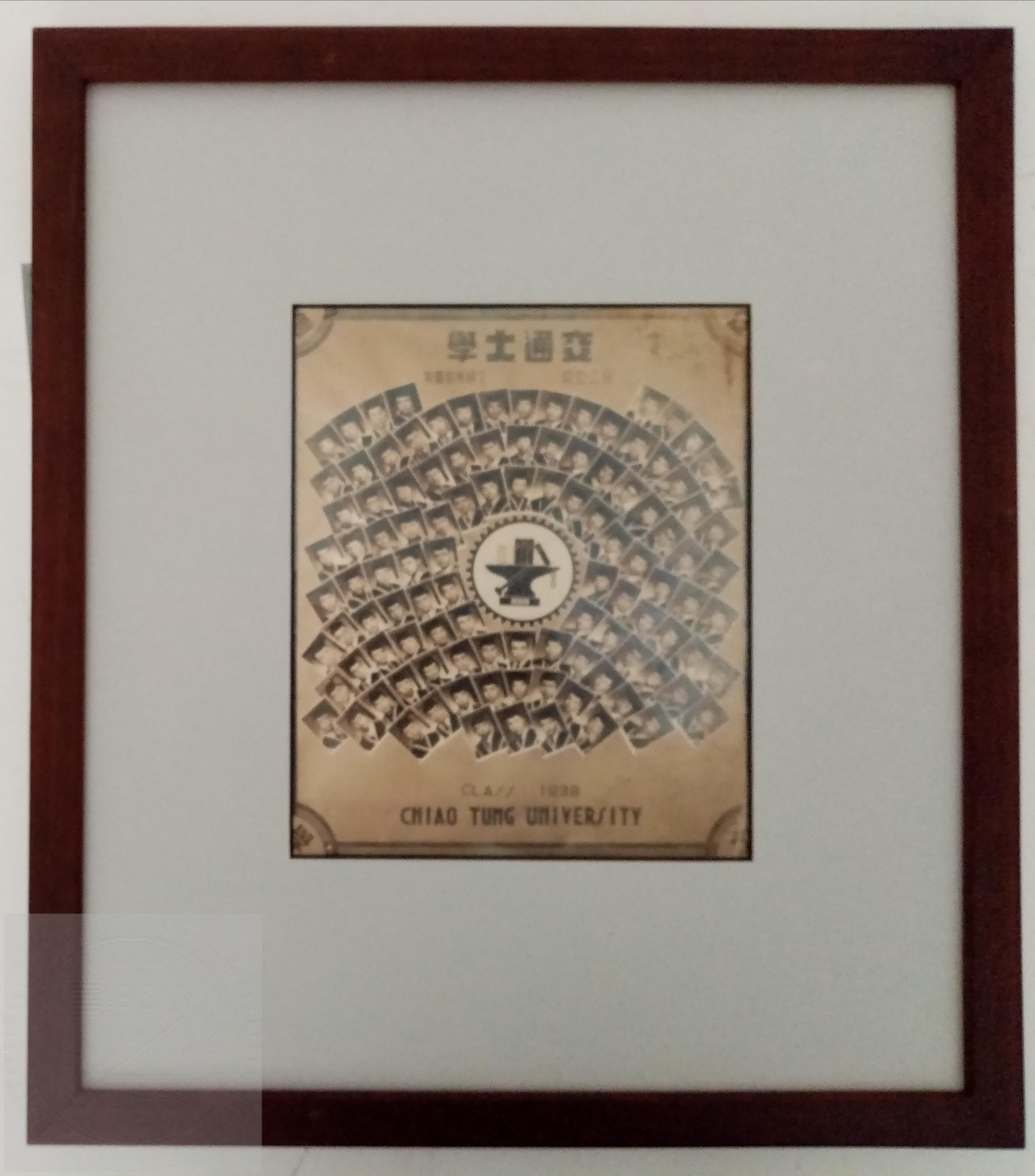 交通大學民二七級畢業照。裱框文物