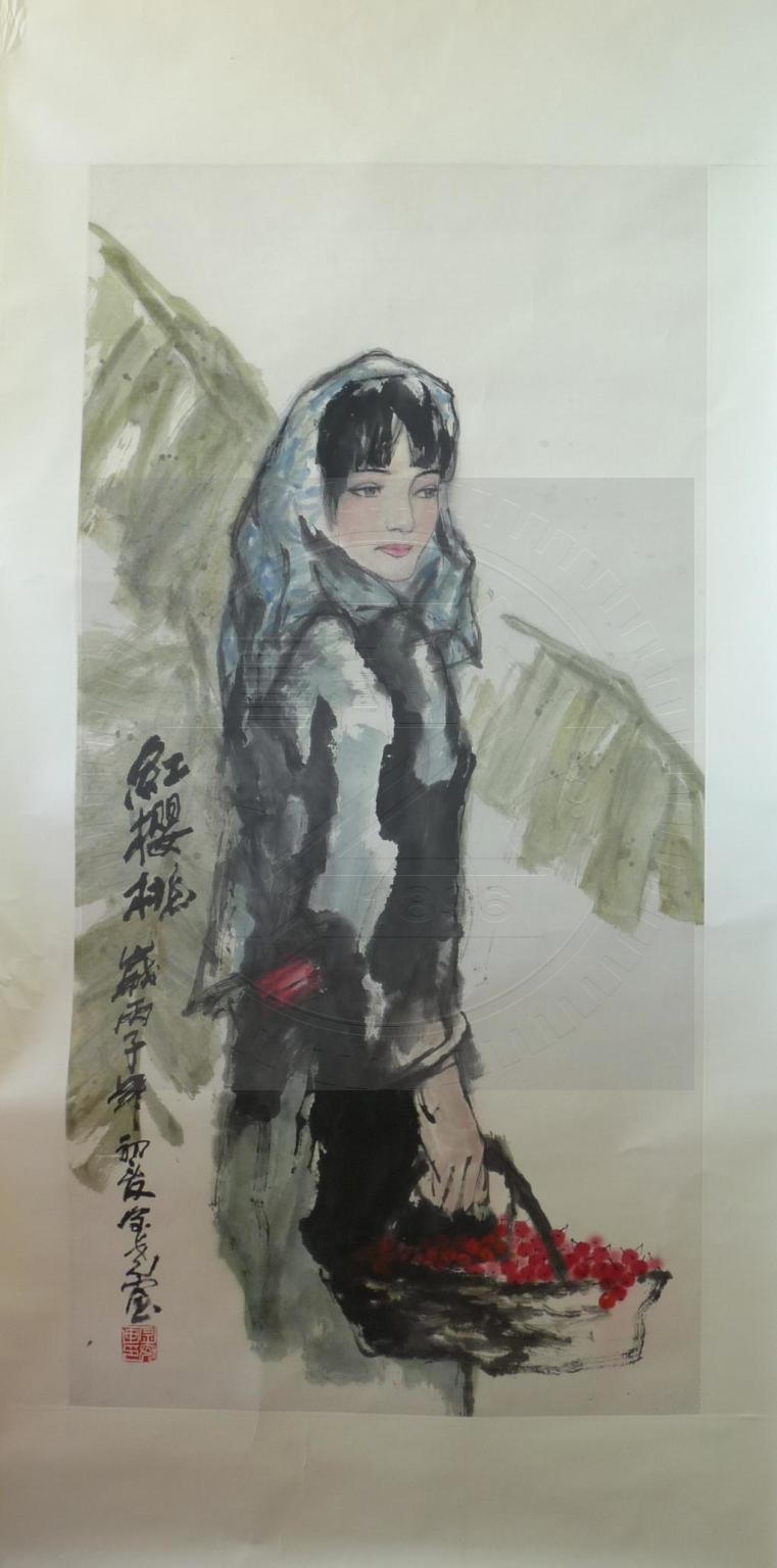 紅櫻桃 (歲丙子年初夏),水墨作品。(卷軸)