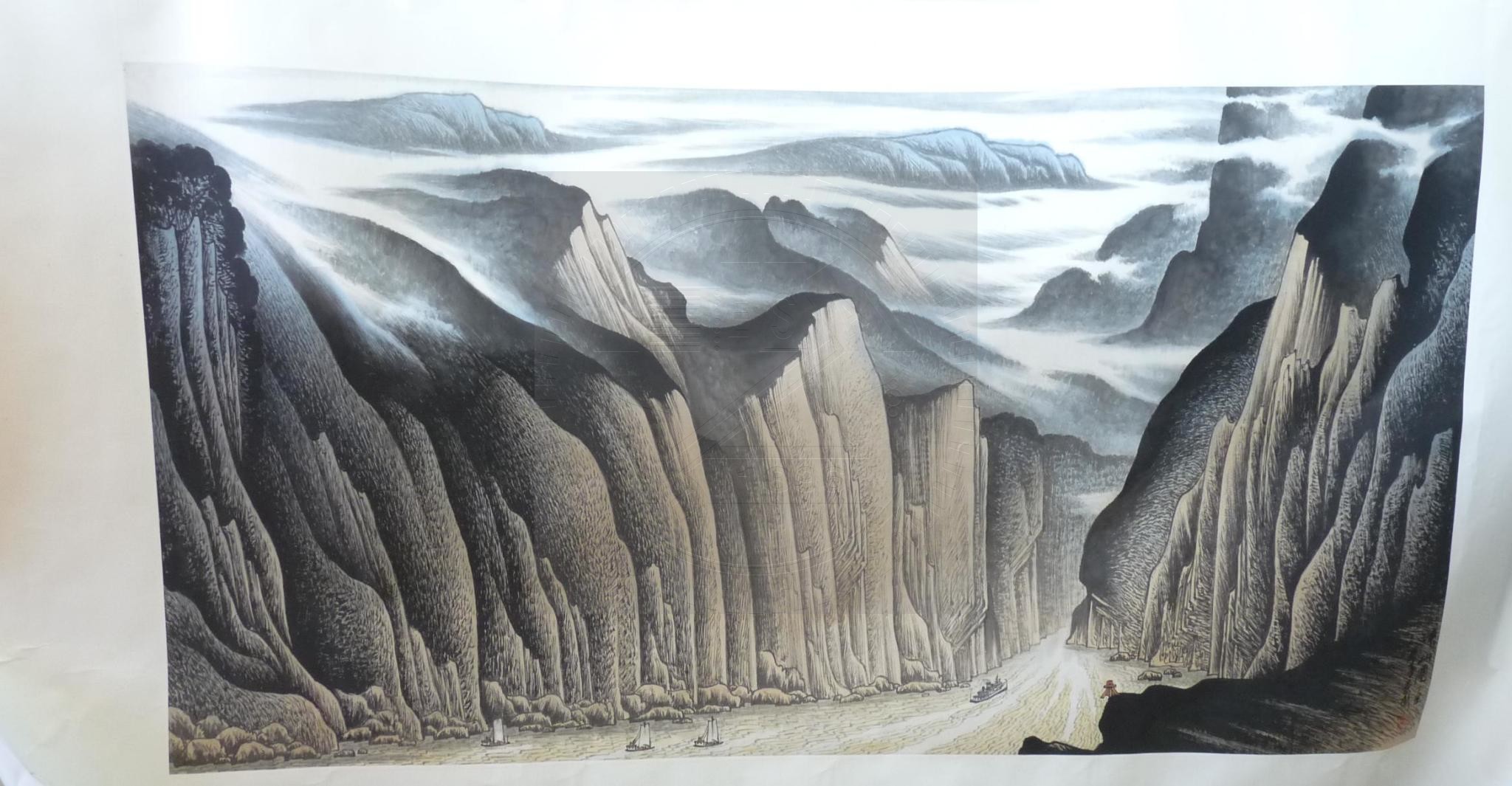 早發白帝城 (丁丑春),水墨作品。 (卷軸)