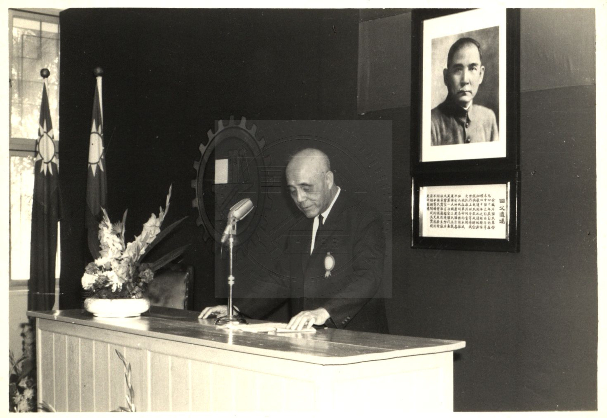 中國石油學會第六屆年會 何敬之將軍應邀蒞會作專題演講前於會場休息。說明:1、民國57年12月8日。..