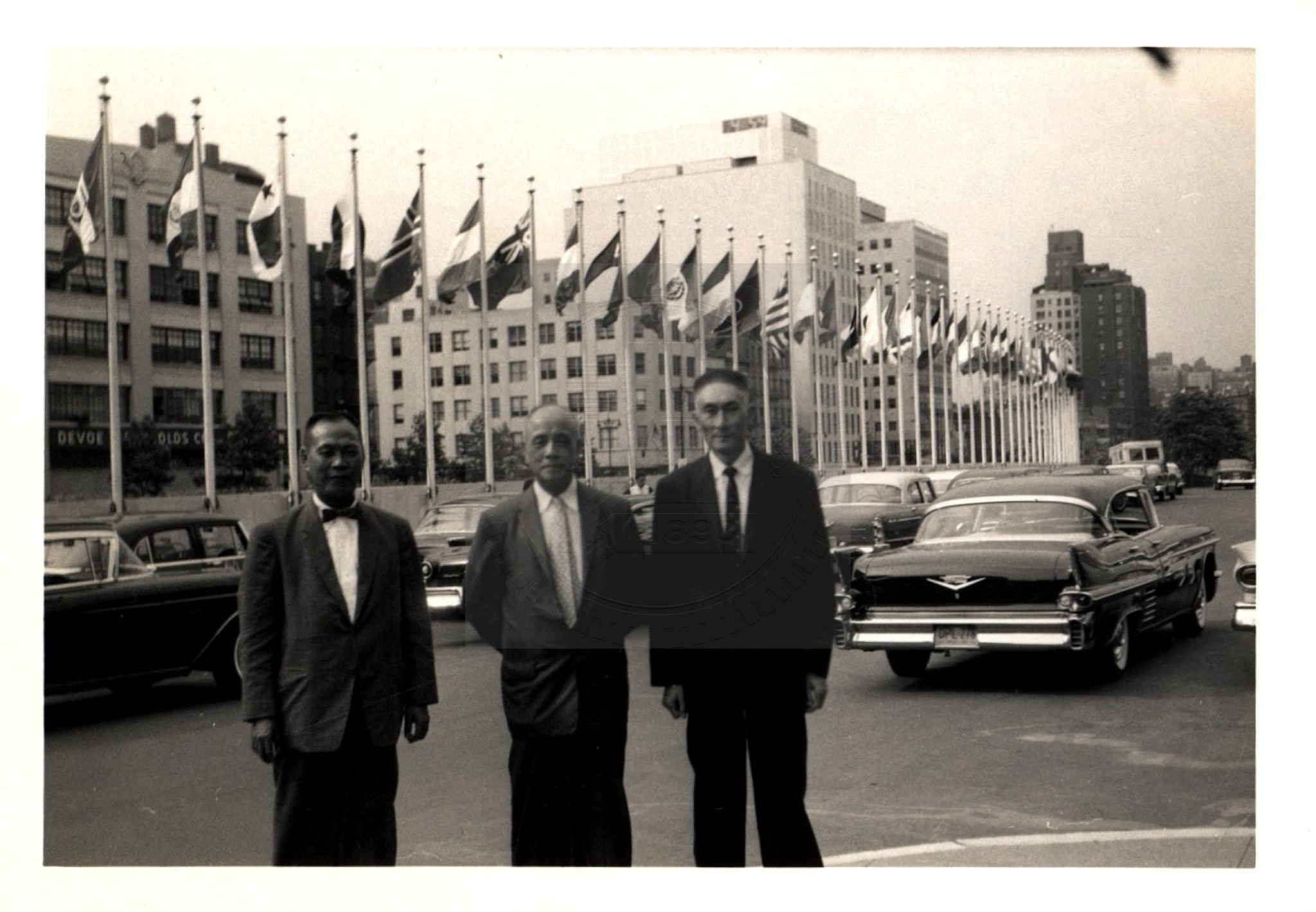 淩鴻勛先生攝於世界博覽會,淩鴻勛 (中)。(淩鴻勛先生珍藏資料)