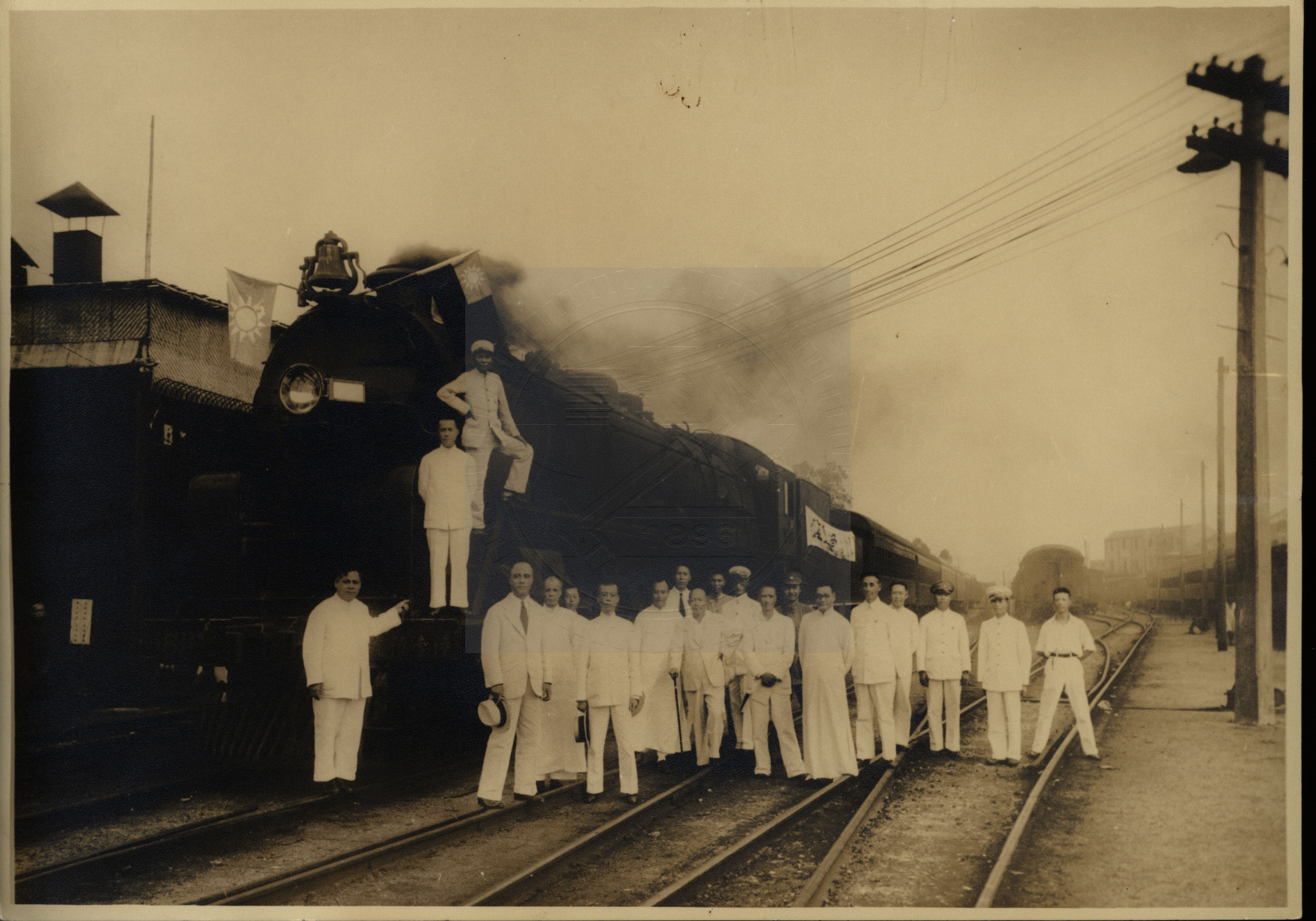 粵漢鐵路首次通車。說明:民國廿五年九月一日開行廣州武昌間對開特別快車。前排左一持帽者為淩鴻勛先生。..