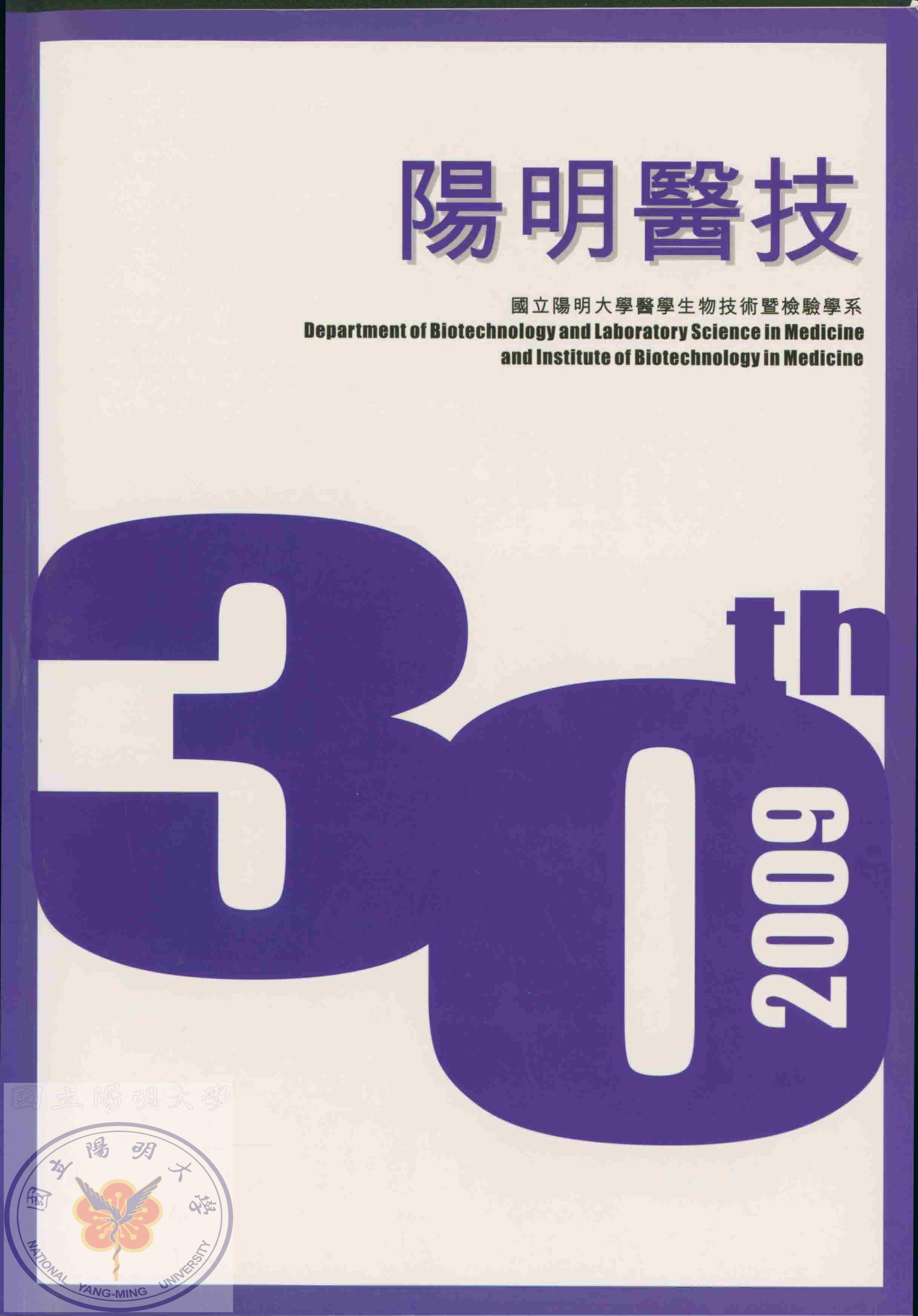 陽明醫技三十週年系慶專刊,內容:『二十一世紀分子醫學的展望』研討會;會議行程;講題摘要;你不能不知..