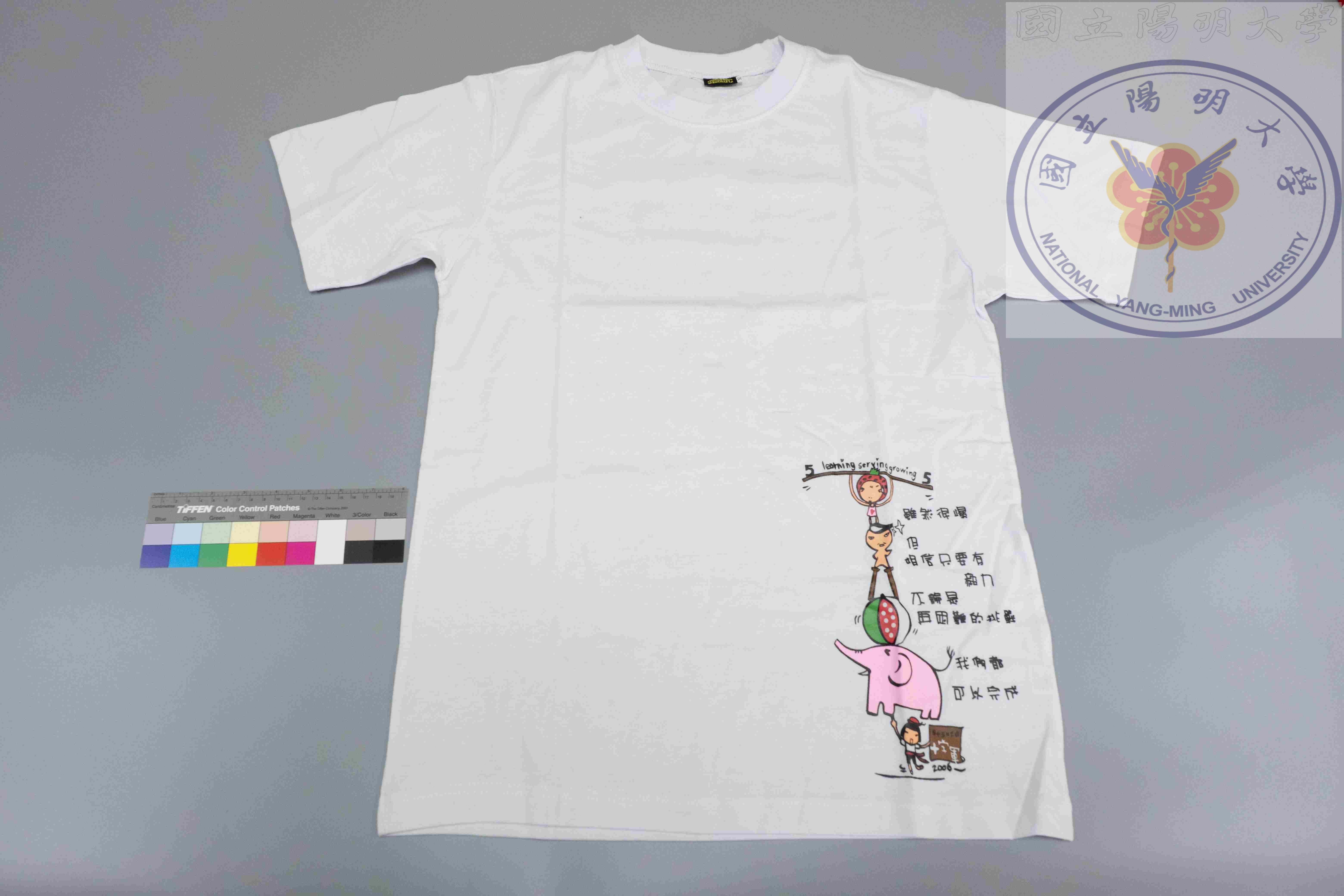 2006年國立陽明大學十字軍社T恤,正面印有「雖然很慢 但相信只要有毅力 不論是再困難的挑戰 我們..