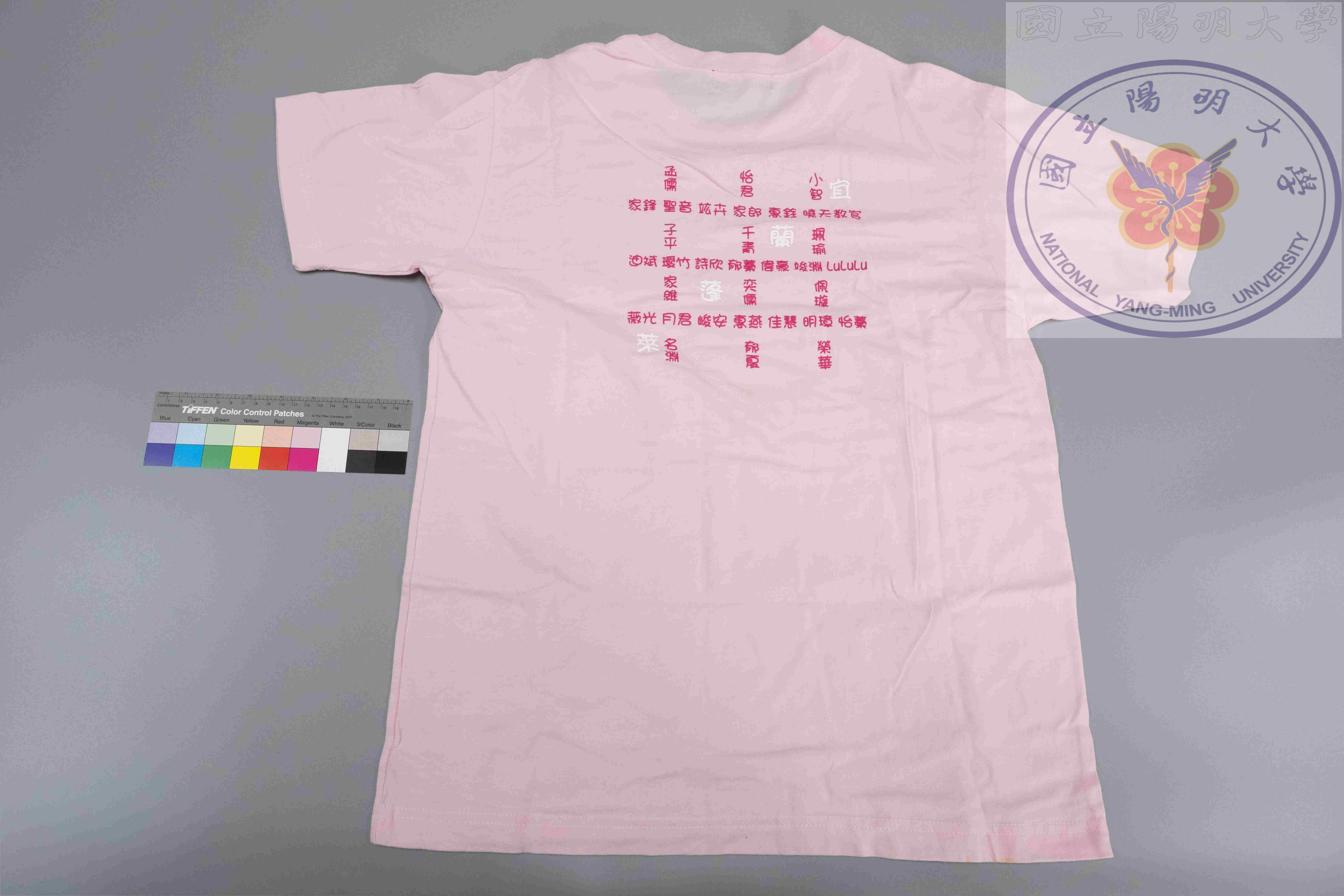 國立陽明大學青幼社於2004年暑假前往宜蘭蓬萊國小服務的短袖隊服,背面印有隊員的名字或暱稱。/左智..