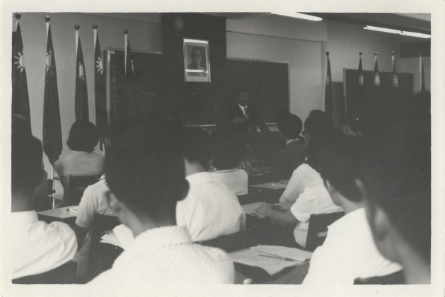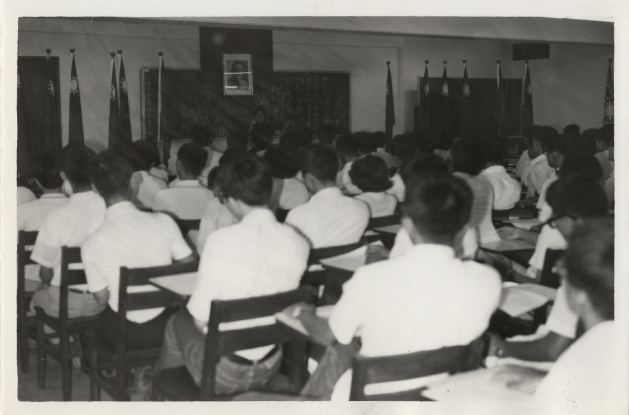 學生在教室裡認真聽台上老師講課。
