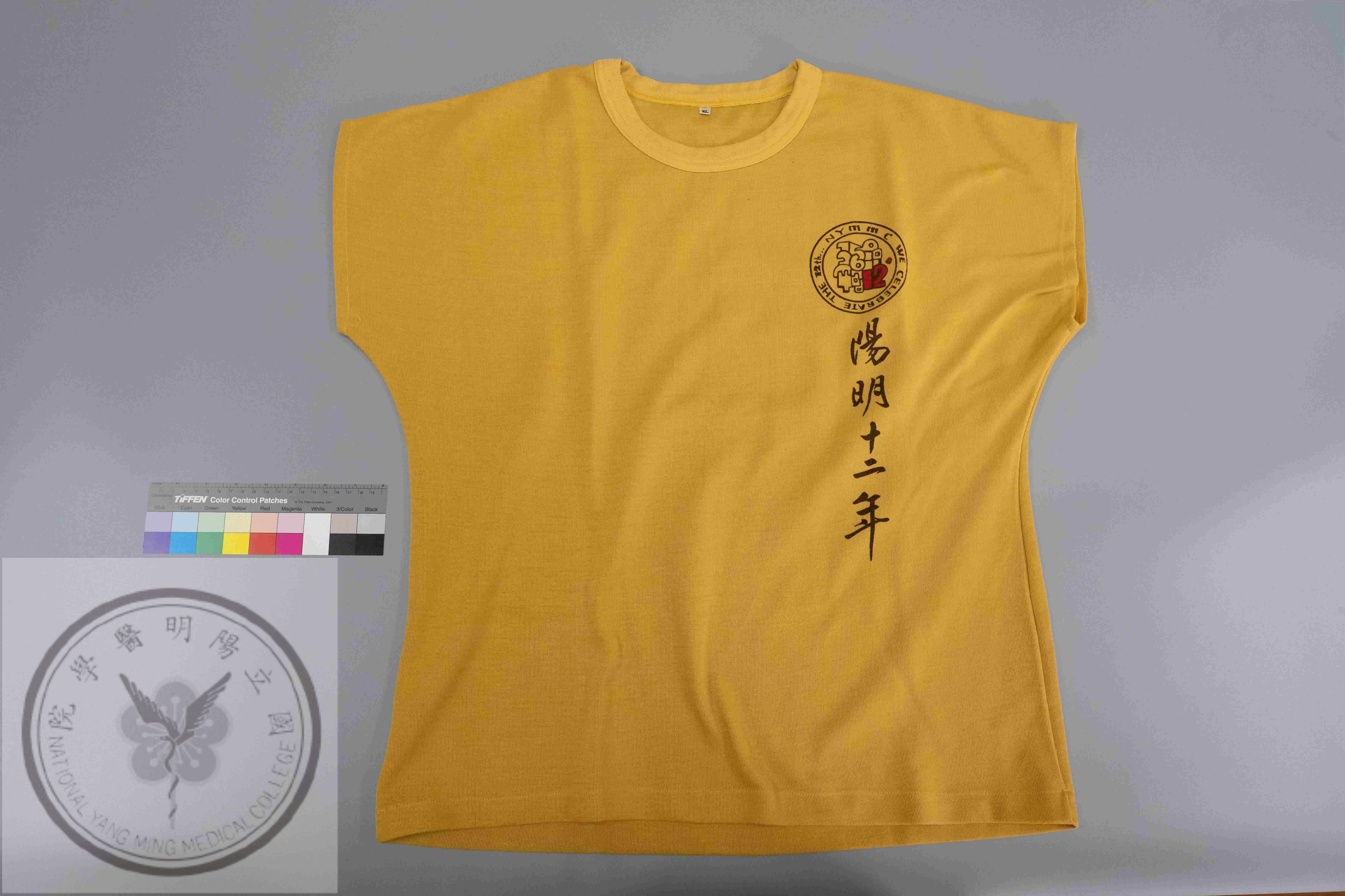 國立陽明醫學院12屆院慶無袖T恤,正面印有「陽明十二年」字樣。/左智慧(學務處)捐贈