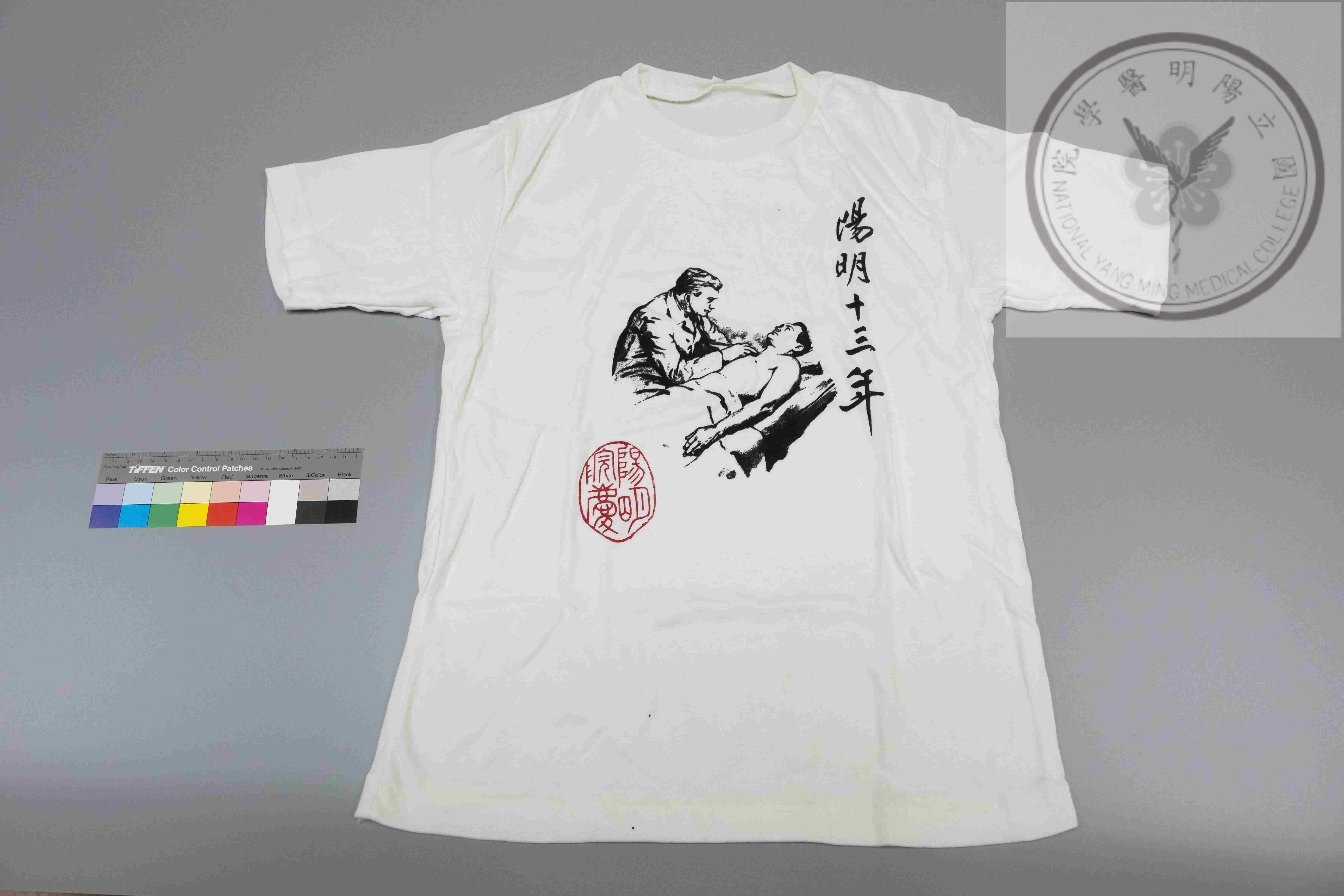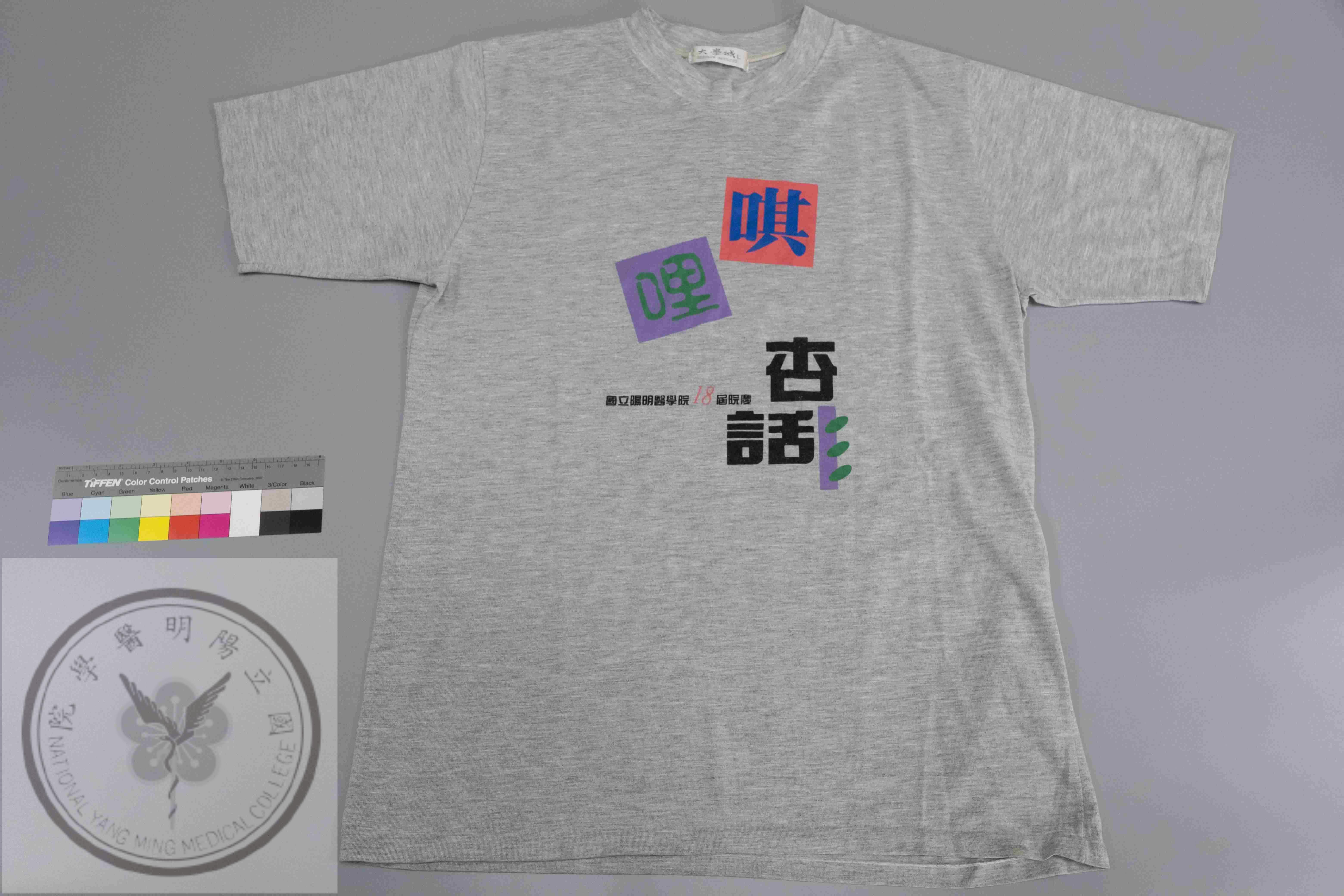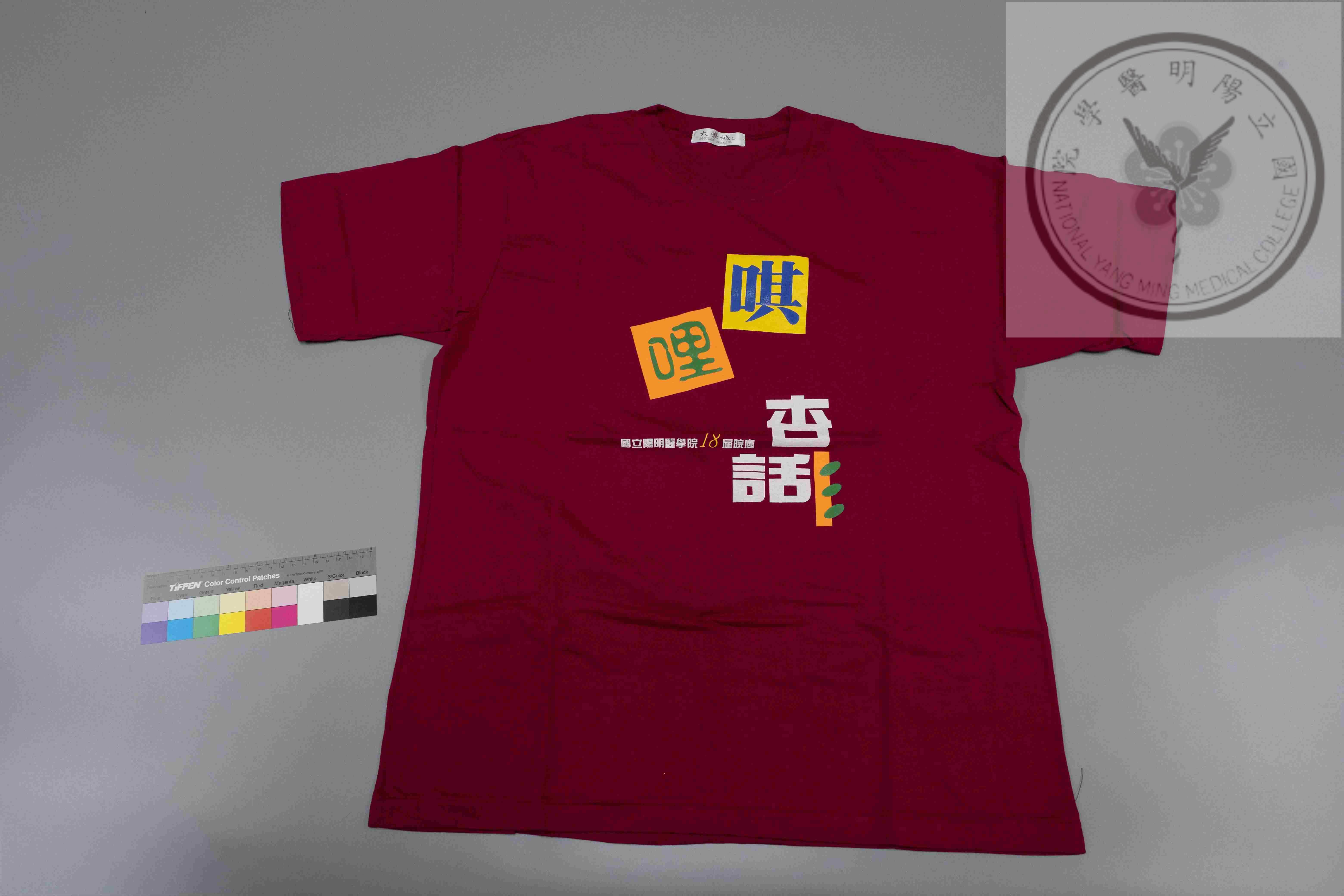 國立陽明醫學院17屆院慶短袖T恤,正面印有「國立陽明醫學院十七屆院慶紀念」字樣,背面印有「唭哩岸 ..