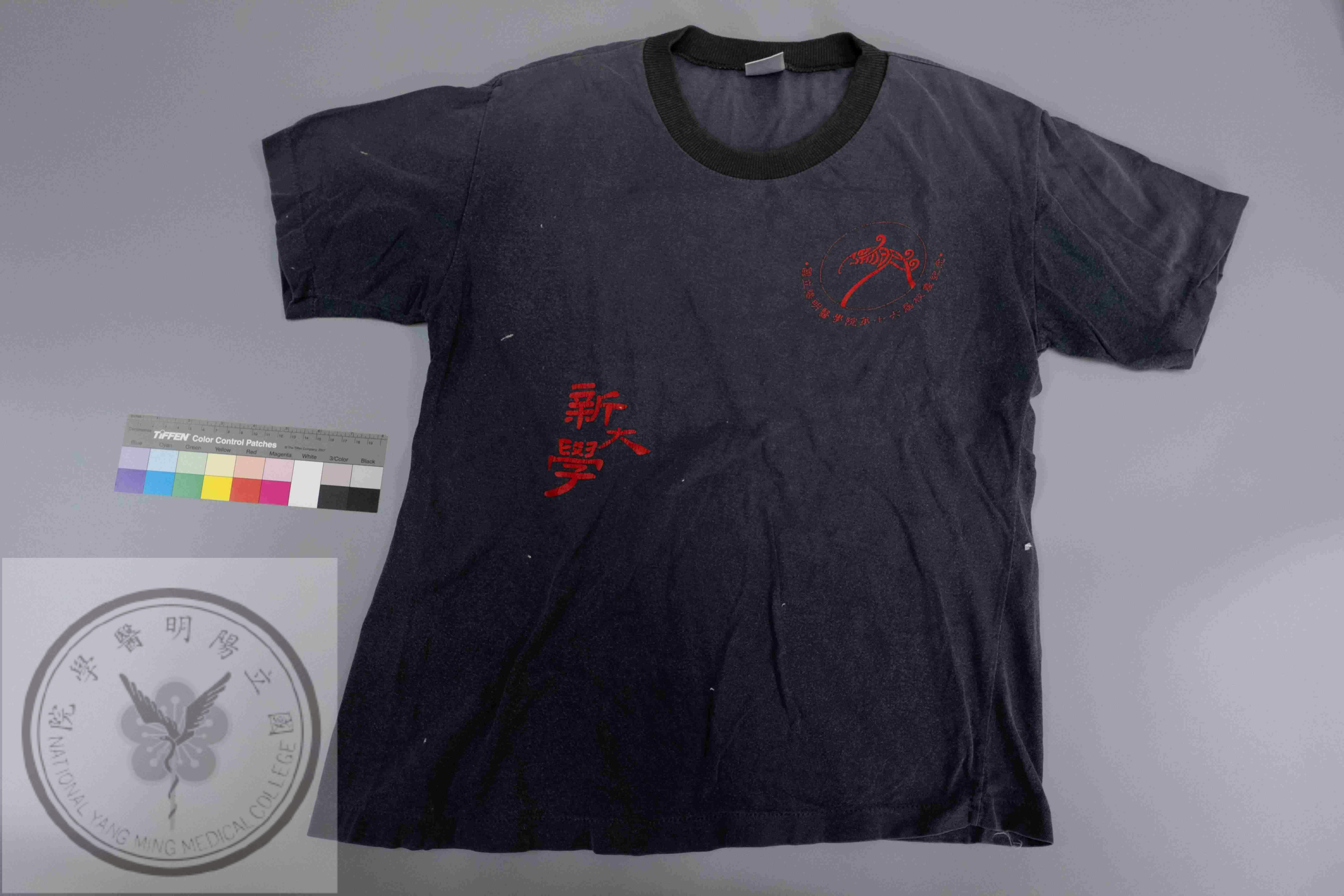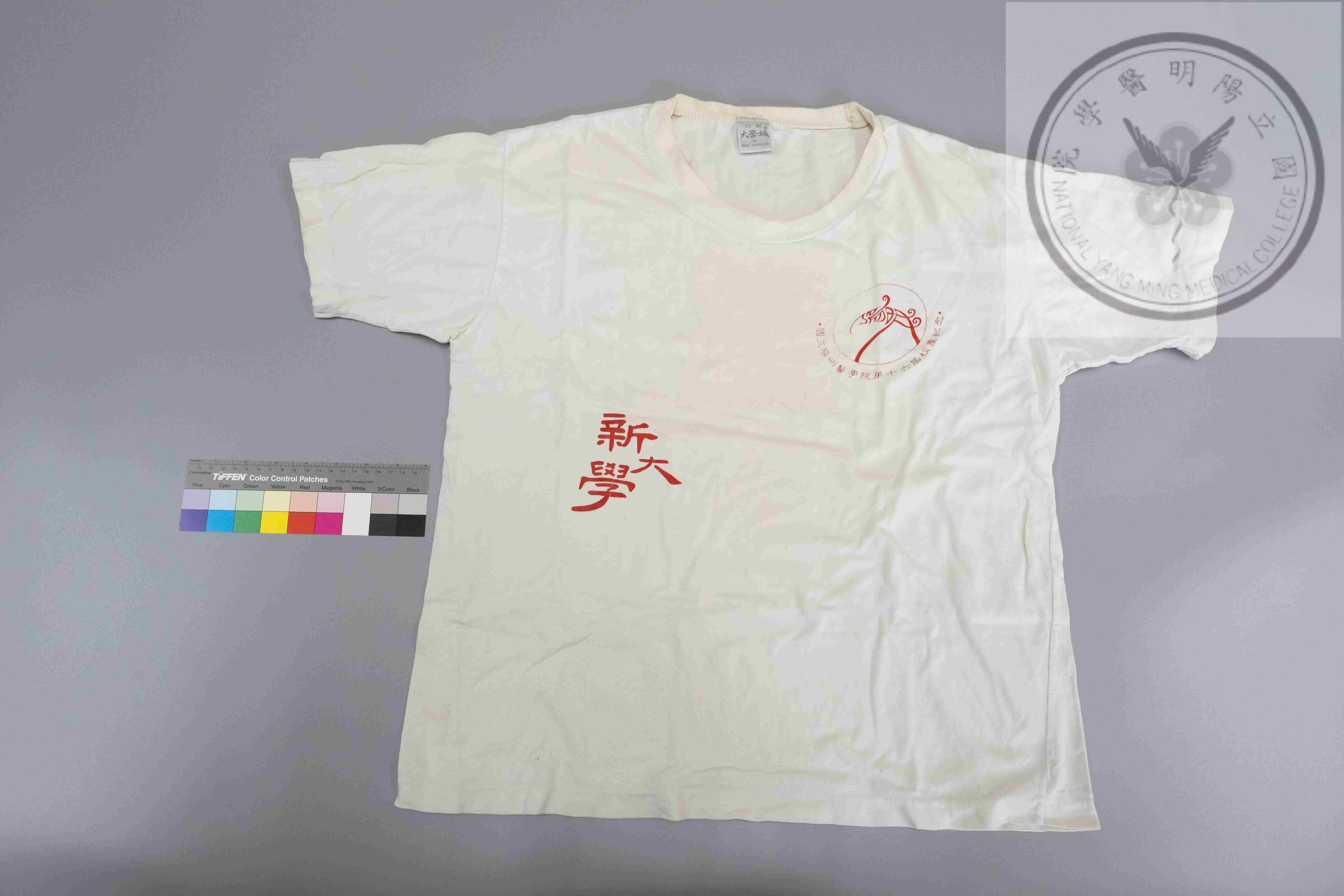 國立陽明醫學院16屆院慶短袖T恤,正面印有「國立陽明醫學院第十六屆院慶紀念」、「新大學」字樣。/左..