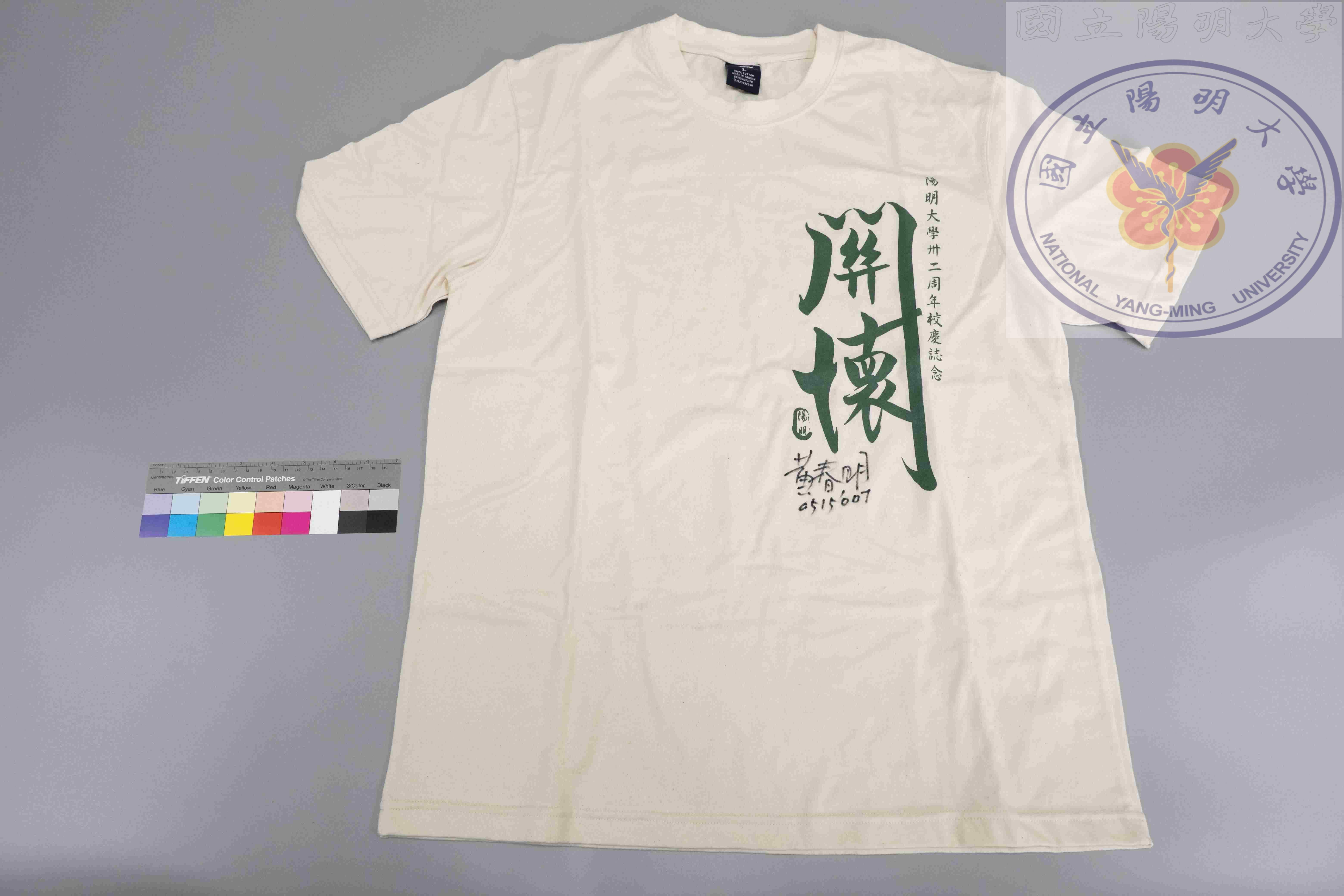 國立陽明大學36週年校慶短袖T恤,背面印有「十年樹木 百年樹人」字樣。/左智慧(學務處)捐贈
