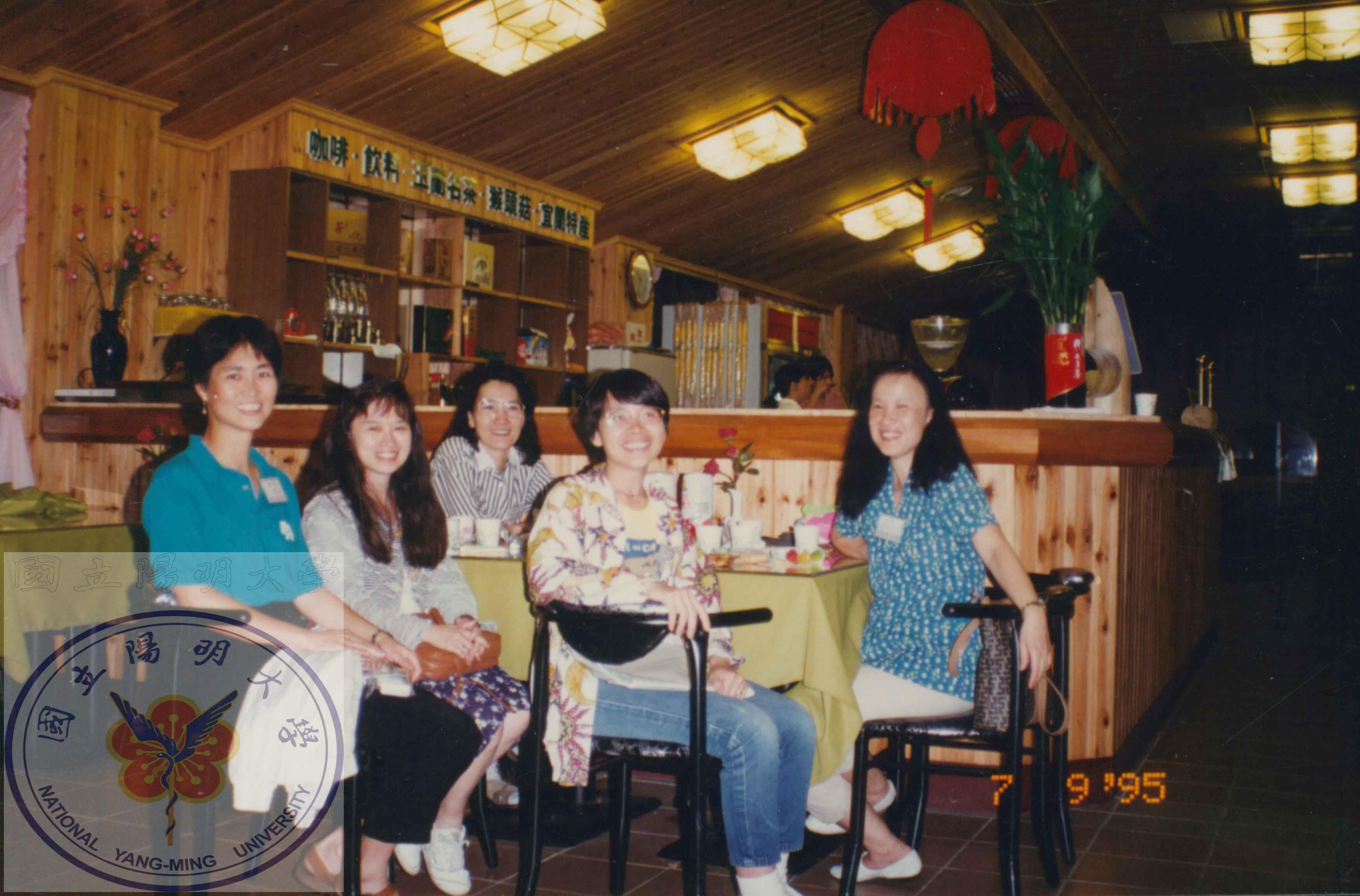 1995年生物夏令營交流,左起:鍾邦柱、丁令白、張玉生、廖淑惠、朱茜(沈哲鯤太太)。/陳文盛捐贈