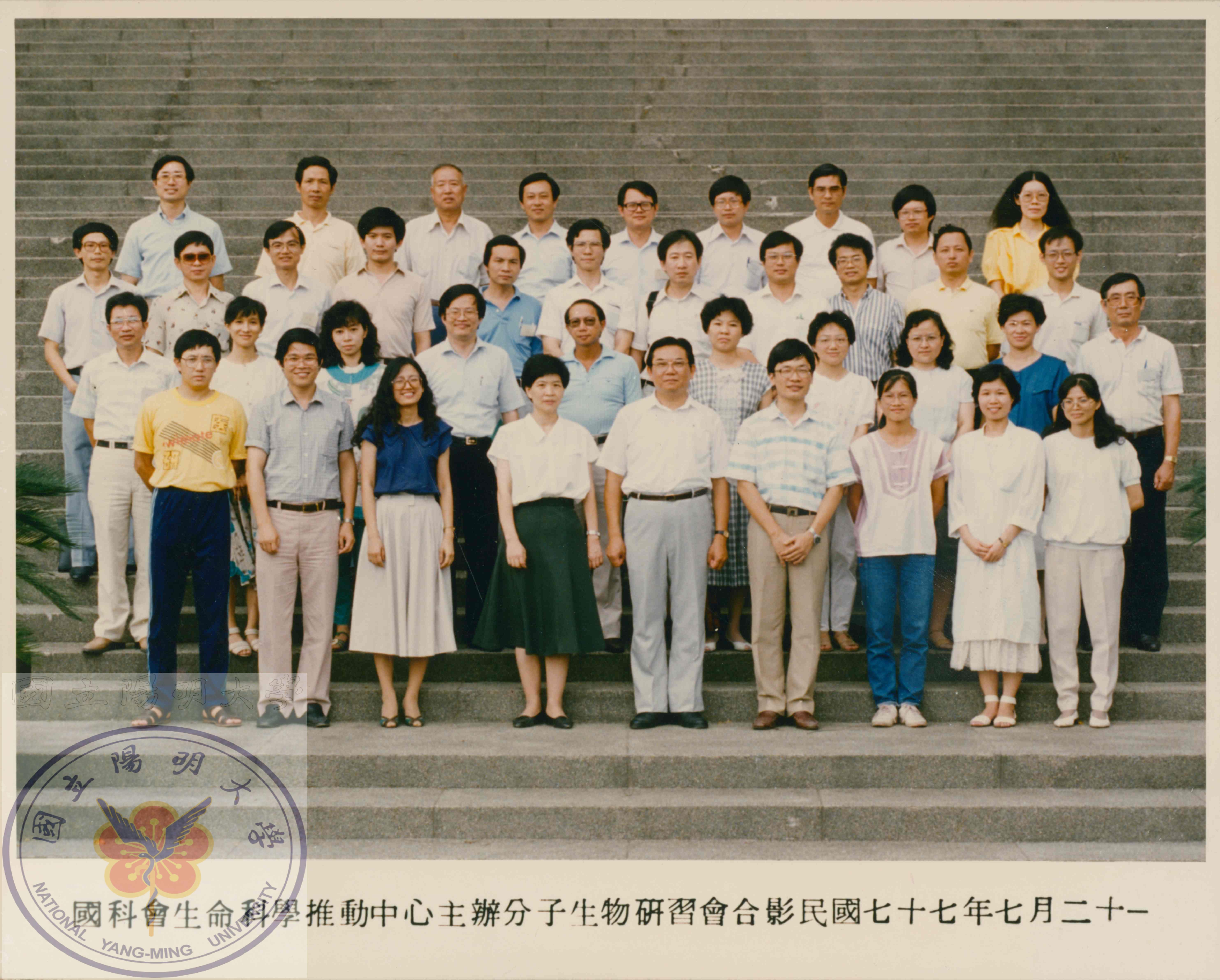 1988年7月21日國科會生命科學推動中心主辦分子生物研習會合影。/羅時成捐贈