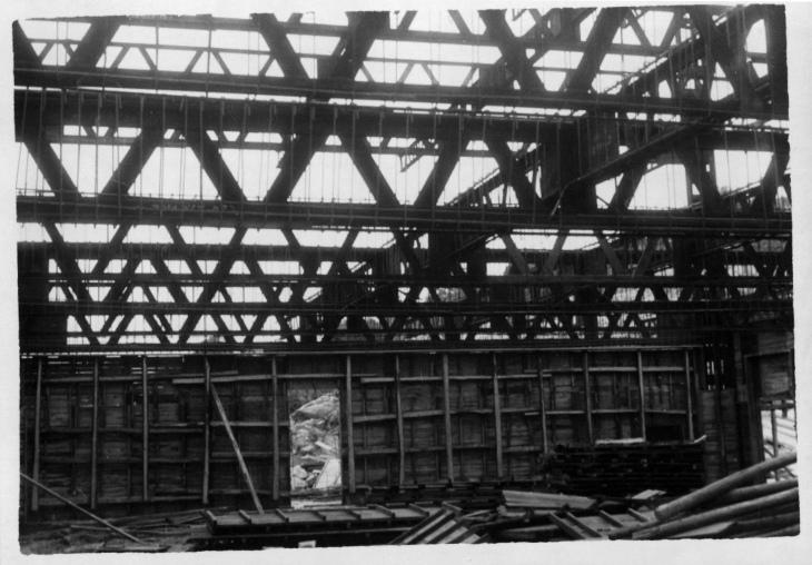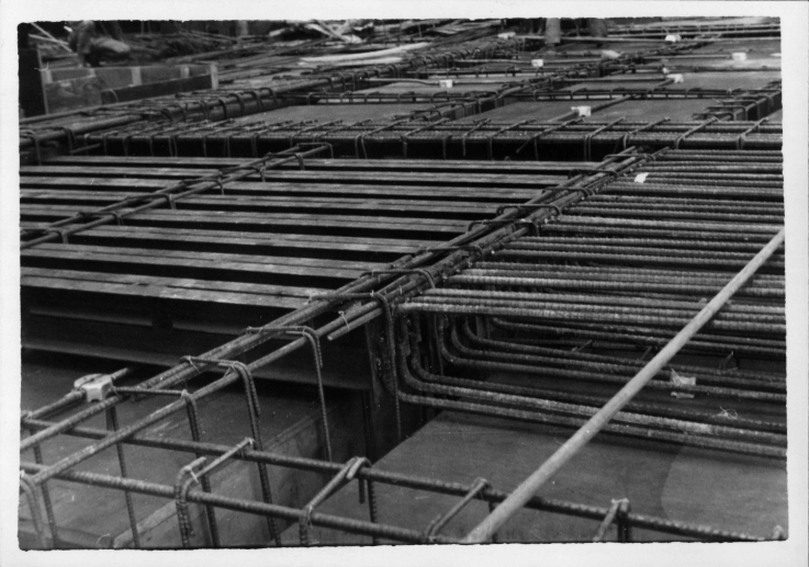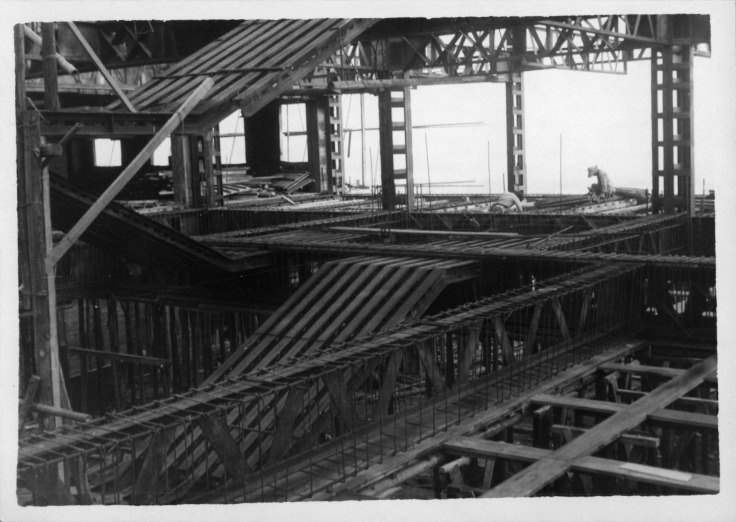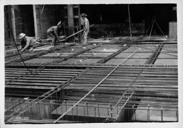 實驗大樓的主結構即將完成,施工時的鋼筋水泥清晰可見。