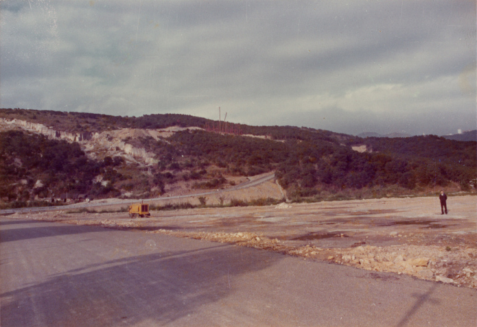 實驗大樓建築完成,只剩地上未清除的工程材料。