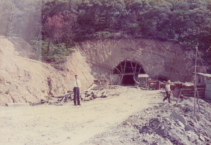 榮陽隧道建造情形,左方為委員,右方為施工工人。