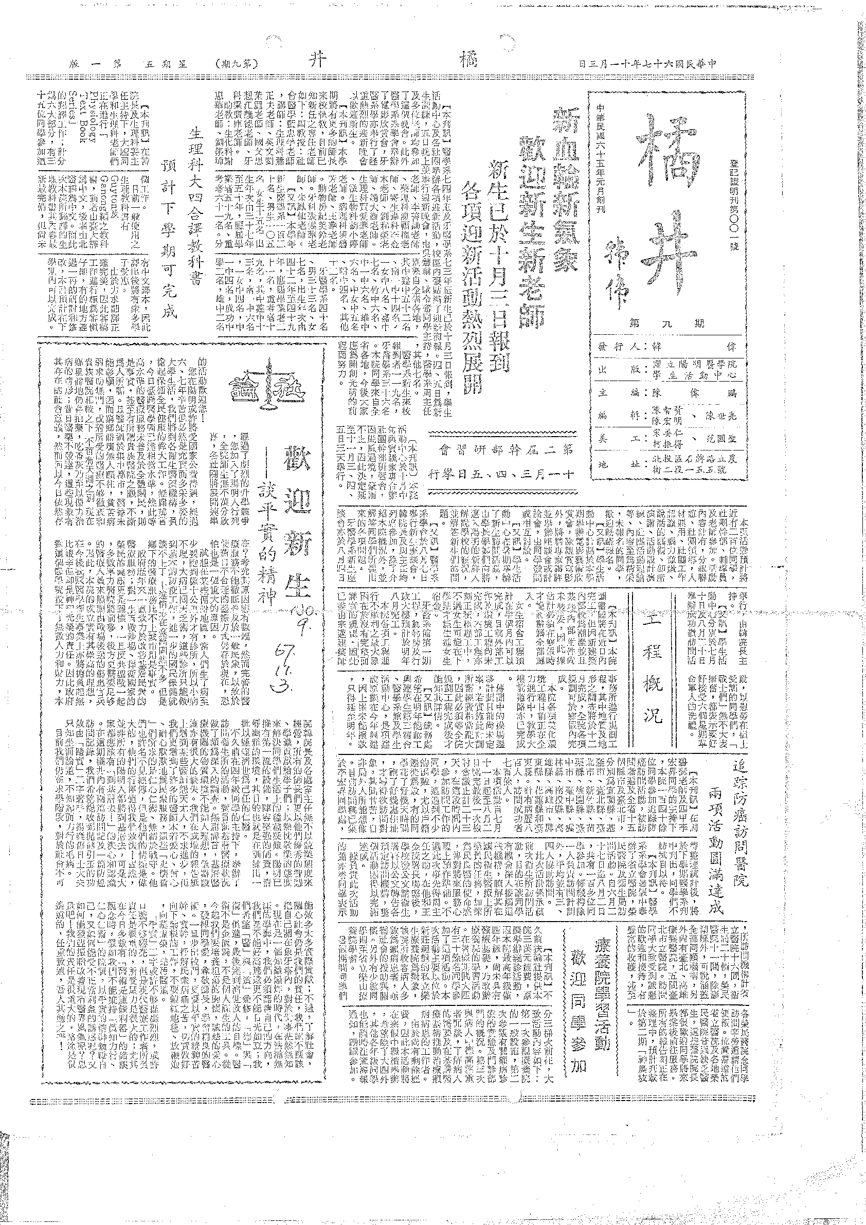 橘井 第2期。內含:榮譽制度推行委員會成立、學生伙食大為改善、建立陽明的傳統等。