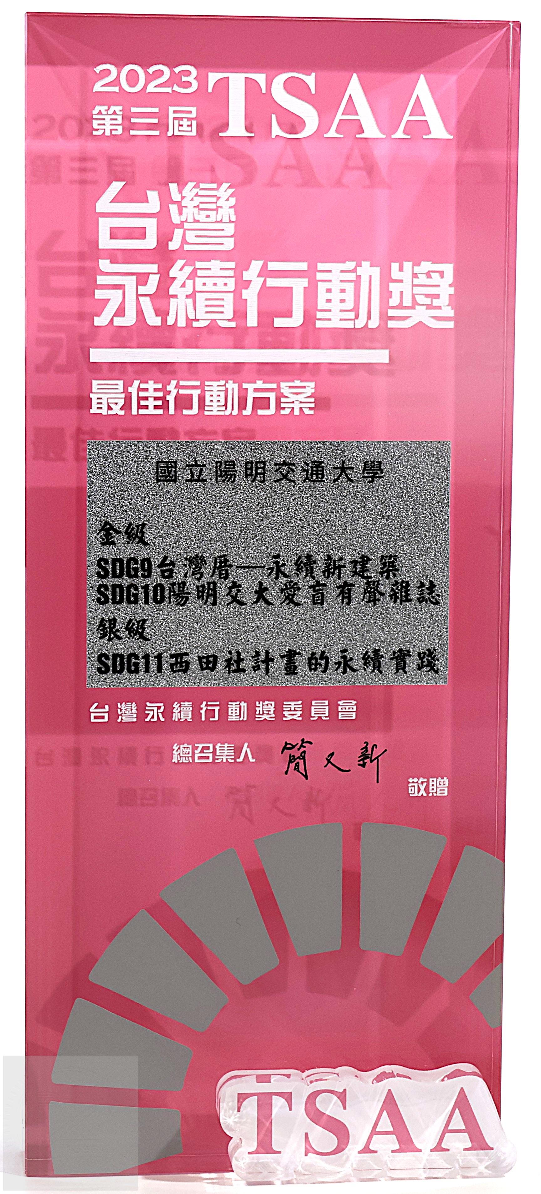 2023第三屆TSAA台灣永續行動獎的最佳行動方案,國立陽明交通大學榮獲3個獎項,包括金級 SDG..