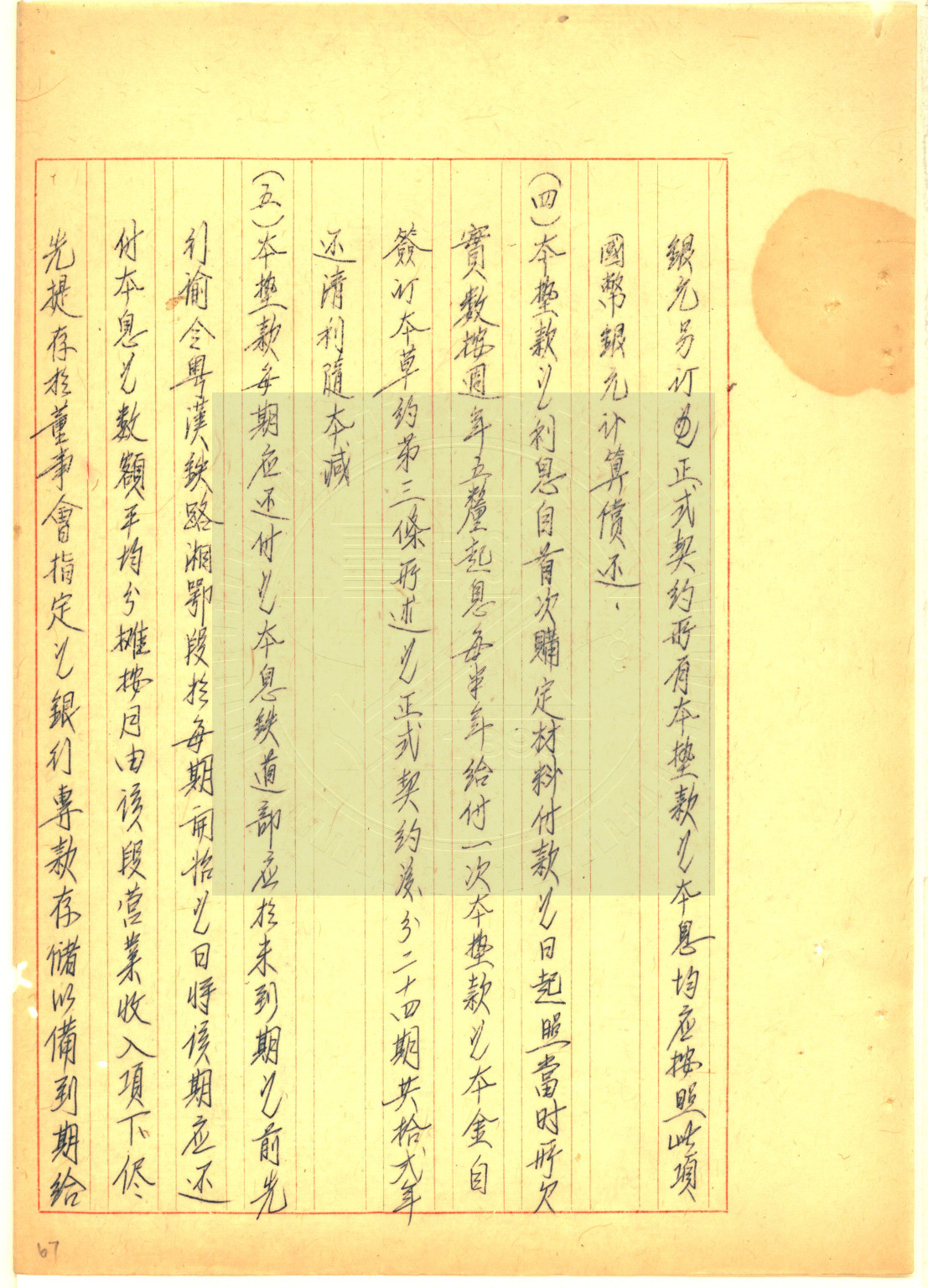 鐵道部直轄粵漢鐵路湘鄂段第三次購料墊款草約草案