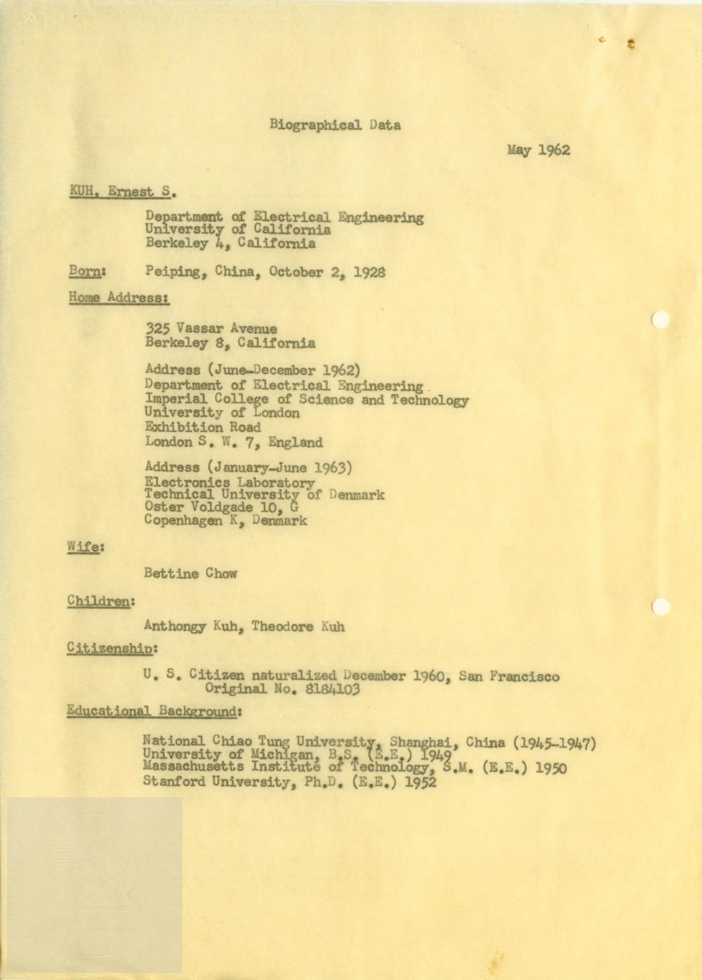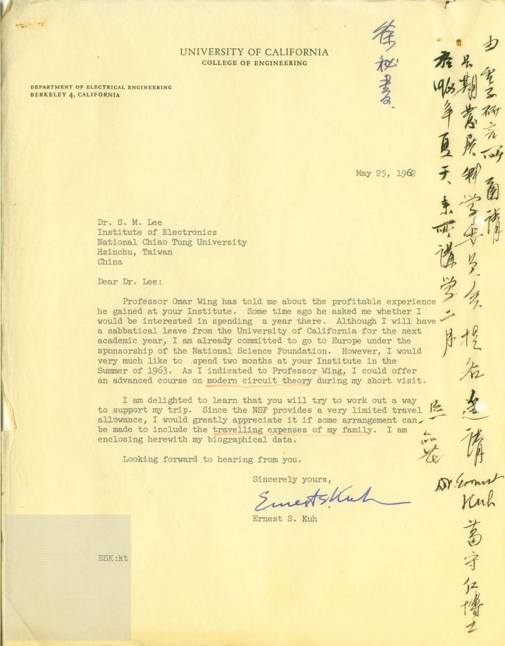 典藏地:交大校區 說明:國立交通大學電子研究所(代電)國家長期發展科學委員會–為邀請美國加里福尼亞大學葛守仁教授於明年暑期來所講學。(51)交大電秘字第288號。 資料類型:公文 典藏號:301-0001-0002-016 品名:國立交通大學電子研究所(代電)國家長期發展科學委員會 作者:國立交通大學電子研究所 年代:1962 出版者:- 數量:1件 稽核資料:8頁 版本: 手稿、油印稿 作品語文: 中文 關鍵詞:交通大學、復校時期、電子研究所、國家長期發展科學委員會、葛守仁 權利聲明:國立陽明交通大學圖書館珍藏資料,如需引用,請註明來源。 取用權:開放