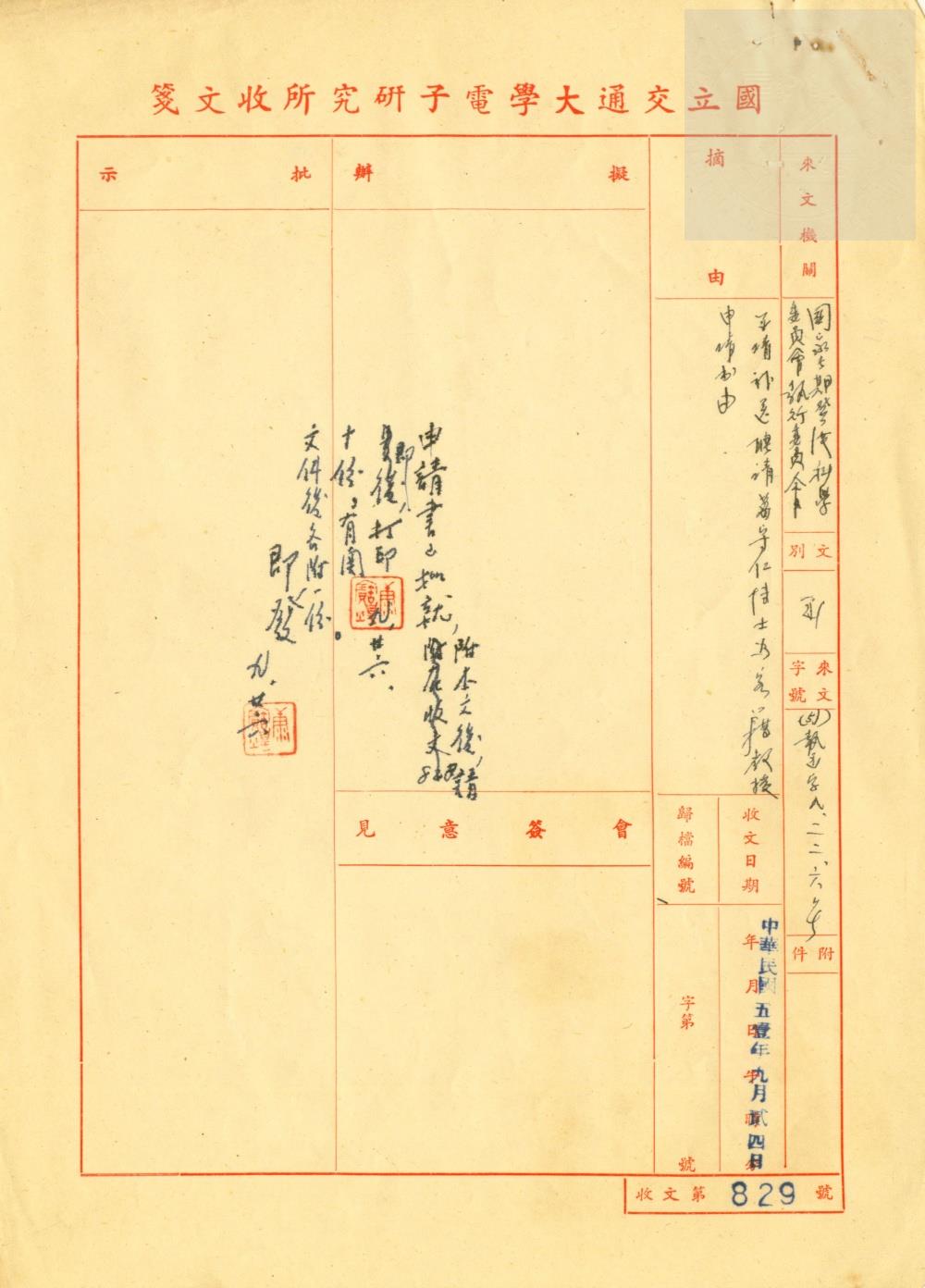 典藏地:交大校區 說明:國立交通大學電子研究所(函)國家長期發展科學委員會–為檢奉聘請葛守仁博士爲科學顧問申請書。(51)交大電秘字第451號。 資料類型:公文 典藏號:301-0001-0002-020 品名:國立交通大學電子研究所(函)國家長期發展科學委員會 作者:國立交通大學電子研究所 年代:1962 出版者:- 數量:1件 稽核資料:2頁 版本: 手稿 作品語文: 中文 關鍵詞:交通大學、復校時期、電子研究所、國家長期發展科學委員會、葛守仁 權利聲明:國立陽明交通大學圖書館珍藏資料,如需引用,請註明來源。 取用權:開放