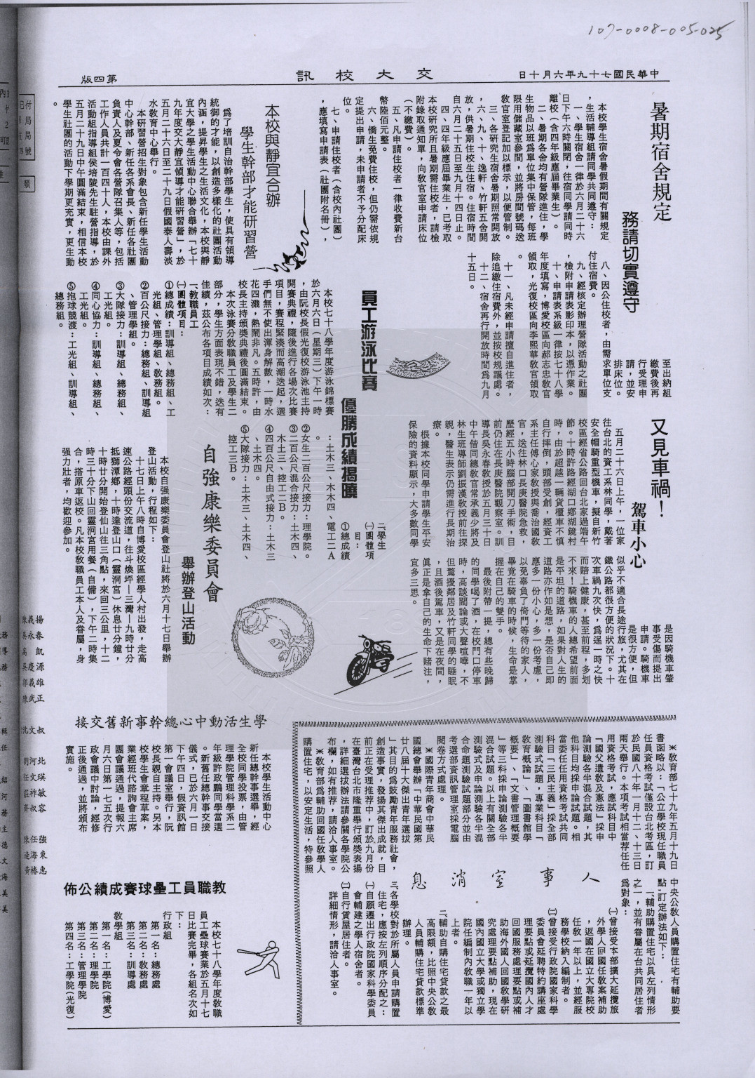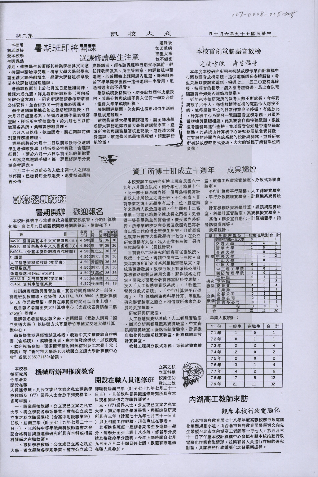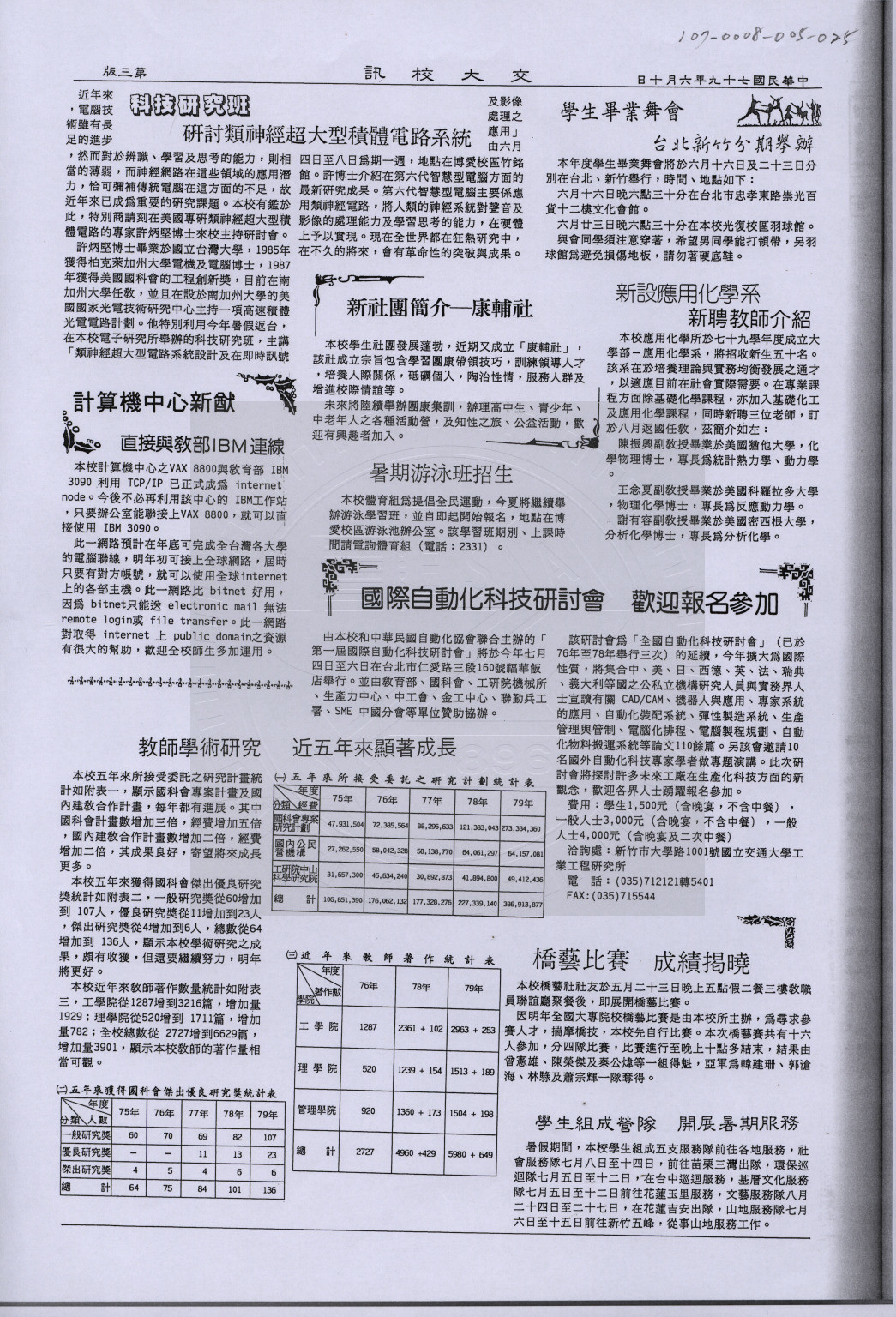 典藏地:交大校區 說明:交大校訊 第二十五期,内容含:畢業典禮六月二十三日舉行;阮大年校長率團出席美洲同學會;資工所博士班成立十週年 成果輝煌;新社團簡介-康輔社等。 資料類型:書刊 典藏號:107-0008-005-025 品名:交大校訊 第二十五期 作者:國立交通大學秘書室編輯 年代:1990 出版者:國立交通大學 數量:1件 稽核資料:四版(4頁) 版本: 影印稿 作品語文: 中文 關鍵詞:交大、校訊 權利聲明:國立陽明交通大學圖書館珍藏資料,如需引用,請註明來源。 取用權:開放