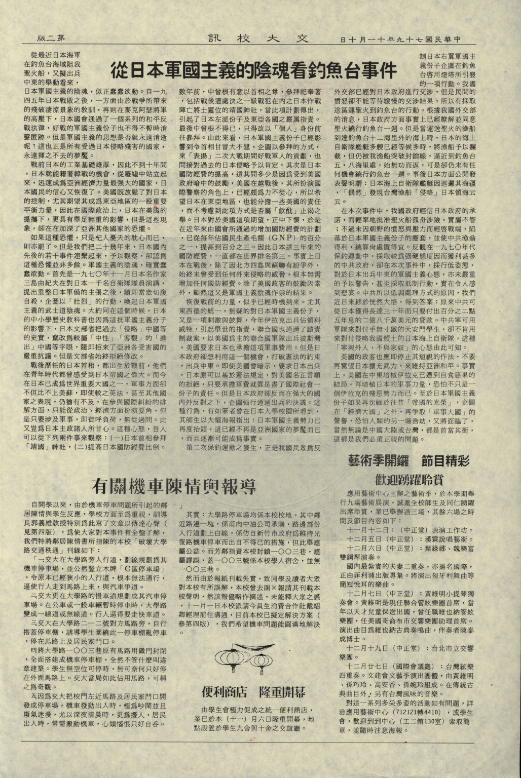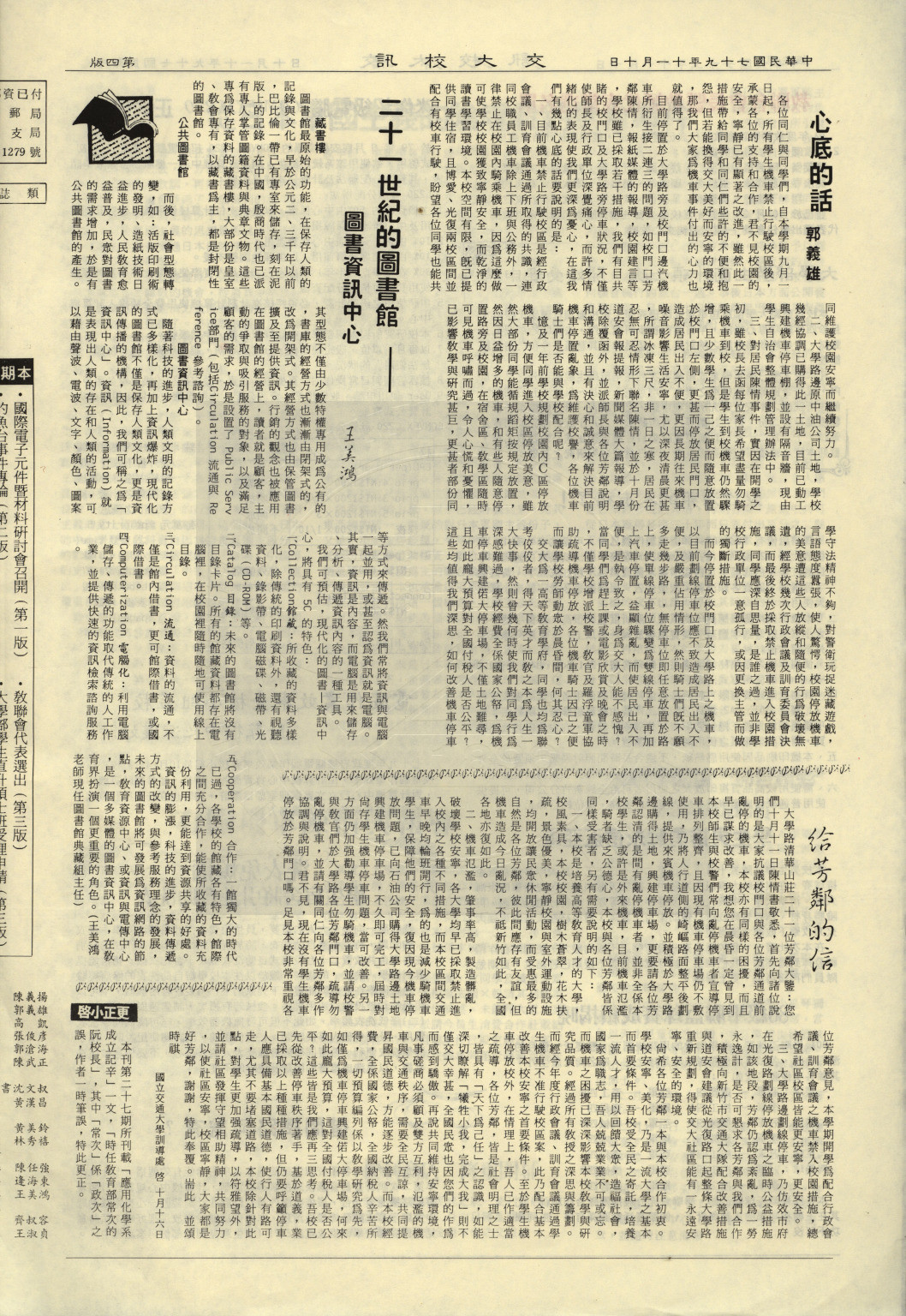 典藏地:交大校區 說明:交大校訊 第二十八期,内容含:本校主辦一九九O年國際電子元件暨材料研討會;從日本軍國主義的陰魂看釣魚台事件;迷你超級電腦 CONVEX C220正式啟用等。 資料類型:書刊 典藏號:107-0008-005-028 品名:交大校訊 第二十八期 作者:國立交通大學秘書室編輯 年代:1990 出版者:國立交通大學 數量:1件 稽核資料:四版(4頁) 版本: 印刷品 作品語文: 中文 關鍵詞:交大、校訊 權利聲明:國立陽明交通大學圖書館珍藏資料,如需引用,請註明來源。 取用權:開放