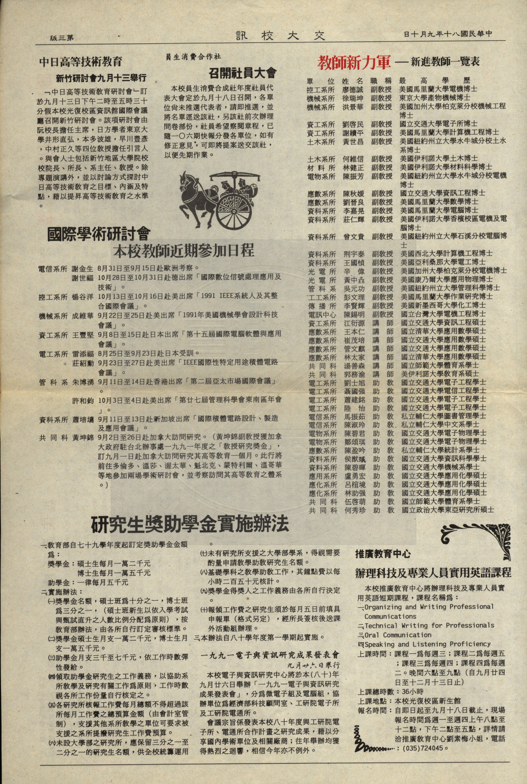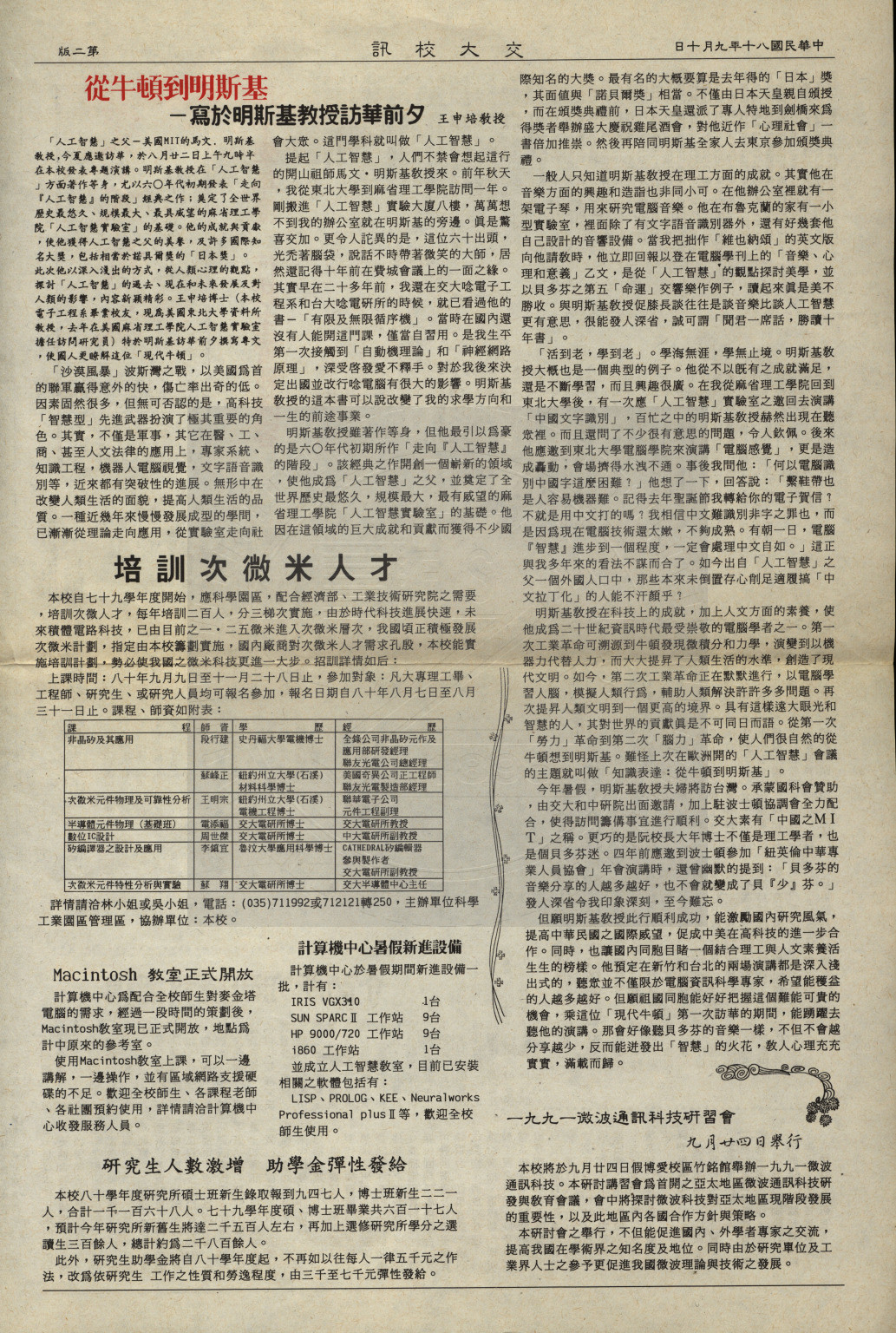 典藏地:交大校區 說明:交大校訊 第三十五期,内容含:八十學年度行政主管新陣容;傳播科技研究所簡介;從牛頓到明斯基(王申培)等。 資料類型:書刊 典藏號:107-0008-005-035 品名:交大校訊 第三十五期 作者:國立交通大學秘書室編輯 年代:1991 出版者:國立交通大學 數量:1件 稽核資料:四版(4頁) 版本: 印刷品 作品語文: 中文 關鍵詞:交大、校訊 權利聲明:國立陽明交通大學圖書館珍藏資料,如需引用,請註明來源。 取用權:開放