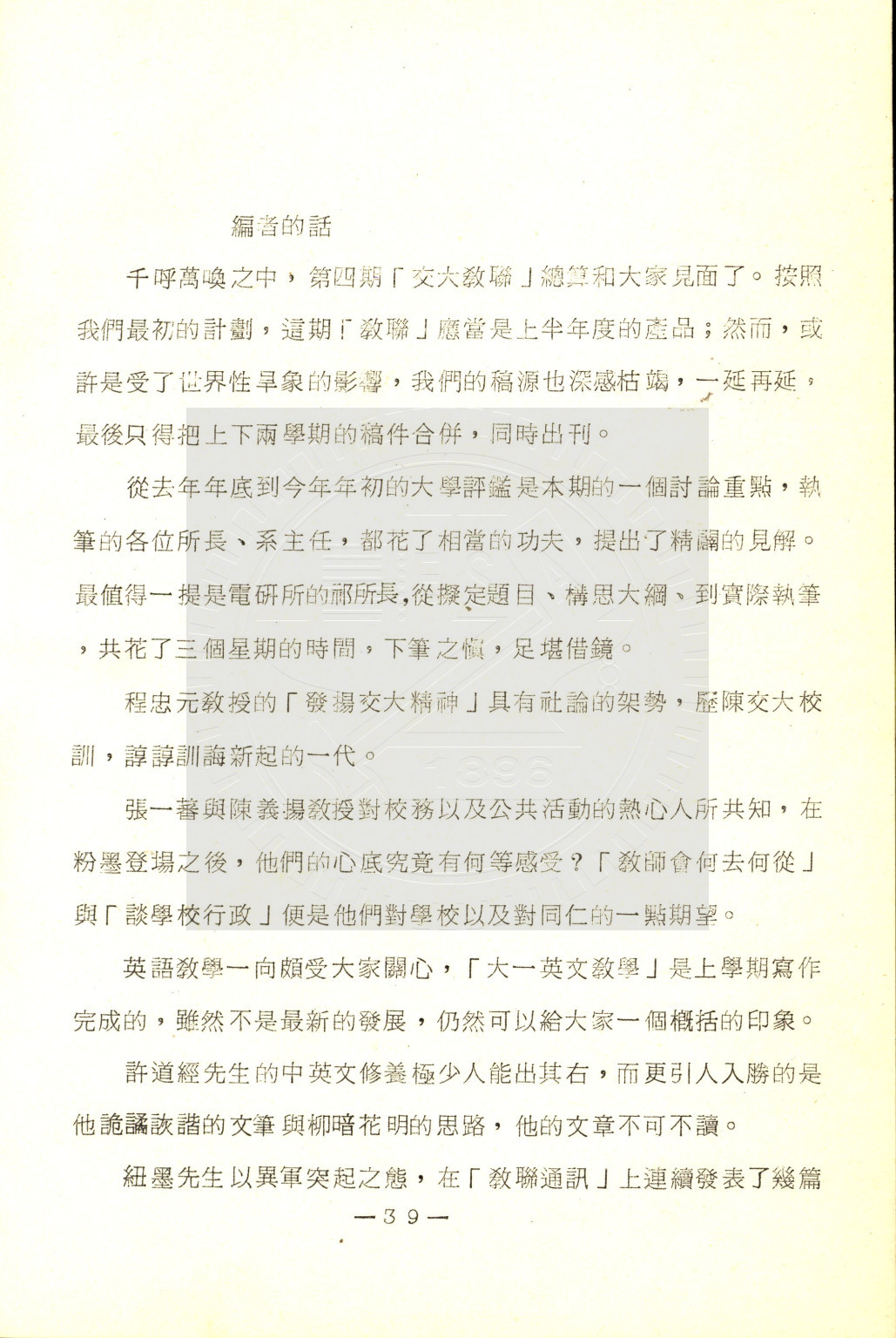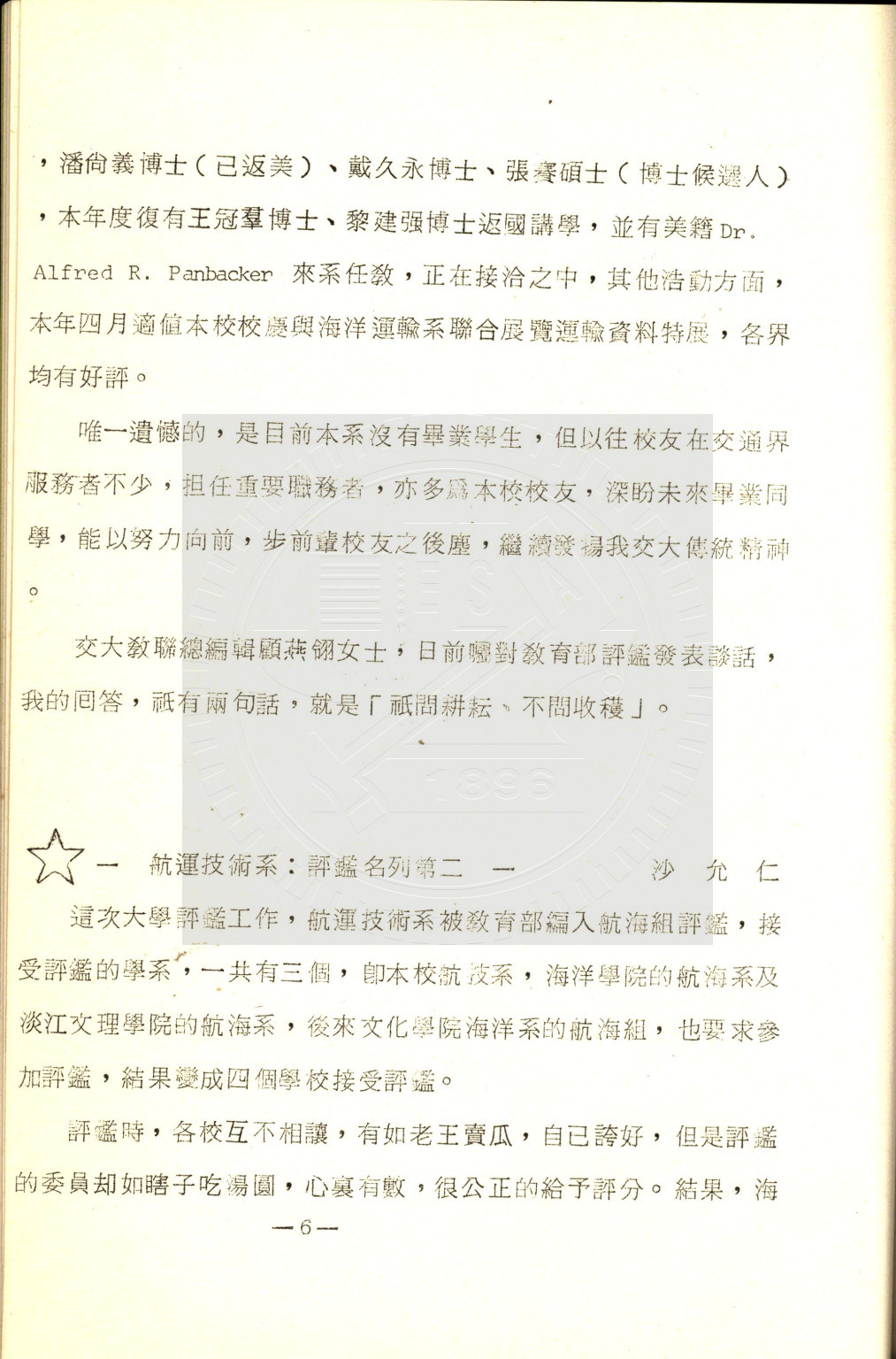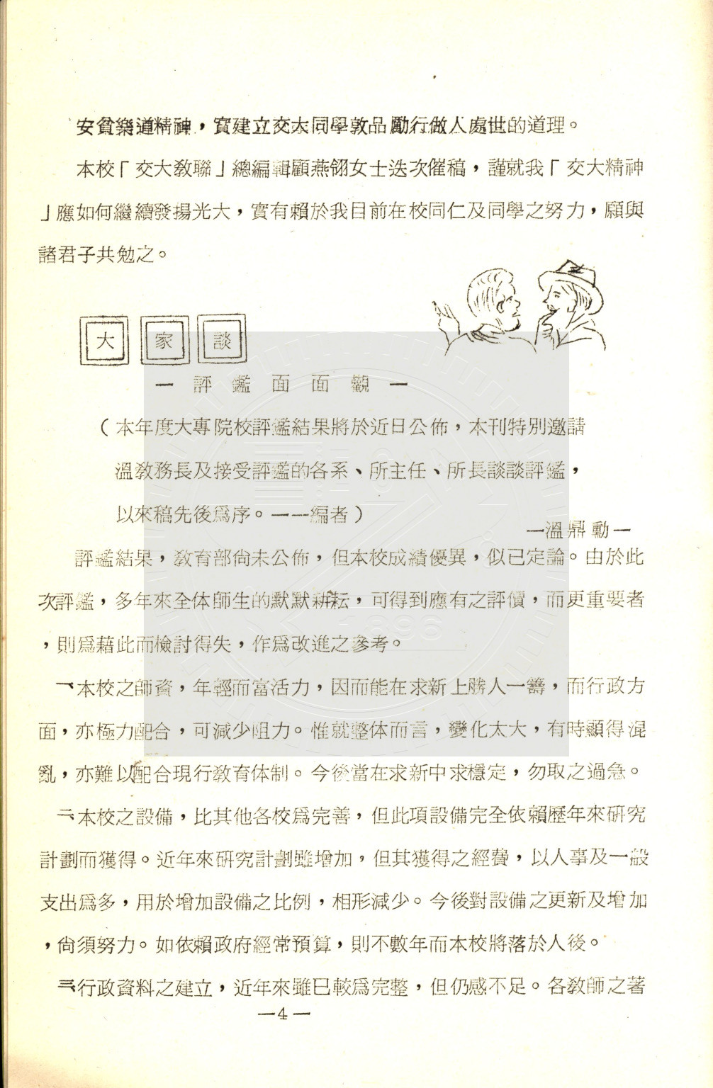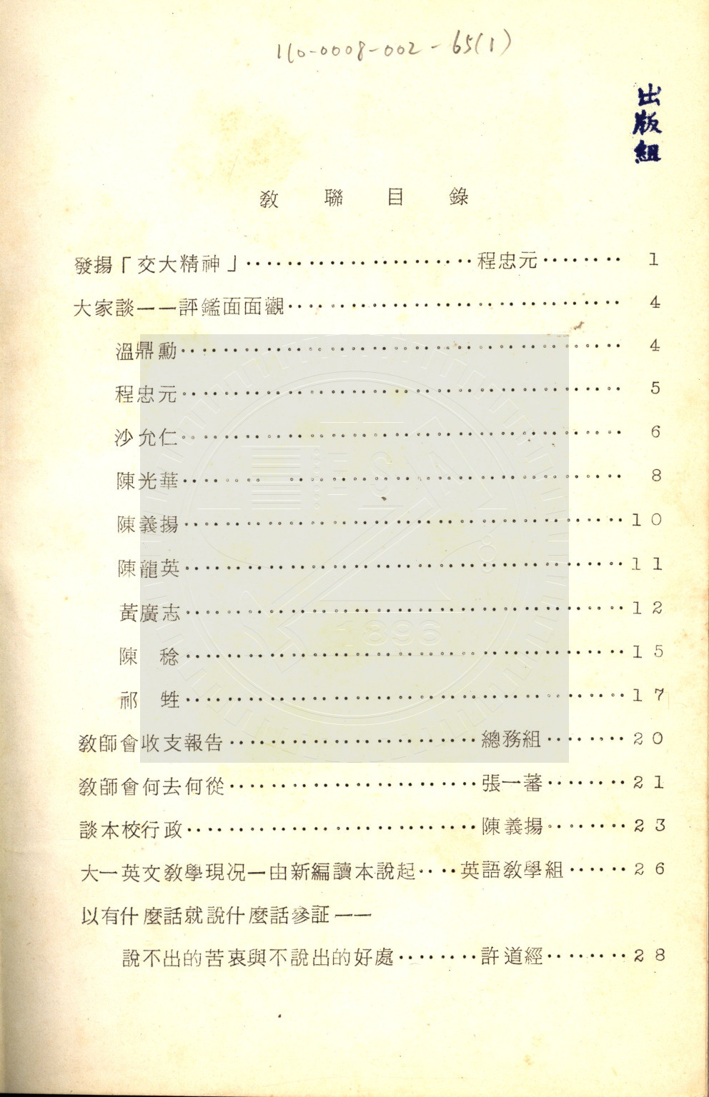 典藏地:交大校區 說明:交大教聯 資料類型:書刊 典藏號:110-0008-002-65(1) 品名:交大教聯 作者:- 年代:1976 出版者:交大教師會發行 數量:1冊 稽核資料:40頁 版本: 印刷品 作品語文: 中文 關鍵詞:交大、教聯 權利聲明:國立陽明交通大學圖書館珍藏資料,如需引用,請註明來源。 取用權:開放