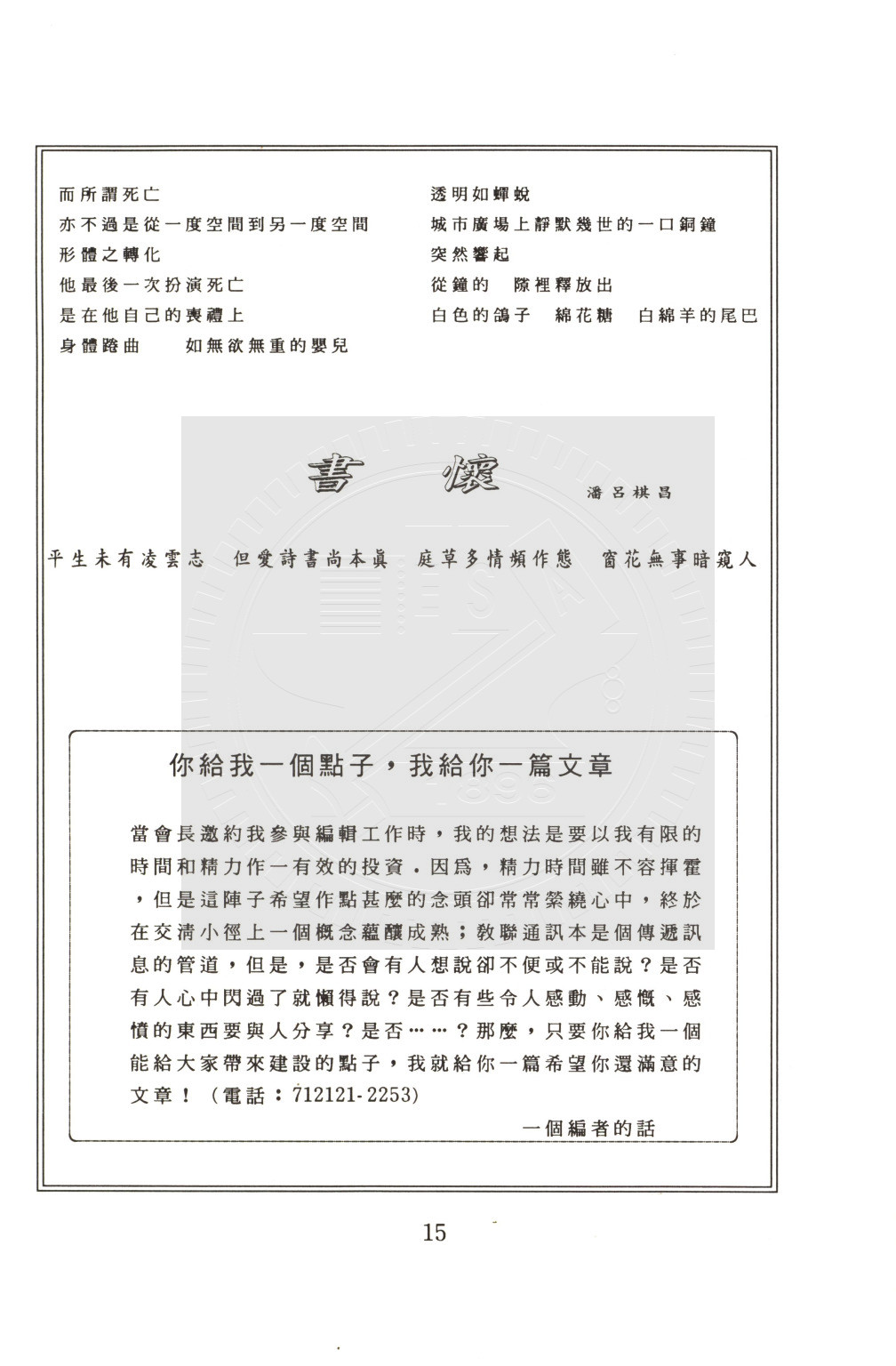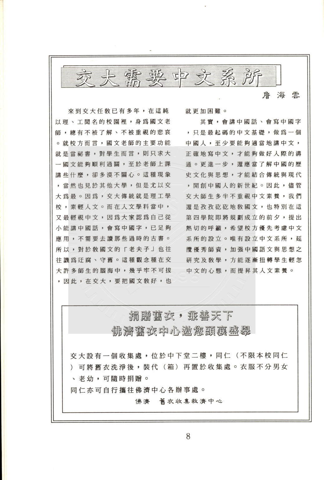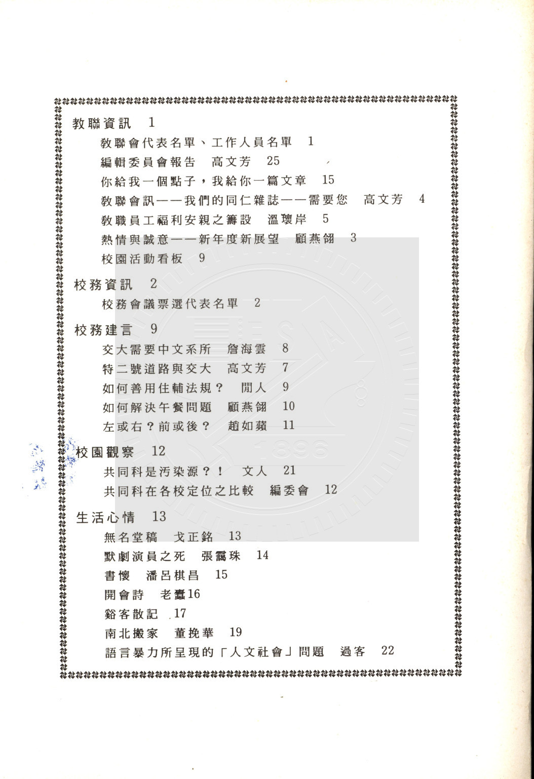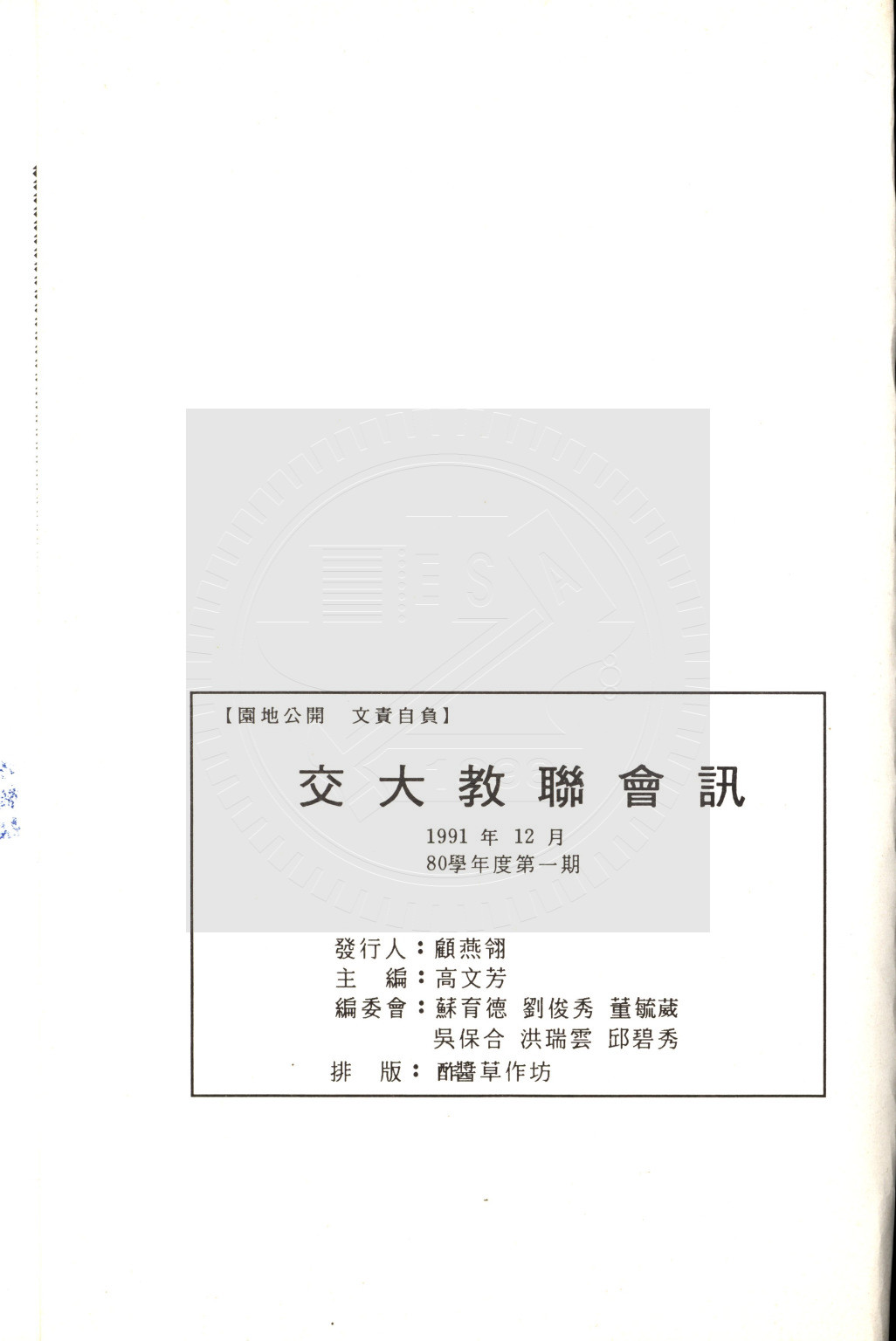 典藏地:交大校區 說明:交大教聯會訊 80.12 (八十學年度第一期) 資料類型:書刊 典藏號:110-0008-002-80(1) 品名:交大教聯會訊 80.12 (八十學年度第一期) 作者:- 年代:1991 出版者:國立交通大學教師聯誼會發行 數量:1冊 稽核資料:25頁 版本: 印刷品 作品語文: 中文 關鍵詞:交大、教聯會訊 權利聲明:國立陽明交通大學圖書館珍藏資料,如需引用,請註明來源。 取用權:開放