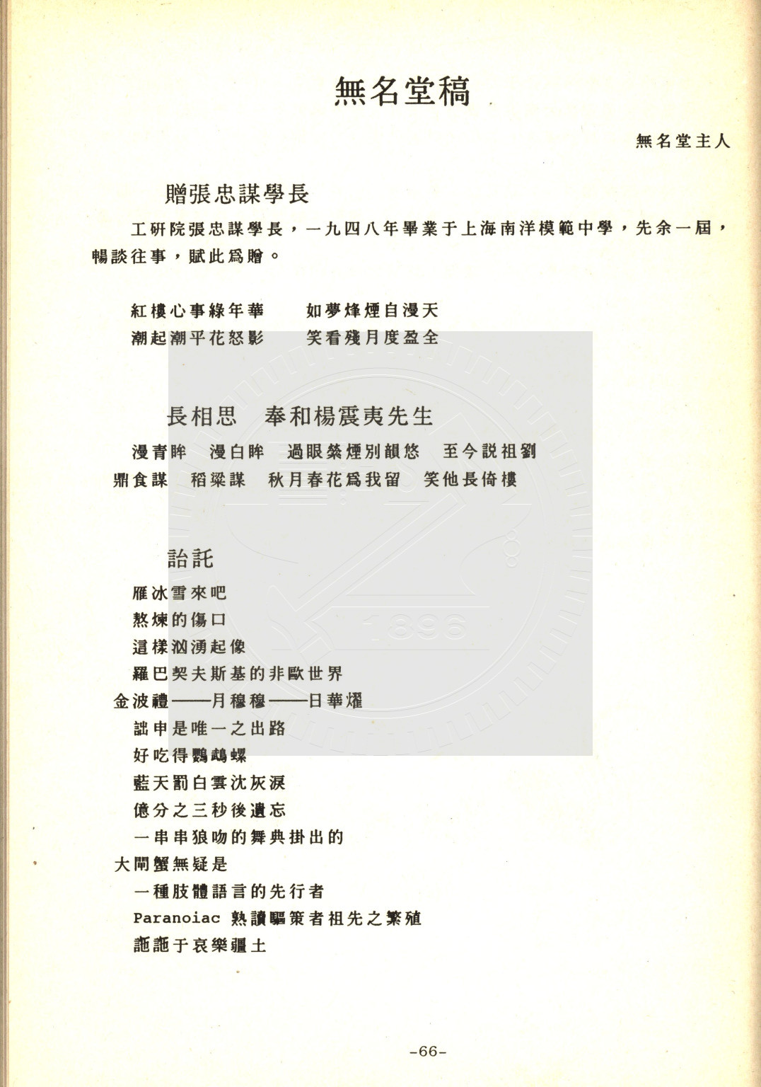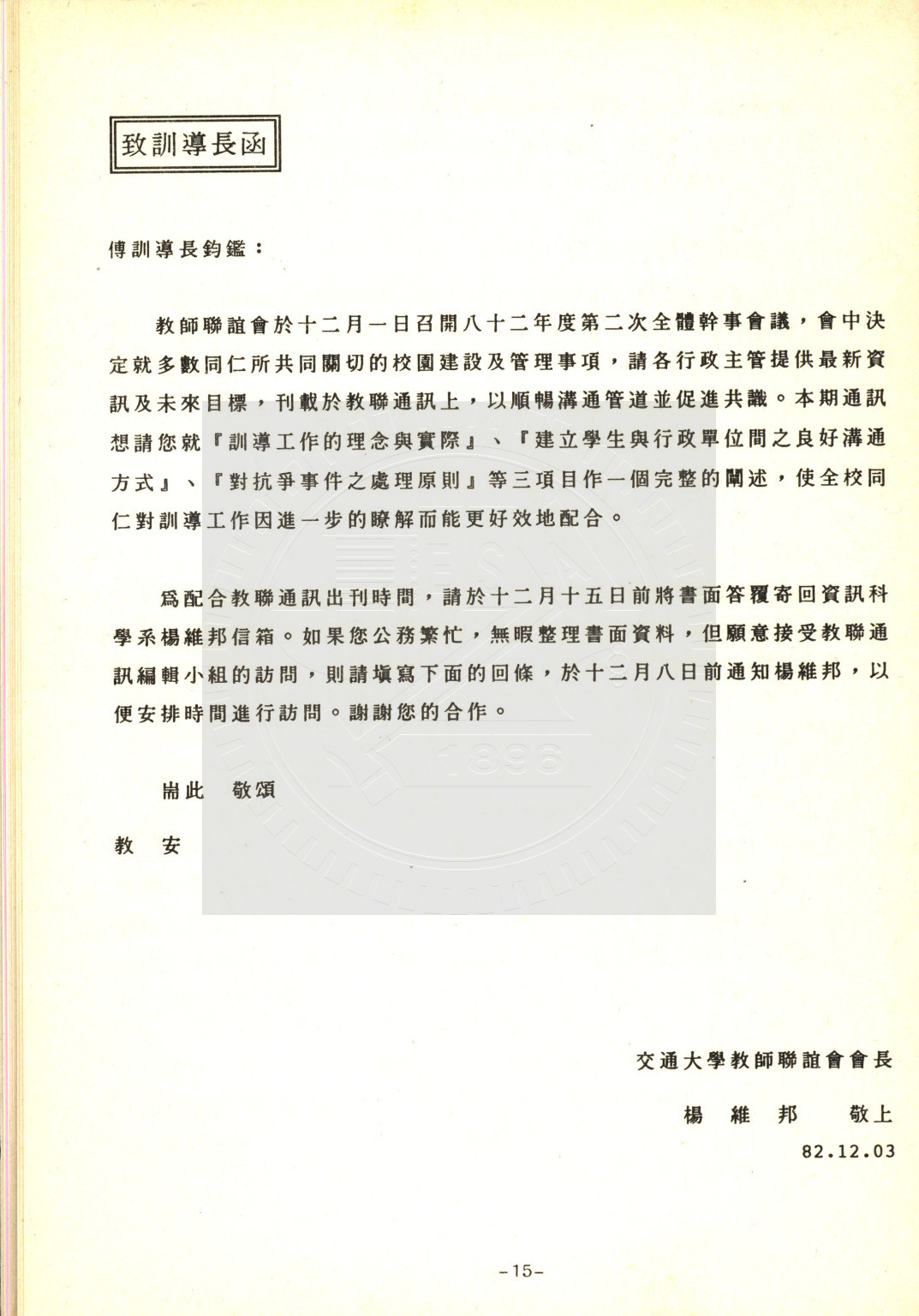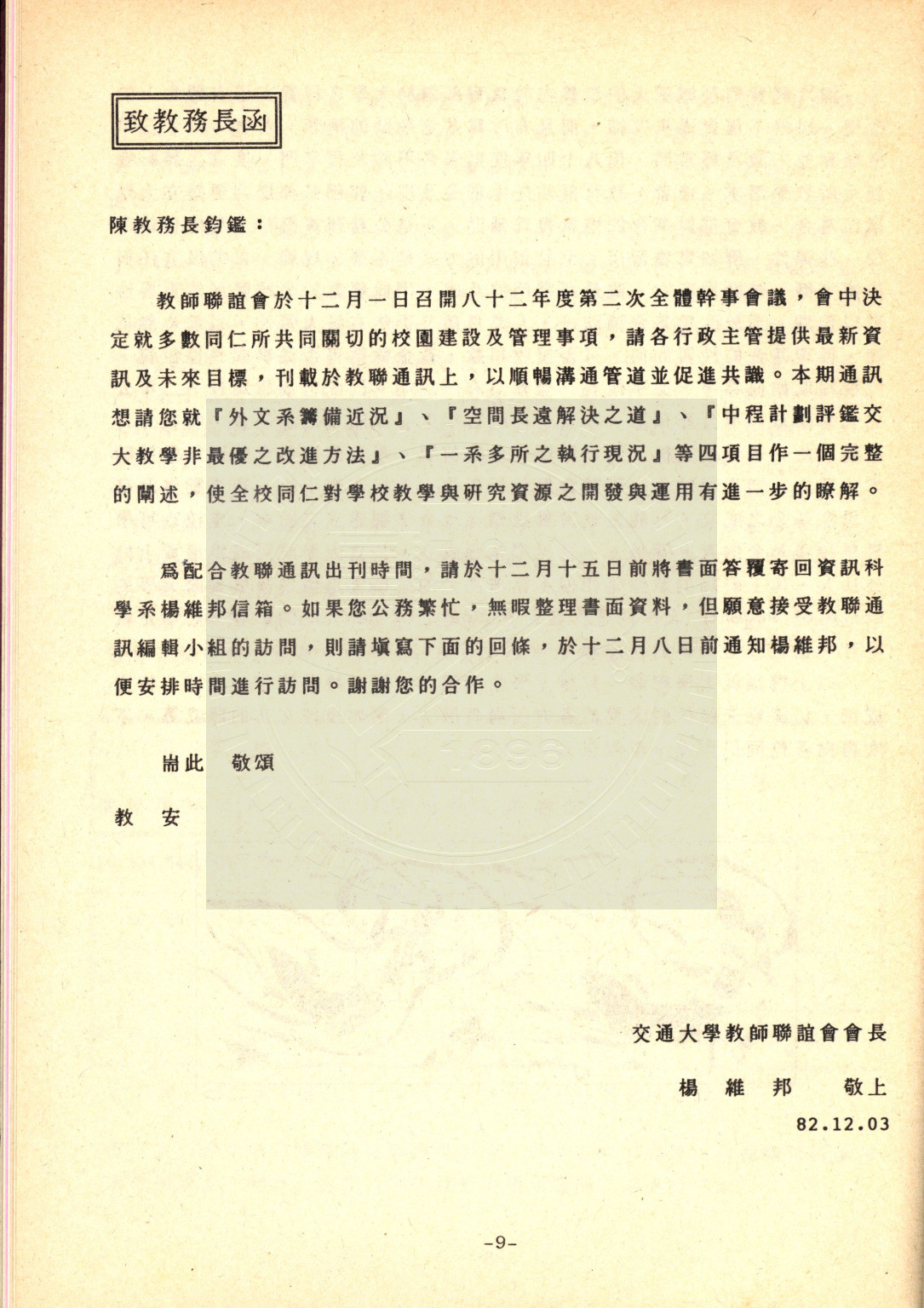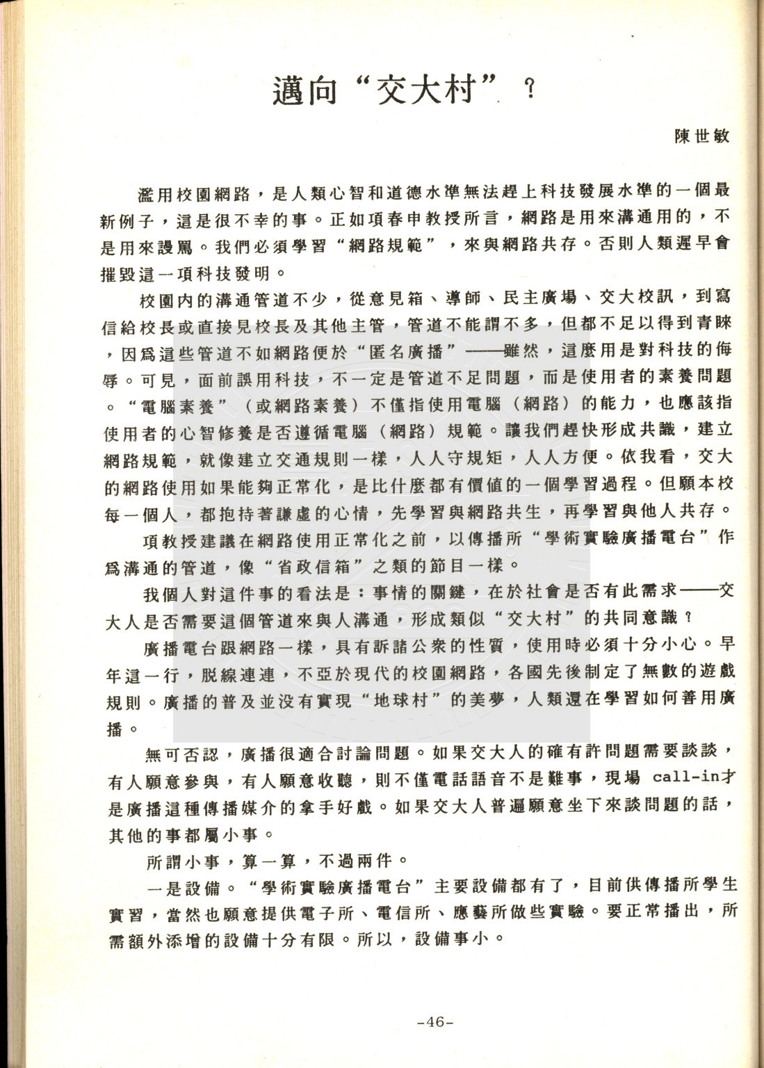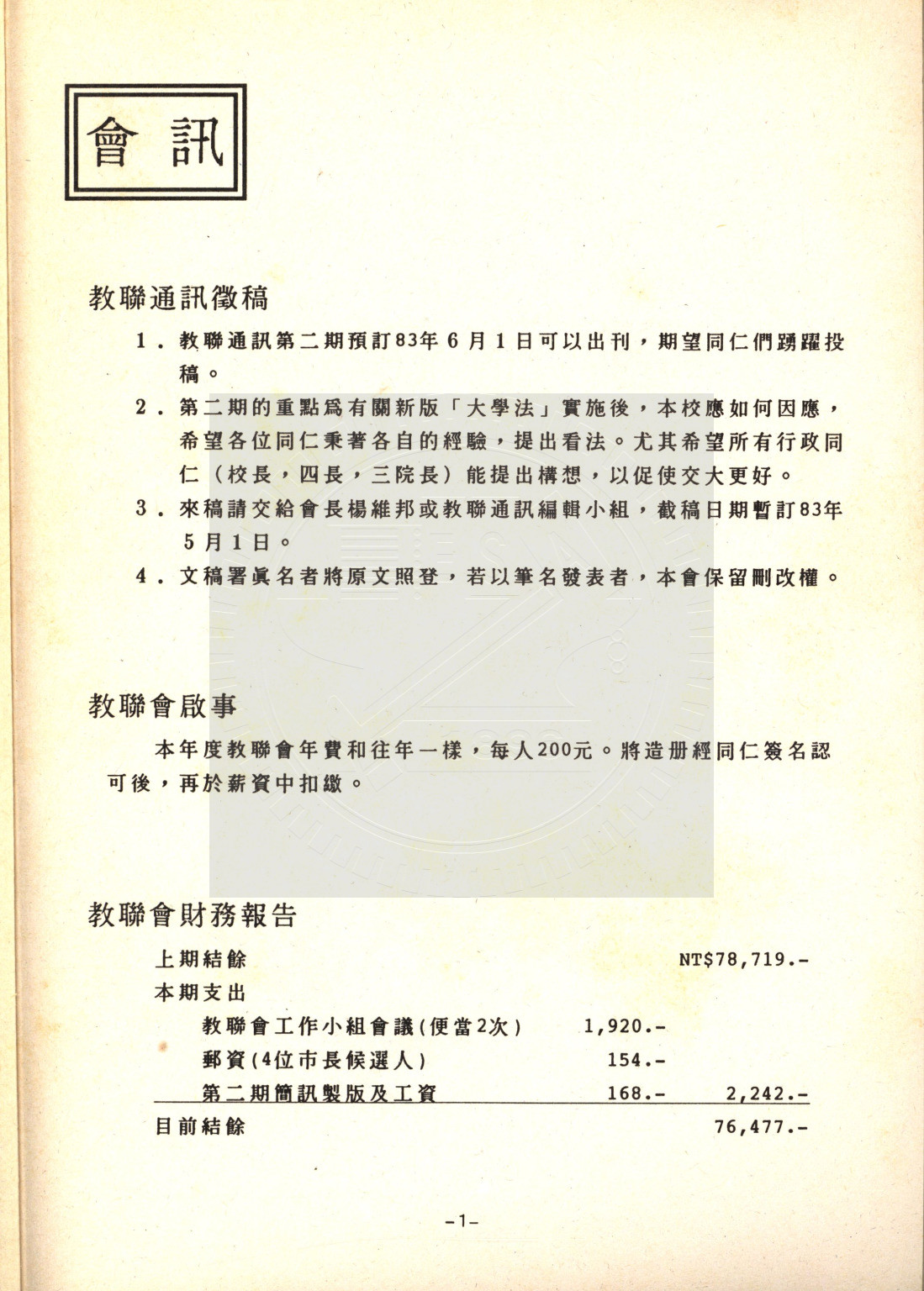 典藏地:交大校區 說明:交大教聯會通訊 83.1 (八十二學年度第二學期) 資料類型:書刊 典藏號:110-0008-002-82(1) 品名:交大教聯會通訊 83.1 (八十二學年度第二學期) 作者:- 年代:1994 出版者:國立交通大學教師聯誼會發行 數量:1冊 稽核資料:73頁 版本: 印刷品 作品語文: 中文 關鍵詞:交大、教聯會通訊 權利聲明:國立陽明交通大學圖書館珍藏資料,如需引用,請註明來源。 取用權:開放