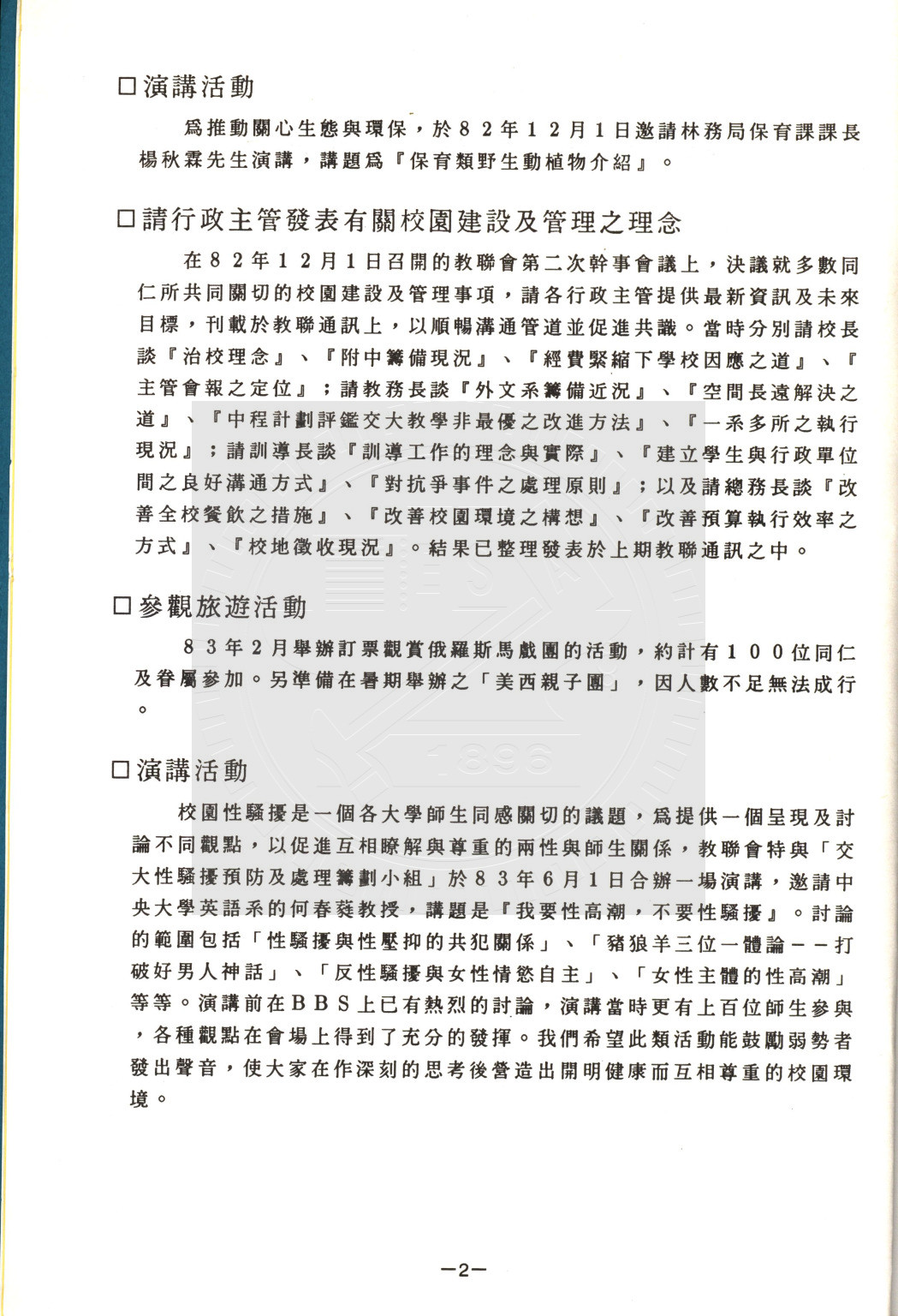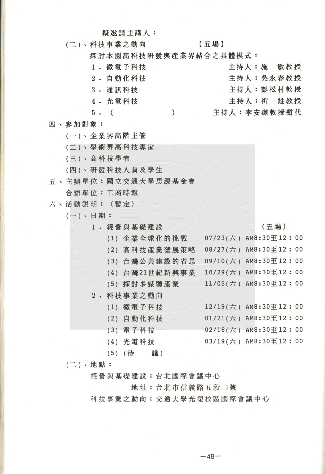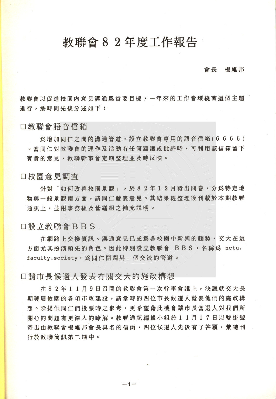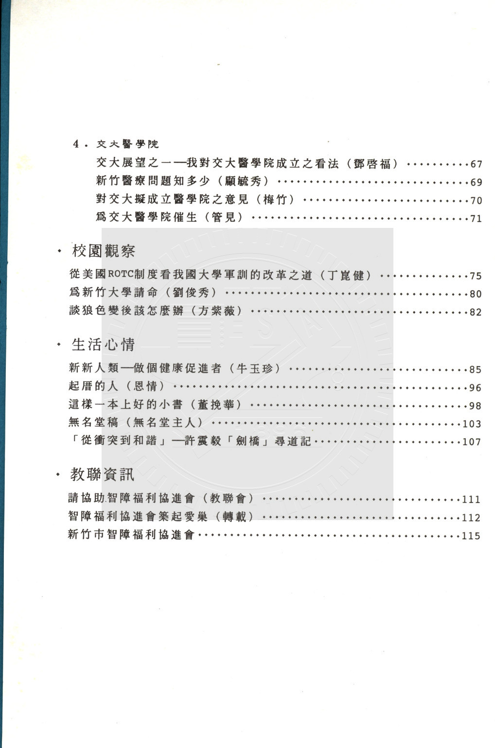 典藏地:交大校區 說明:交大教聯會通訊 83.6 (八十二學年度第二學期) 資料類型:書刊 典藏號:110-0008-002-82(2) 品名:交大教聯會通訊 83.6 (八十二學年度第二學期) 作者:- 年代:1994 出版者:國立交通大學教師聯誼會發行 數量:1冊 稽核資料:117頁 版本: 印刷品 作品語文: 中文 關鍵詞:交大、教聯會通訊 權利聲明:國立陽明交通大學圖書館珍藏資料,如需引用,請註明來源。 取用權:開放