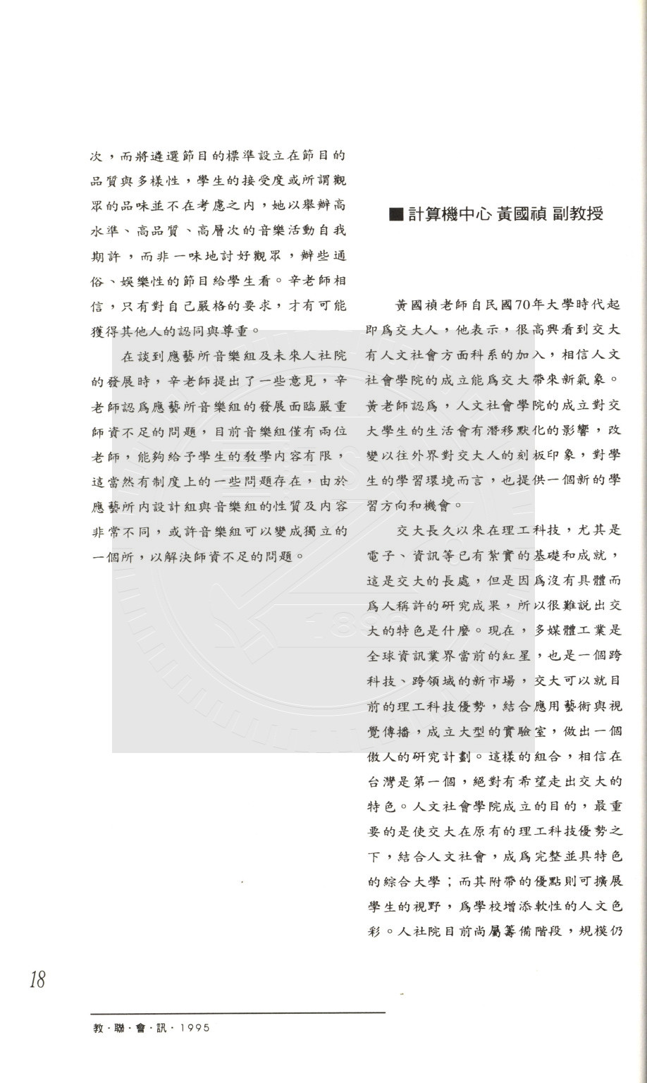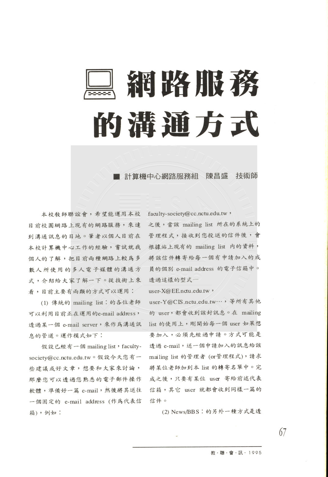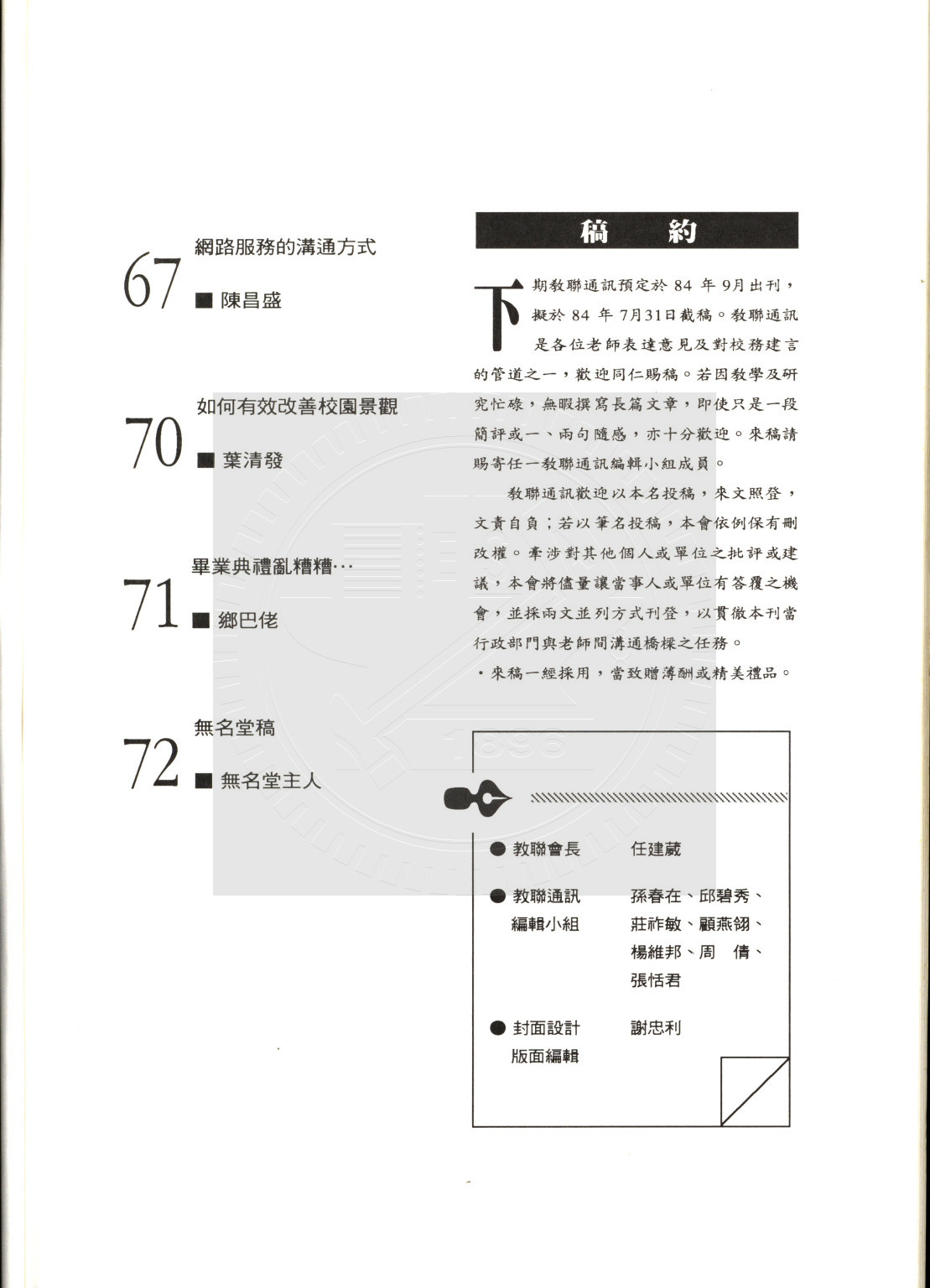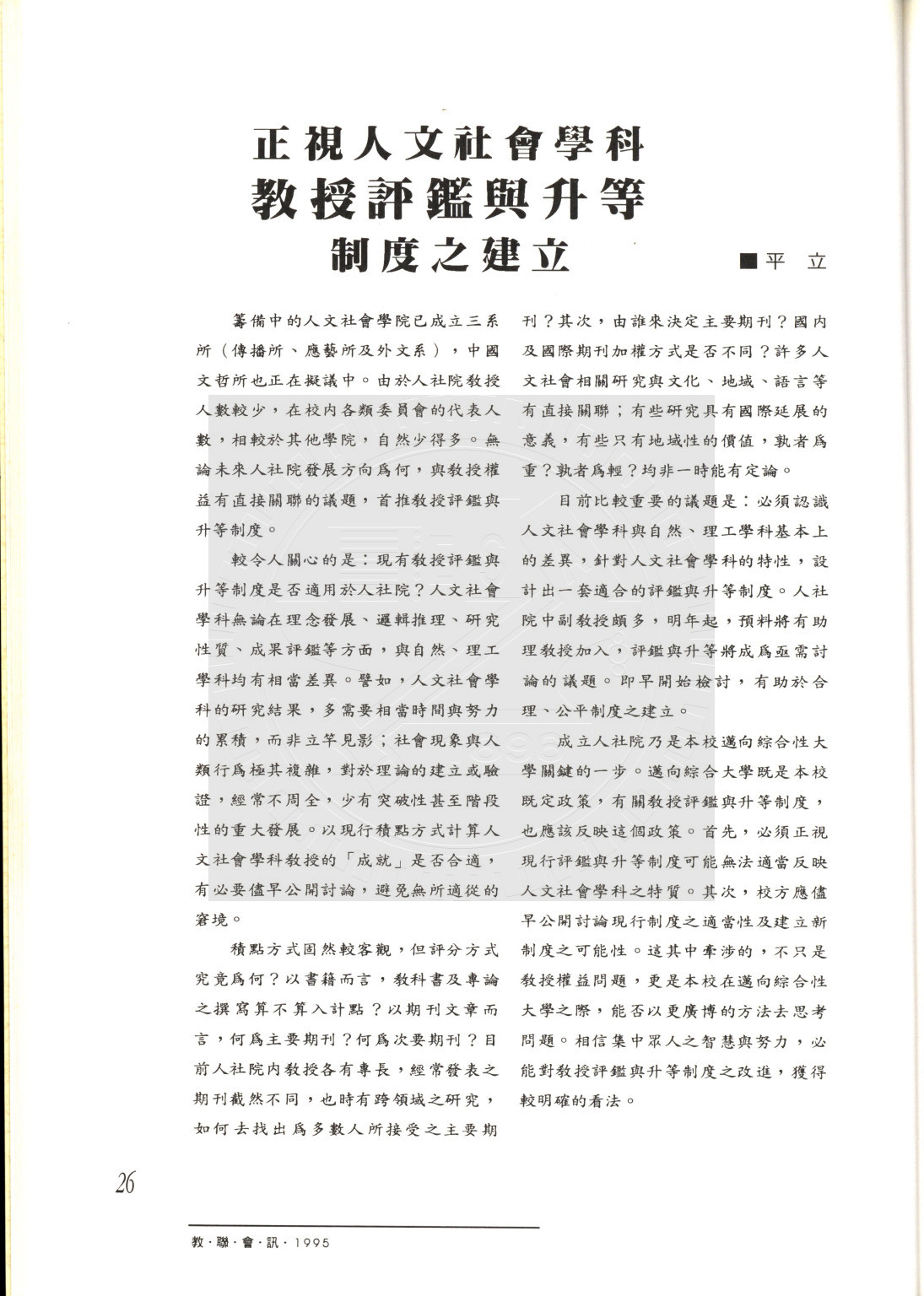 典藏地:交大校區 說明:交大教聯會通訊 84.4 資料類型:書刊 典藏號:110-0008-002-83(1) 品名:交大教聯會通訊 84.4 作者:- 年代:1995 出版者:國立交通大學教師聯誼會發行 數量:1冊 稽核資料:73頁 版本: 印刷品 作品語文: 中文 關鍵詞:交大、教聯會通訊 權利聲明:國立陽明交通大學圖書館珍藏資料,如需引用,請註明來源。 取用權:開放