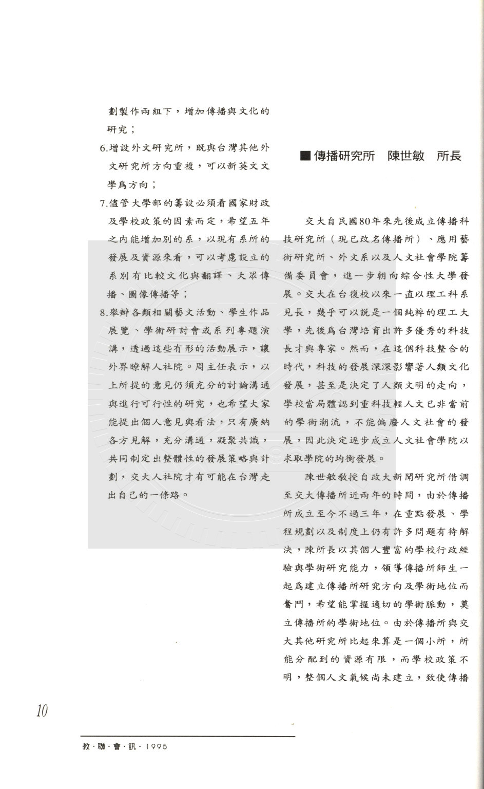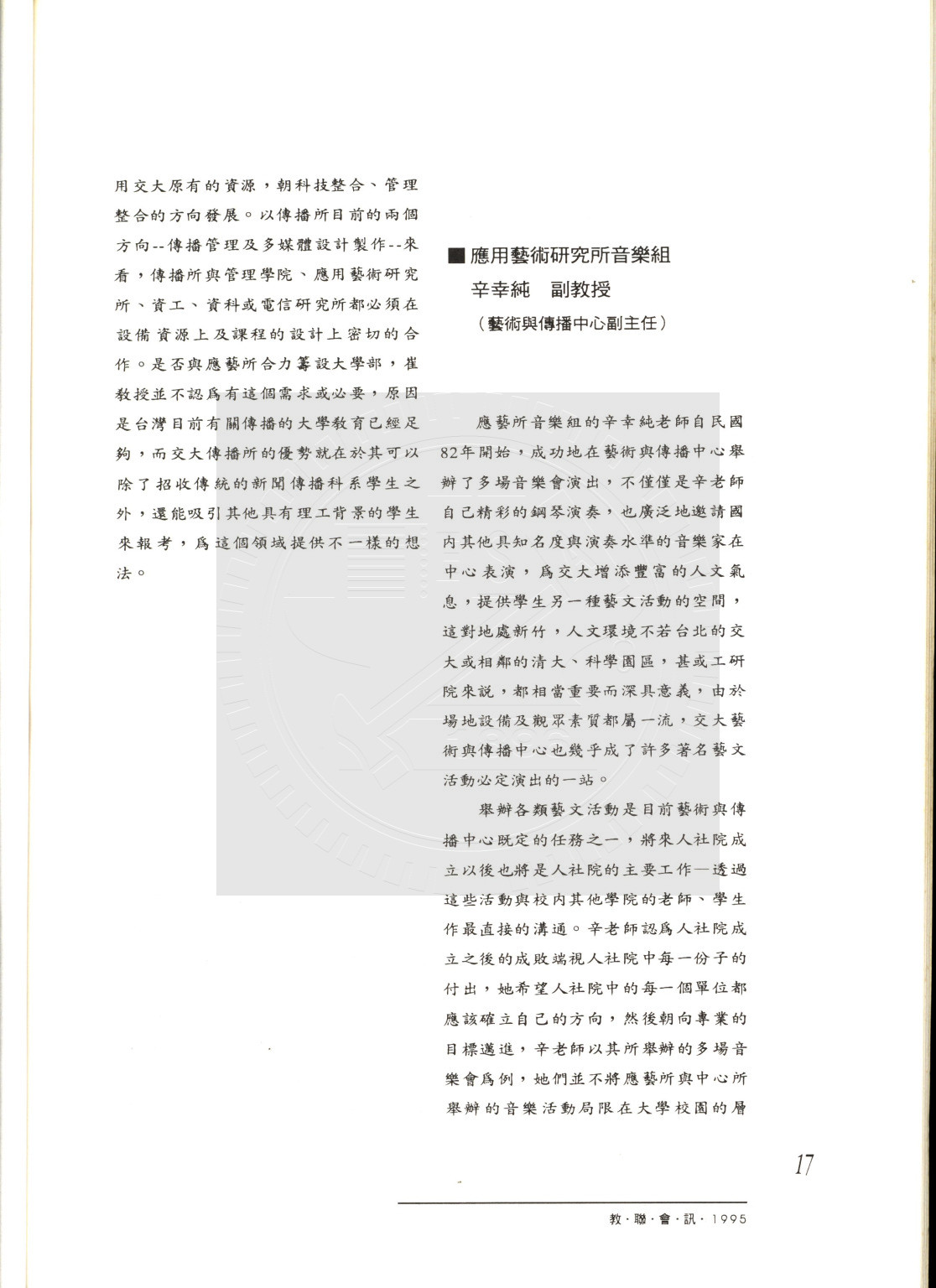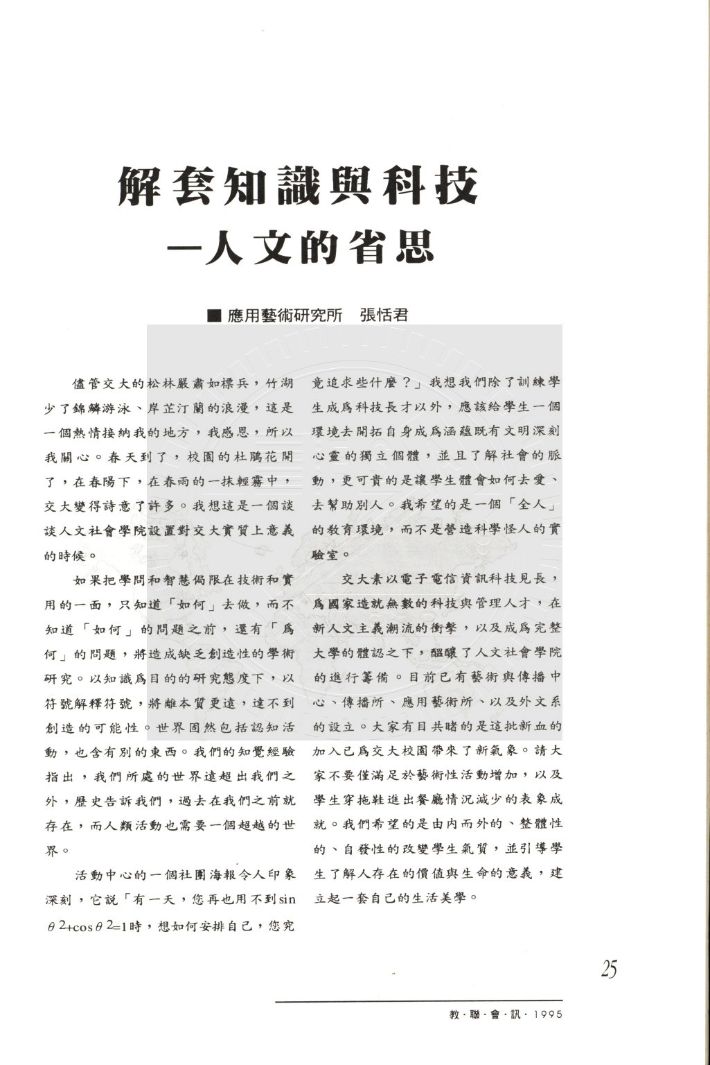 典藏地:交大校區 說明:交大教聯會通訊 84.4 資料類型:書刊 典藏號:110-0008-002-83(1) 品名:交大教聯會通訊 84.4 作者:- 年代:1995 出版者:國立交通大學教師聯誼會發行 數量:1冊 稽核資料:73頁 版本: 印刷品 作品語文: 中文 關鍵詞:交大、教聯會通訊 權利聲明:國立陽明交通大學圖書館珍藏資料,如需引用,請註明來源。 取用權:開放
