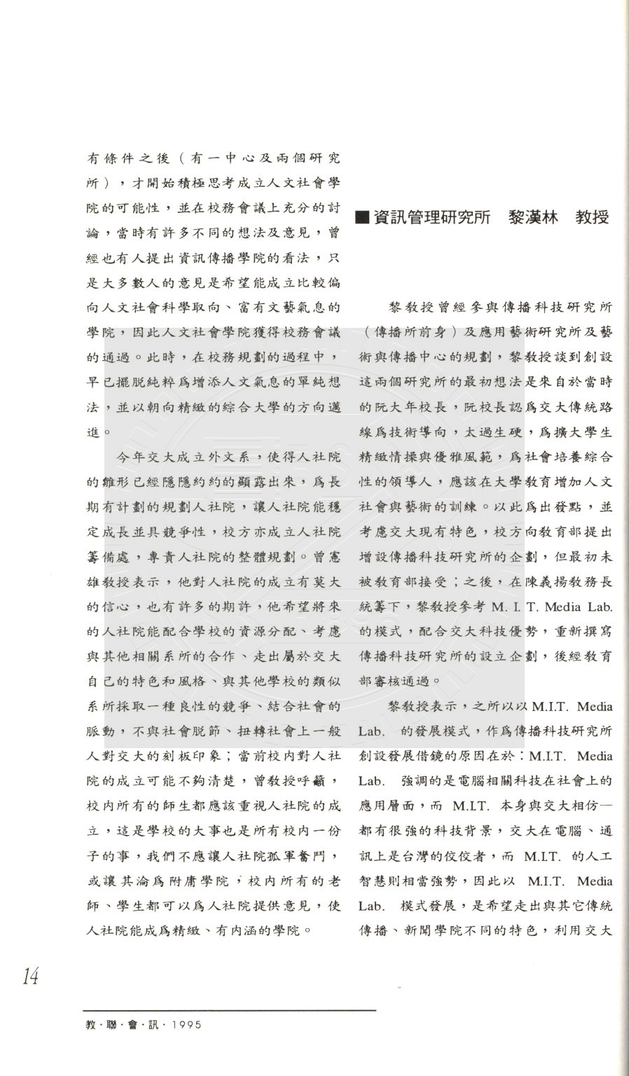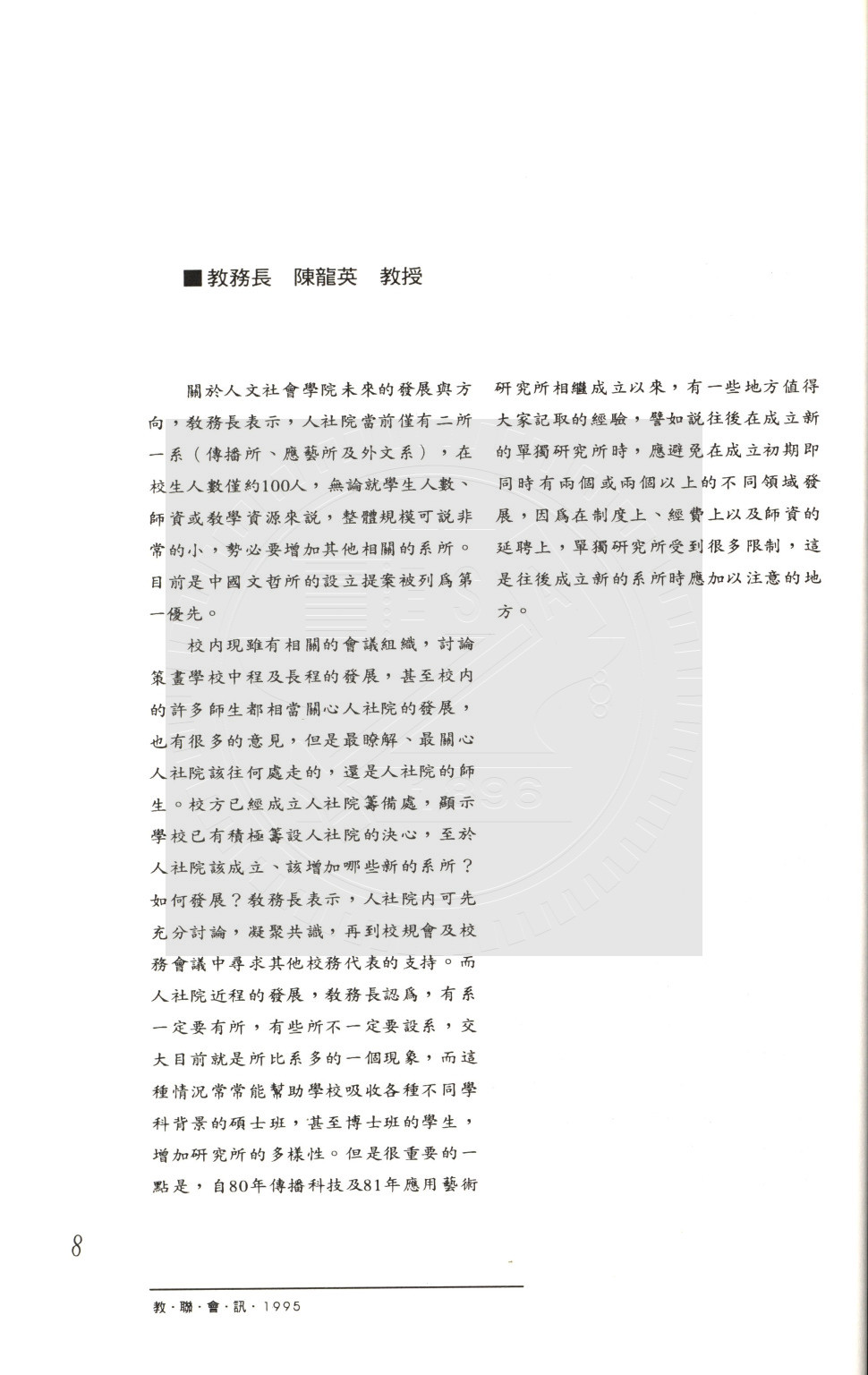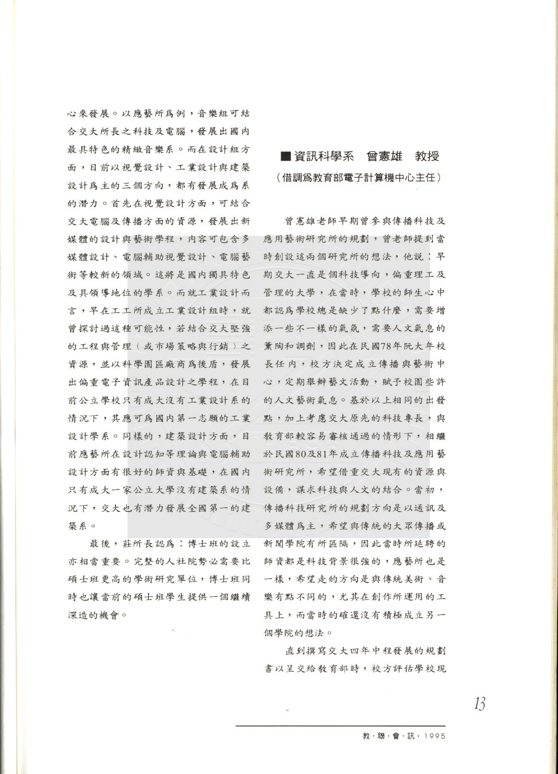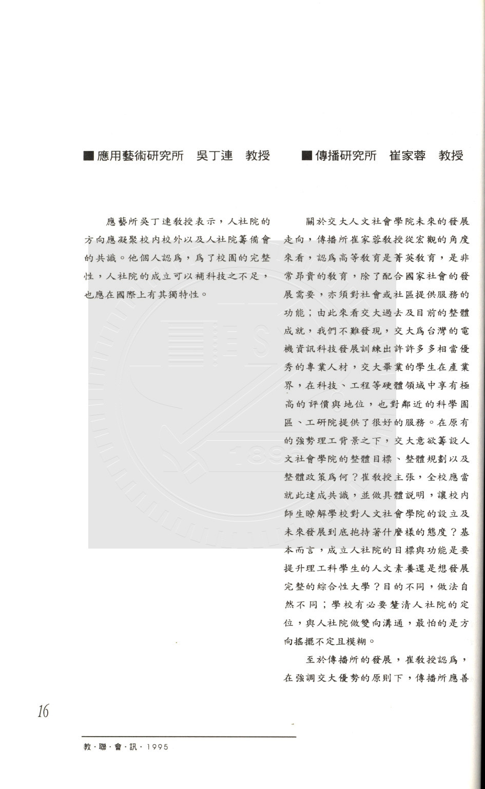 典藏地:交大校區 說明:交大教聯會通訊 84.4 資料類型:書刊 典藏號:110-0008-002-83(1) 品名:交大教聯會通訊 84.4 作者:- 年代:1995 出版者:國立交通大學教師聯誼會發行 數量:1冊 稽核資料:73頁 版本: 印刷品 作品語文: 中文 關鍵詞:交大、教聯會通訊 權利聲明:國立陽明交通大學圖書館珍藏資料,如需引用,請註明來源。 取用權:開放