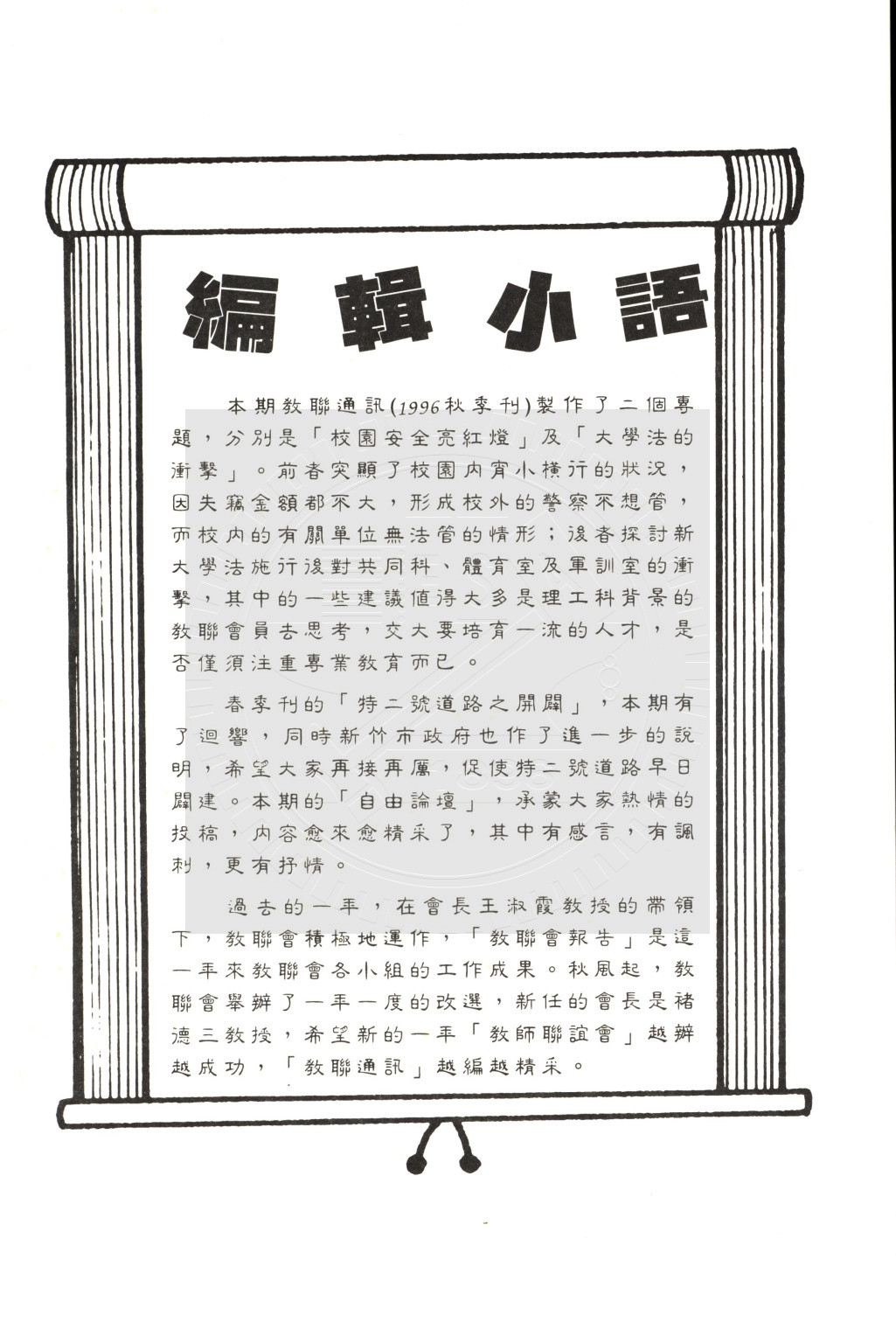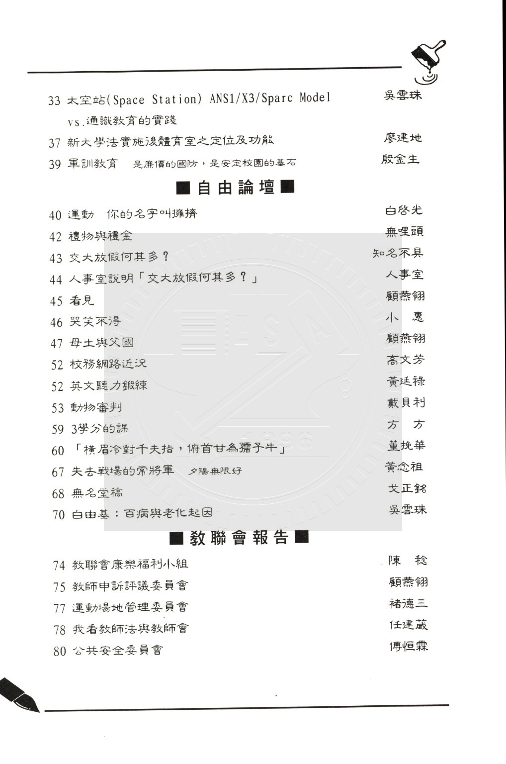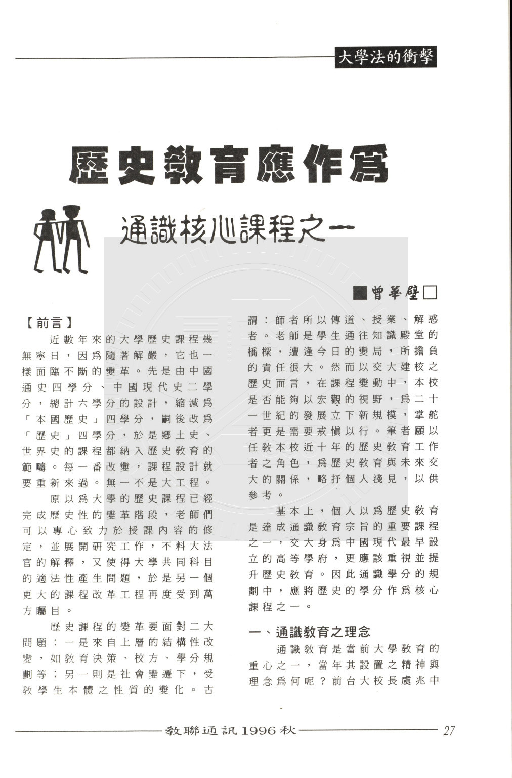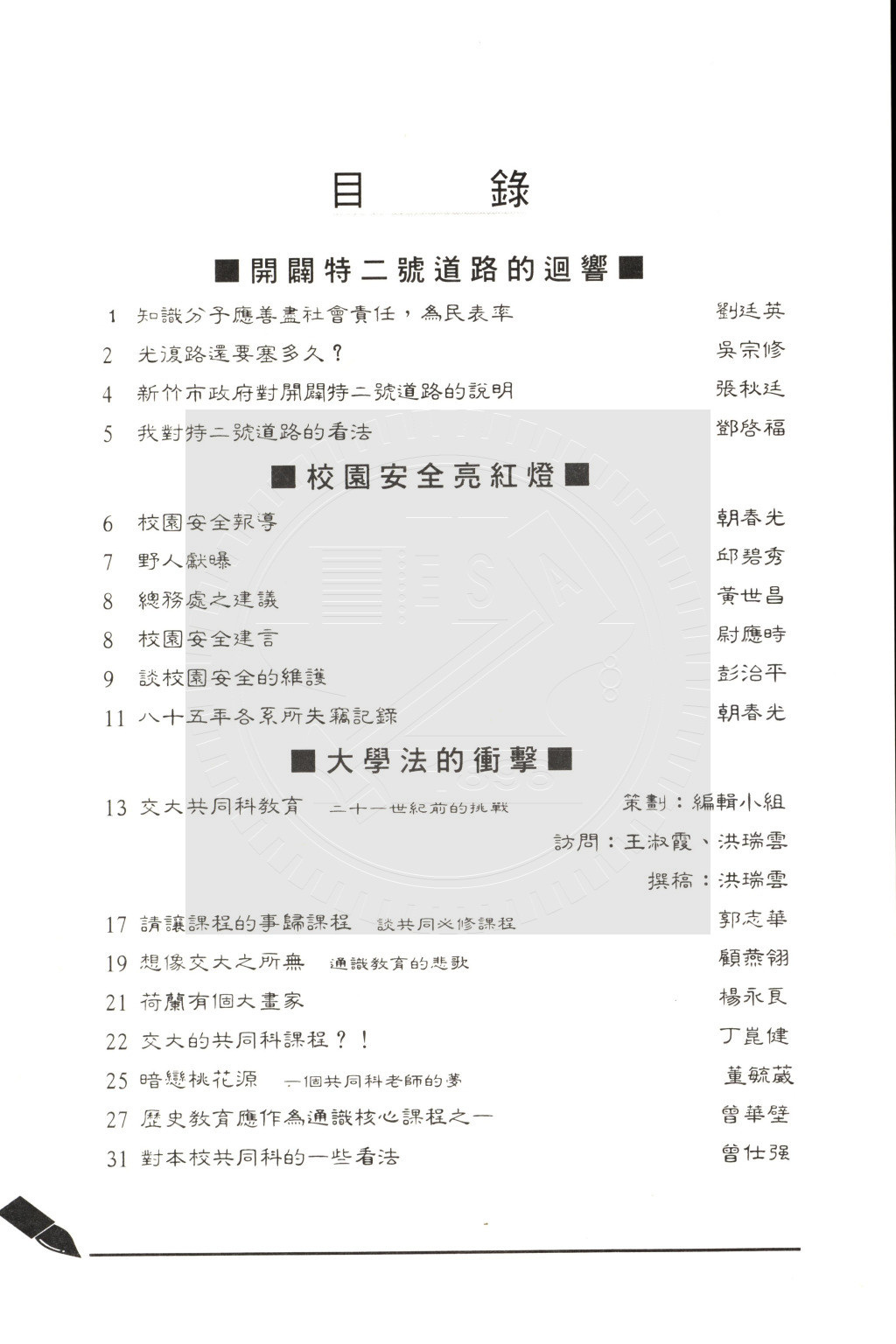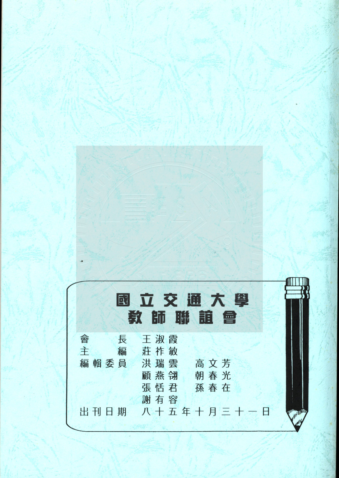 典藏地:交大校區 說明:交大教聯通訊 (85年秋季刊) 資料類型:書刊 典藏號:110-0008-002-85(1) 品名:交大教聯通訊 (85年秋季刊) 作者:- 年代:1996 出版者:國立交通大學教師聯誼會發行 數量:1冊 稽核資料:80頁 版本: 印刷品 作品語文: 中文 關鍵詞:交大、教聯通訊 權利聲明:國立陽明交通大學圖書館珍藏資料,如需引用,請註明來源。 取用權:開放