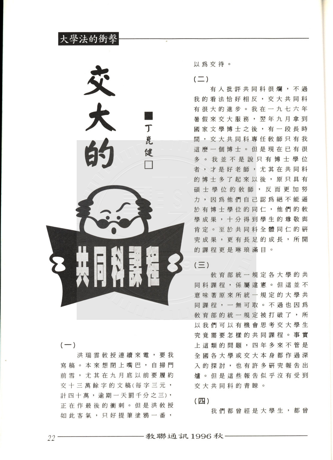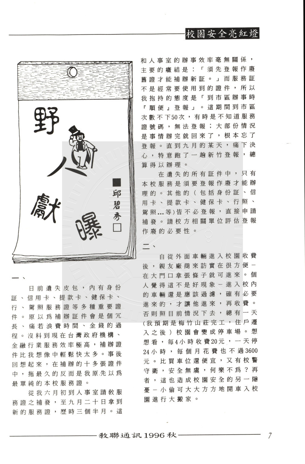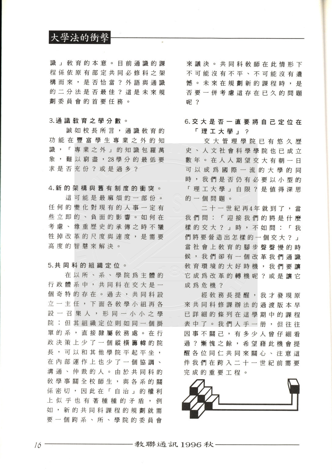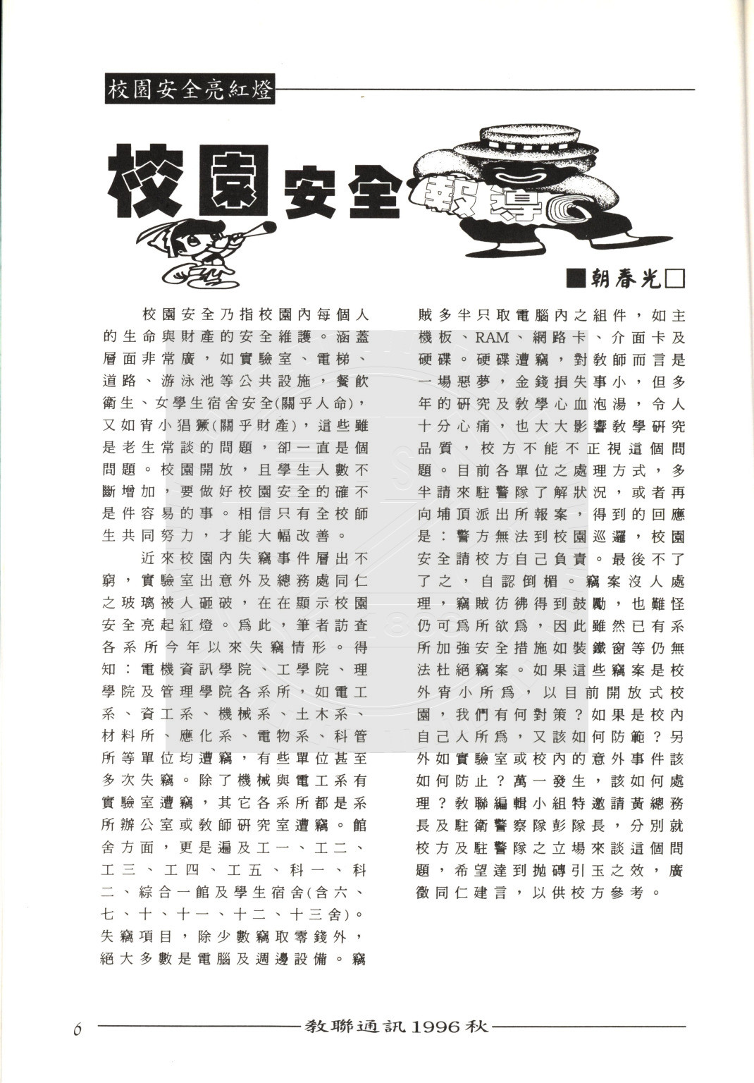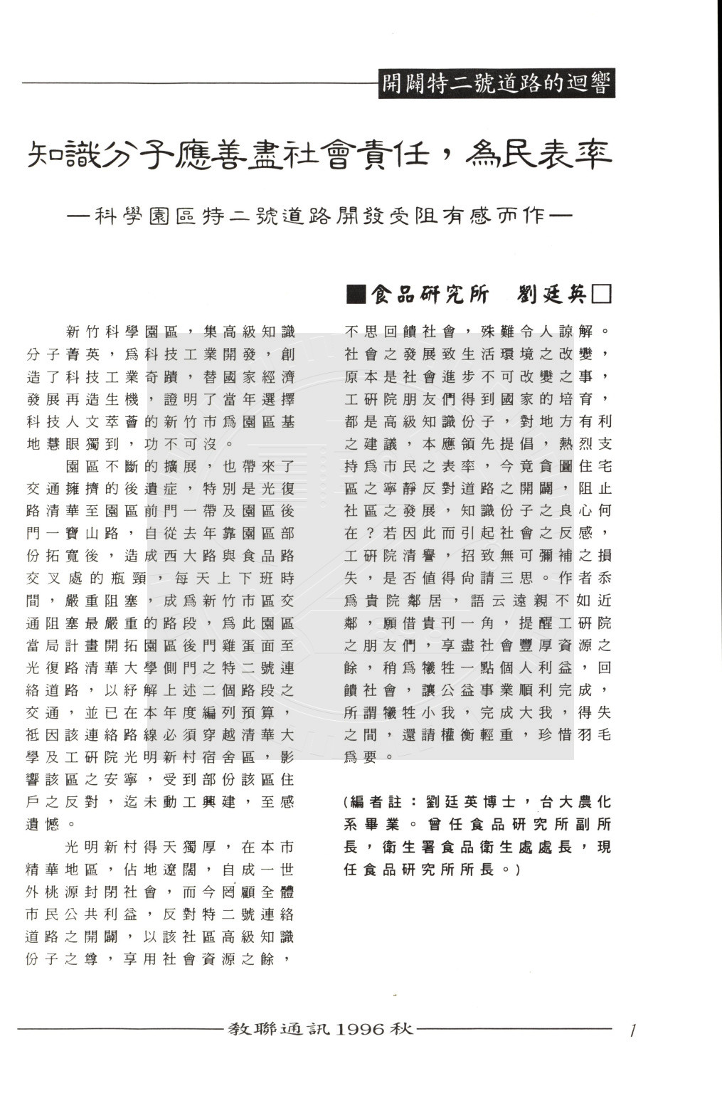 典藏地:交大校區 說明:交大教聯通訊 (85年秋季刊) 資料類型:書刊 典藏號:110-0008-002-85(1) 品名:交大教聯通訊 (85年秋季刊) 作者:- 年代:1996 出版者:國立交通大學教師聯誼會發行 數量:1冊 稽核資料:80頁 版本: 印刷品 作品語文: 中文 關鍵詞:交大、教聯通訊 權利聲明:國立陽明交通大學圖書館珍藏資料,如需引用,請註明來源。 取用權:開放