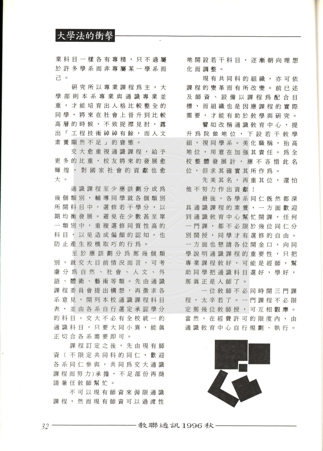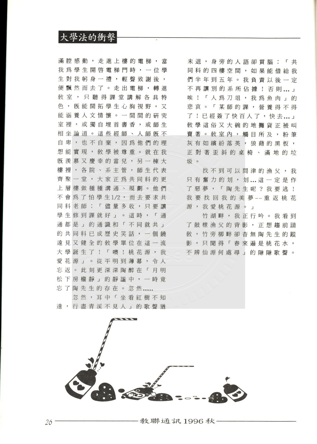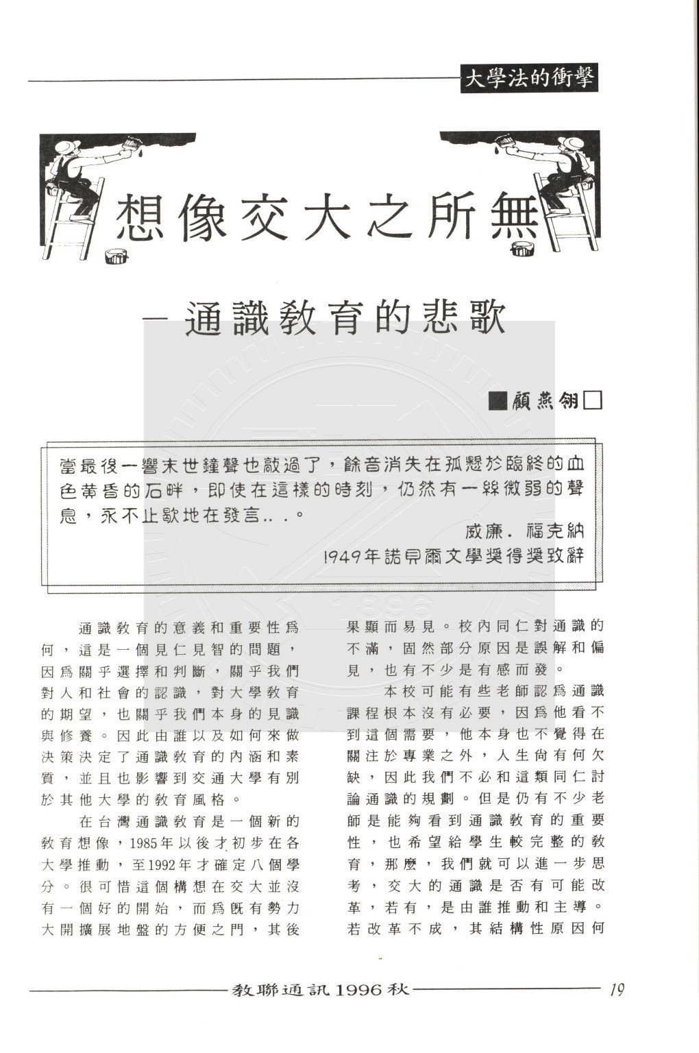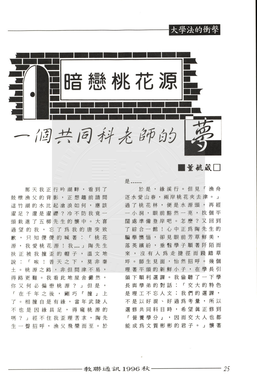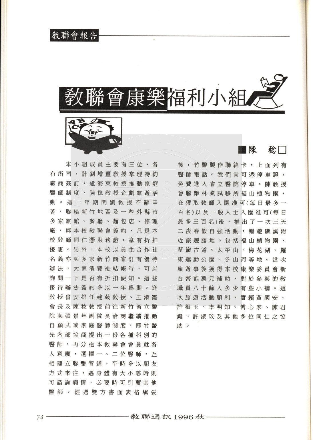 典藏地:交大校區 說明:交大教聯通訊 (85年秋季刊) 資料類型:書刊 典藏號:110-0008-002-85(1) 品名:交大教聯通訊 (85年秋季刊) 作者:- 年代:1996 出版者:國立交通大學教師聯誼會發行 數量:1冊 稽核資料:80頁 版本: 印刷品 作品語文: 中文 關鍵詞:交大、教聯通訊 權利聲明:國立陽明交通大學圖書館珍藏資料,如需引用,請註明來源。 取用權:開放