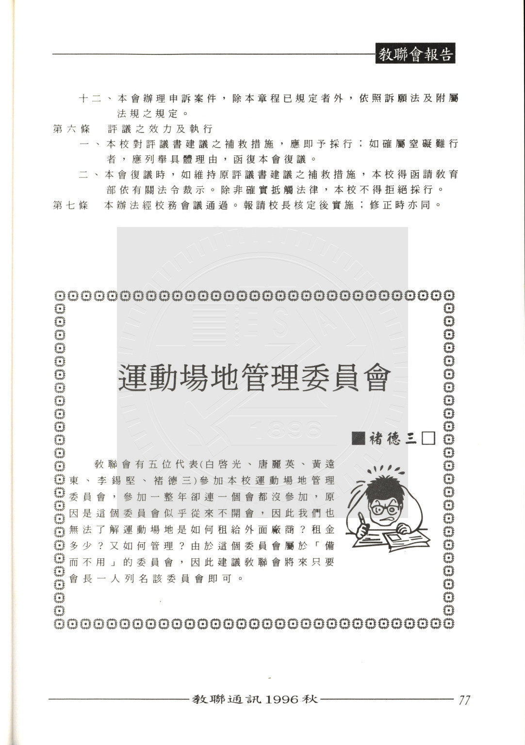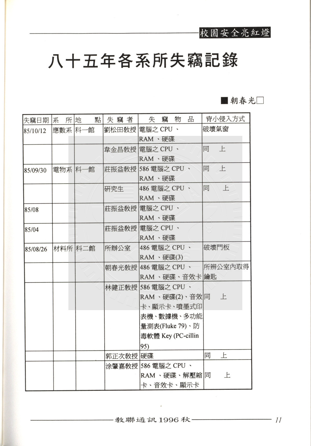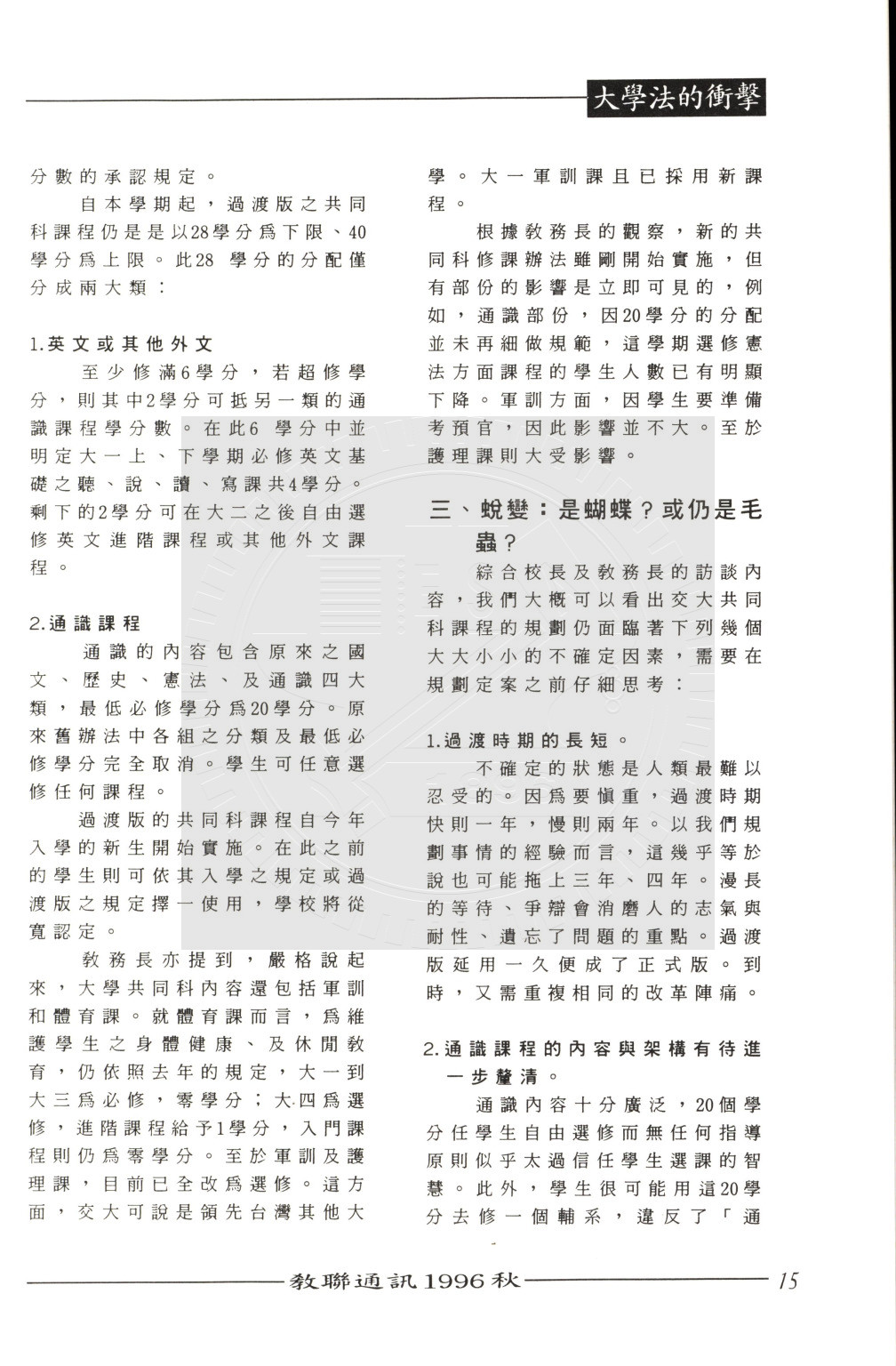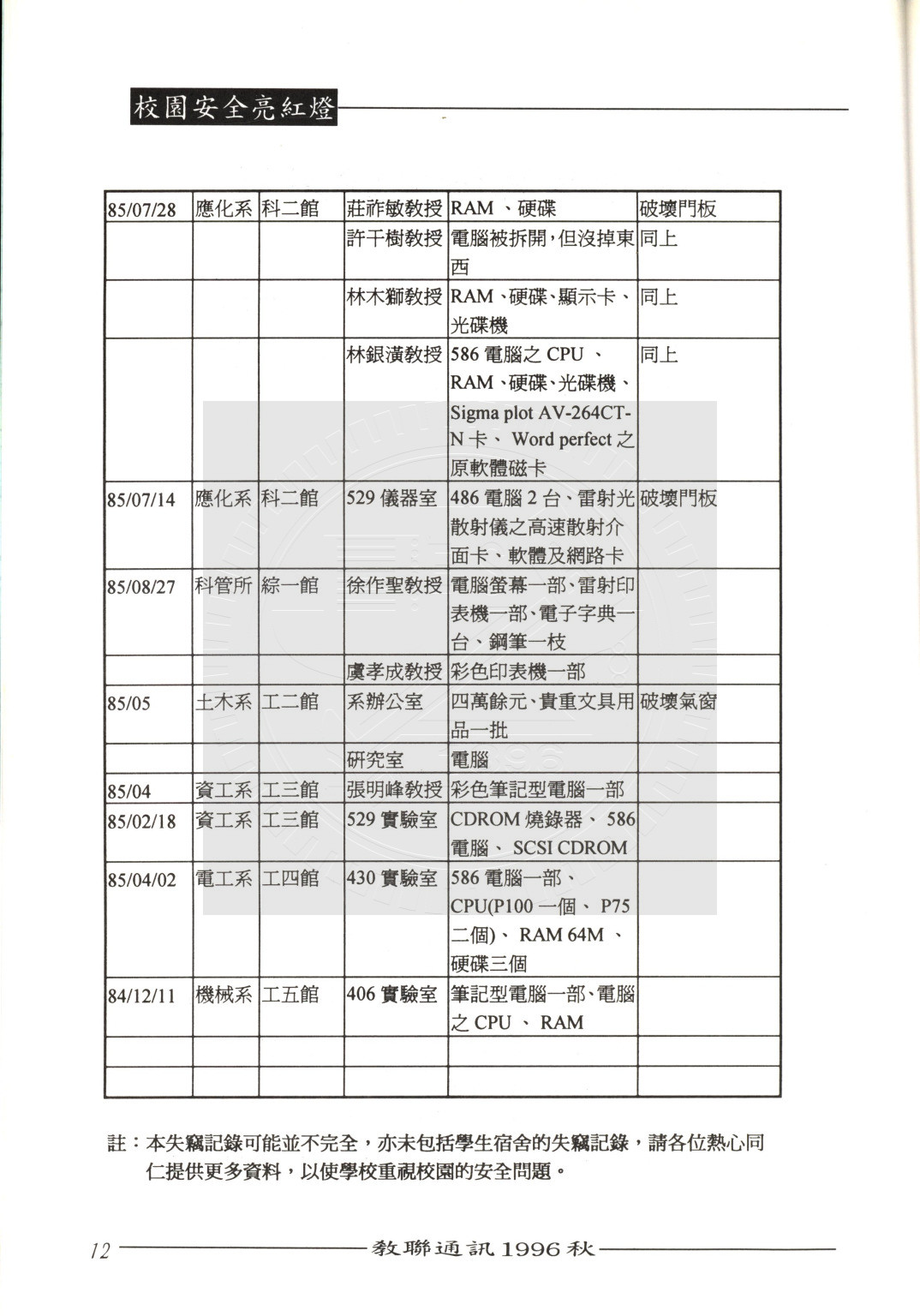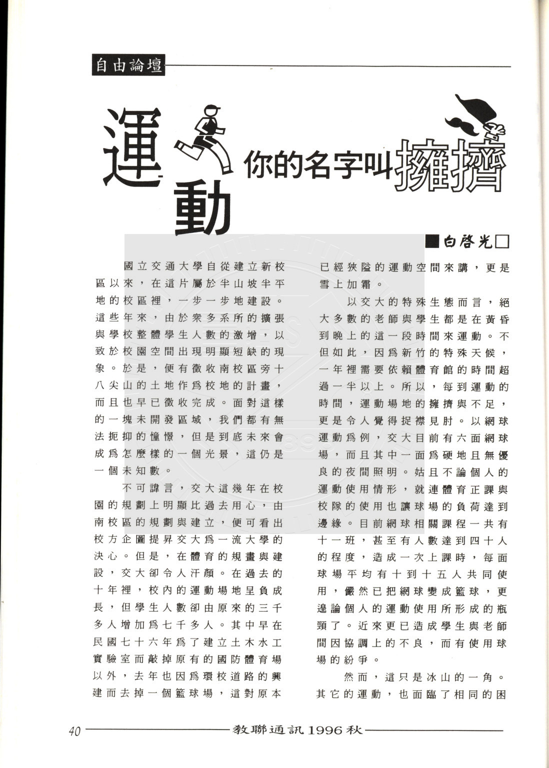 典藏地:交大校區 說明:交大教聯通訊 (85年秋季刊) 資料類型:書刊 典藏號:110-0008-002-85(1) 品名:交大教聯通訊 (85年秋季刊) 作者:- 年代:1996 出版者:國立交通大學教師聯誼會發行 數量:1冊 稽核資料:80頁 版本: 印刷品 作品語文: 中文 關鍵詞:交大、教聯通訊 權利聲明:國立陽明交通大學圖書館珍藏資料,如需引用,請註明來源。 取用權:開放