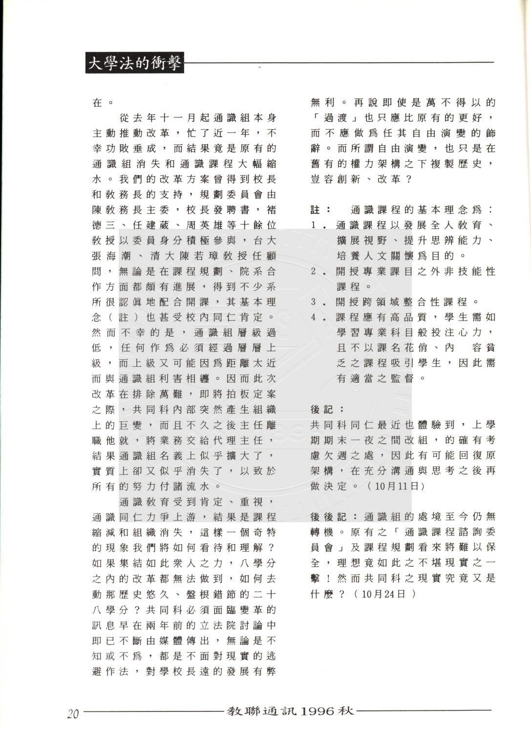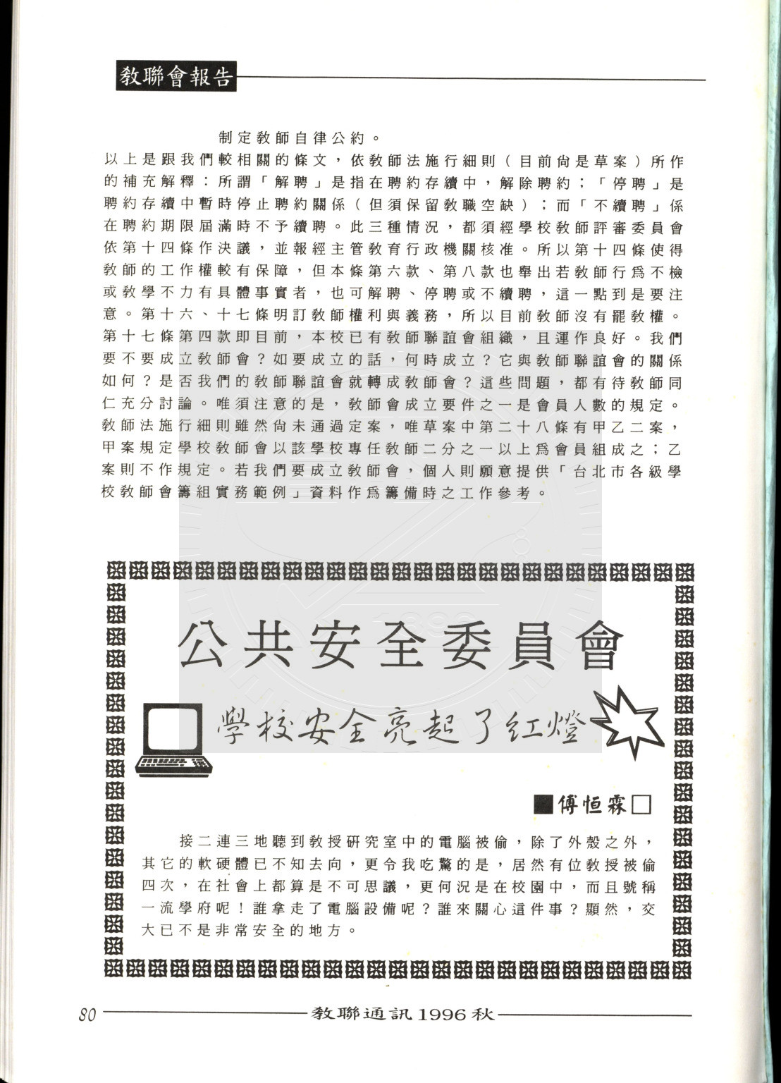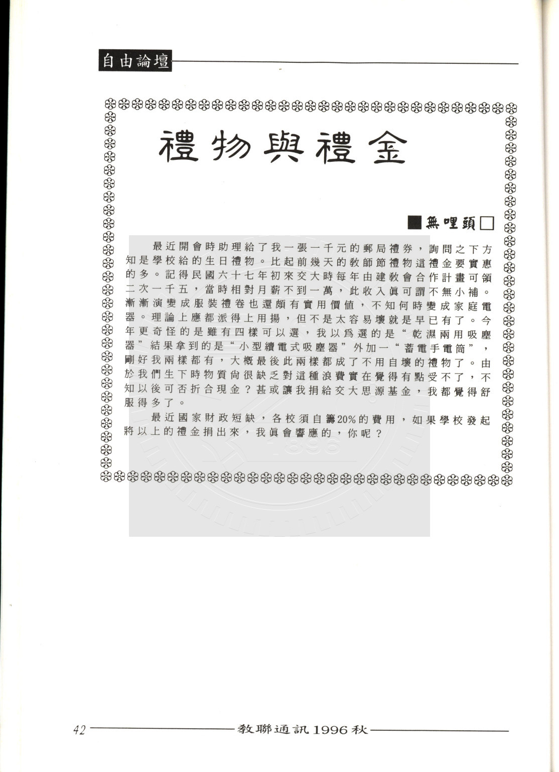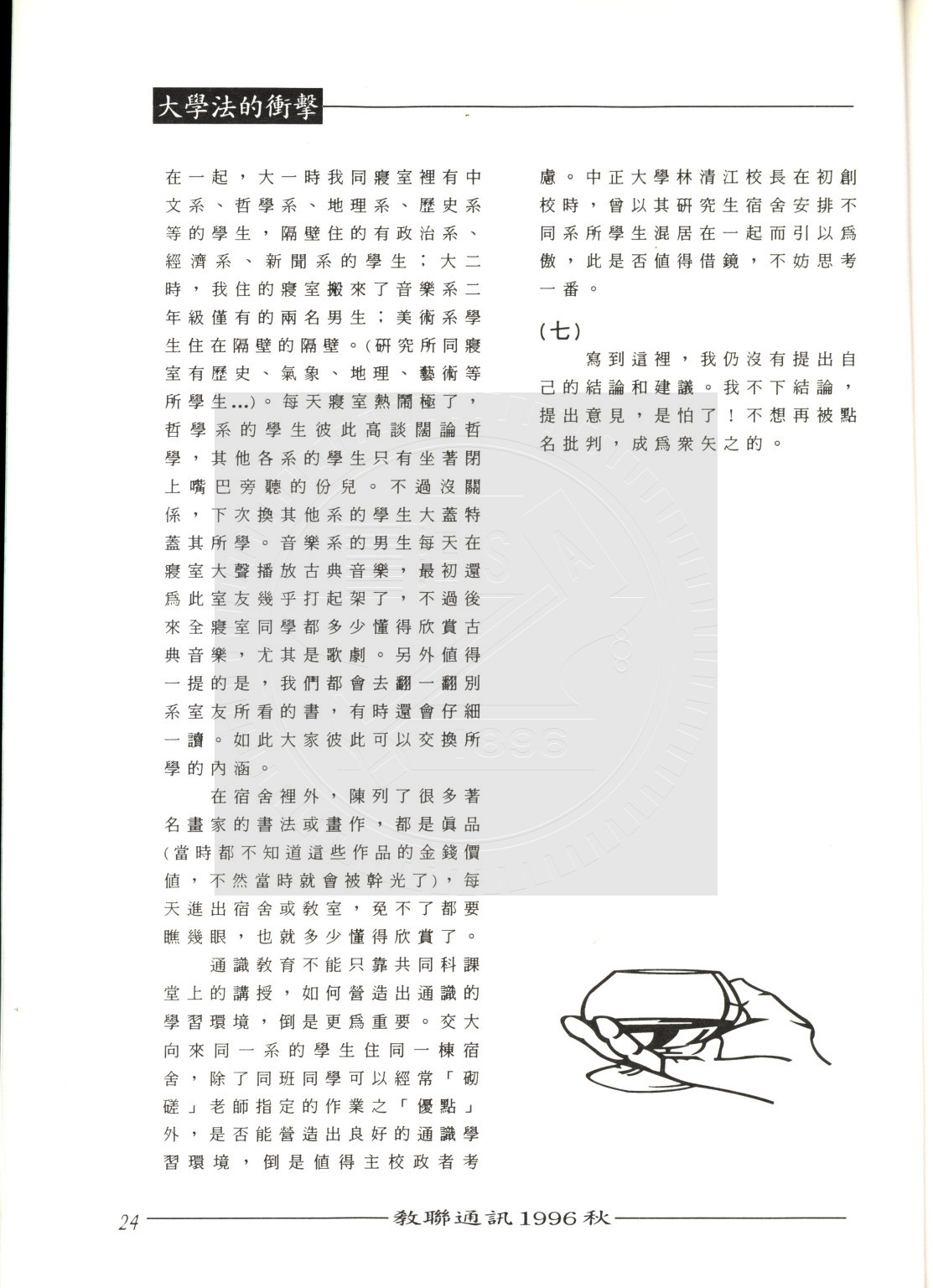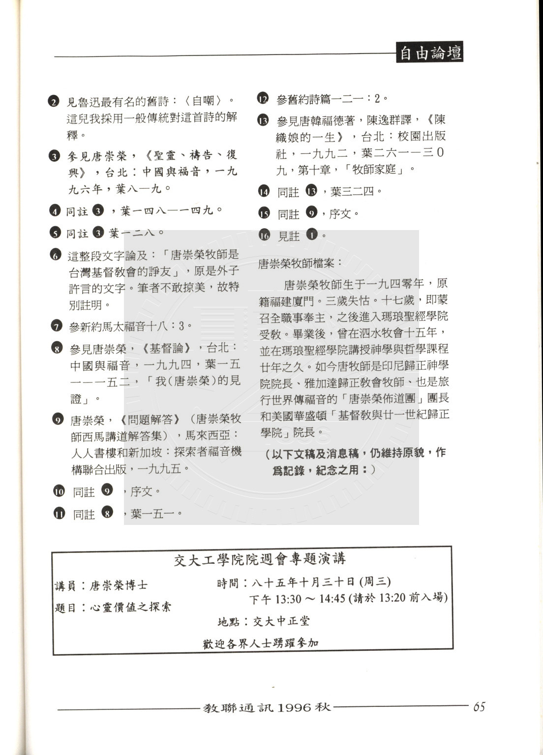 典藏地:交大校區 說明:交大教聯通訊 (85年秋季刊) 資料類型:書刊 典藏號:110-0008-002-85(1) 品名:交大教聯通訊 (85年秋季刊) 作者:- 年代:1996 出版者:國立交通大學教師聯誼會發行 數量:1冊 稽核資料:80頁 版本: 印刷品 作品語文: 中文 關鍵詞:交大、教聯通訊 權利聲明:國立陽明交通大學圖書館珍藏資料,如需引用,請註明來源。 取用權:開放