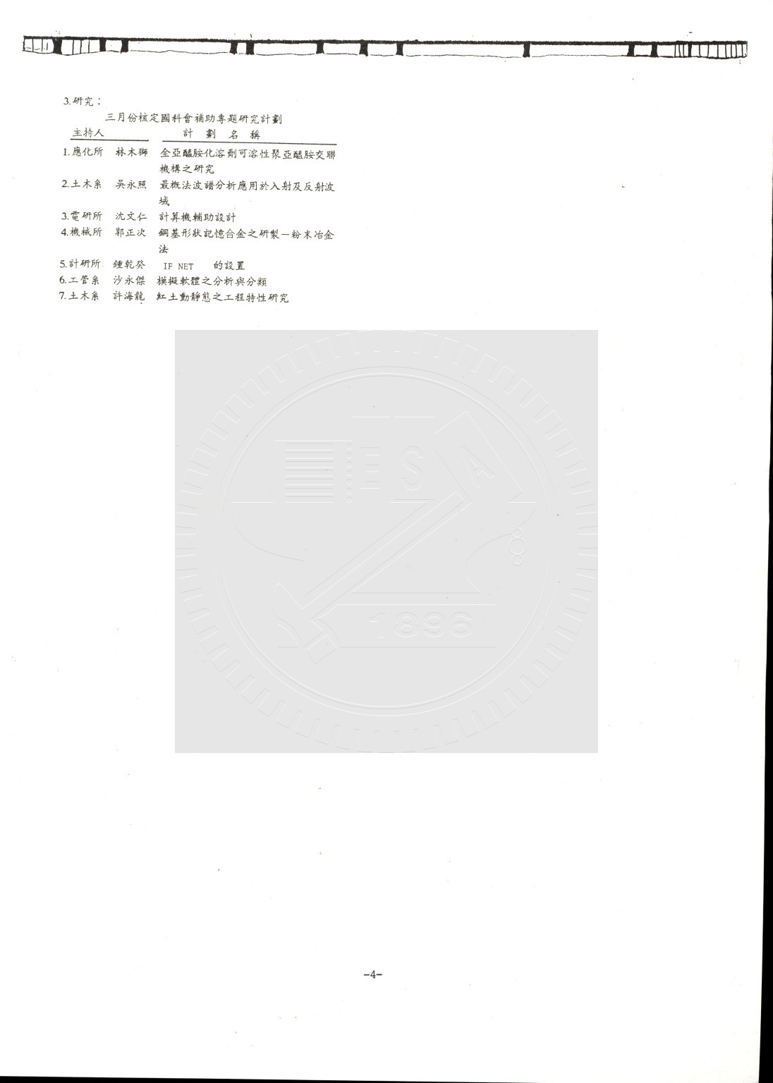 典藏地:交大校區 說明:國立交通大學科技簡訊 (75年4月)。內容:教育部推動大學科際整合計畫;經濟部推廣資訊工業研究發展六項計畫;振盪波長自由自在之染料雷射等。 資料類型:書刊 典藏號:110-0008-003-74(9) 品名:國立交通大學科技簡訊 (75年4月) 作者:- 年代:1986 出版者:主辦單位:建教合作委員會;協辦單位:圖書館、出版組。 數量:1冊 稽核資料:4頁 版本: 印刷品 作品語文: 中文 關鍵詞:交通大學、科技簡訊 權利聲明:國立陽明交通大學圖書館珍藏資料,如需引用,請註明來源。 取用權:開放