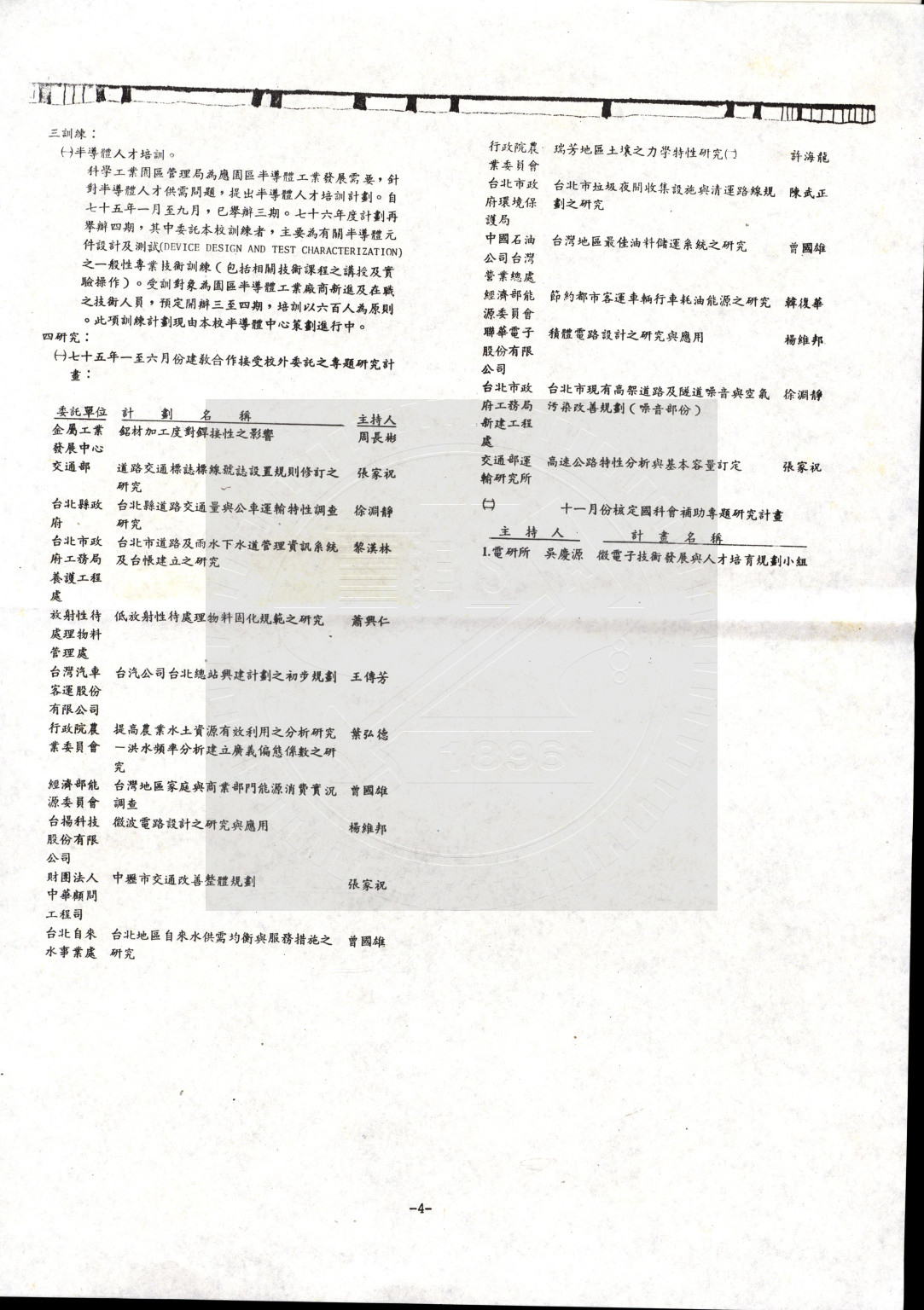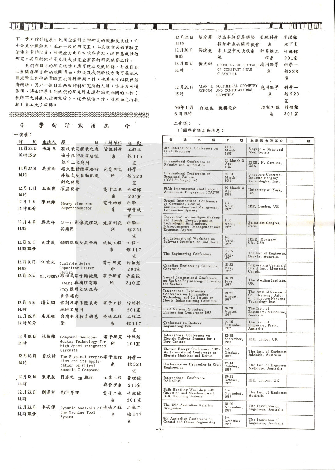典藏地:交大校區 說明:國立交通大學科技簡訊 (75年12月)。內容:大學院校科技整合計畫核定明年實施;橫向放電二氧化碳雷射可切割非金屬皮革;輜重武器驅動系統交大鑽研成功;謝太炯教授訪問日本實驗室簡報摘錄等。 資料類型:書刊 典藏號:110-0008-004-75(5) 品名:國立交通大學科技簡訊 (75年12月) 作者:- 年代:1986 出版者:主辦單位:建教合作委員會;協辦單位:圖書館、出版組。 數量:1冊 稽核資料:4頁 版本: 印刷品 作品語文: 中文 關鍵詞:交通大學、科技簡訊 權利聲明:國立陽明交通大學圖書館珍藏資料,如需引用,請註明來源。 取用權:開放