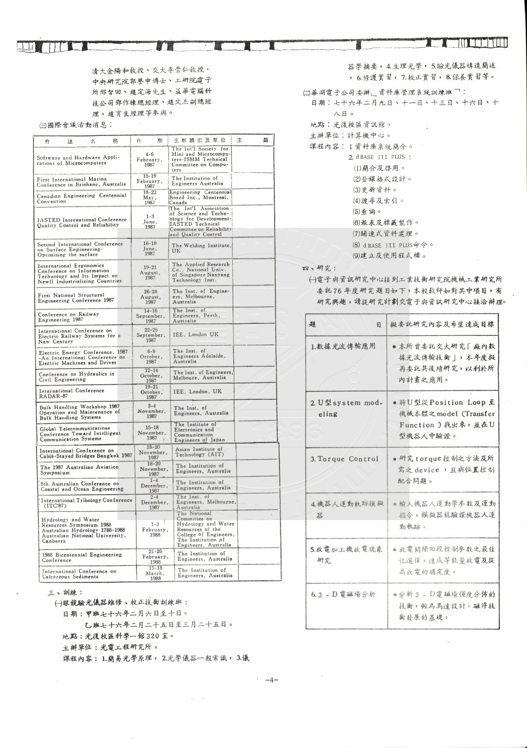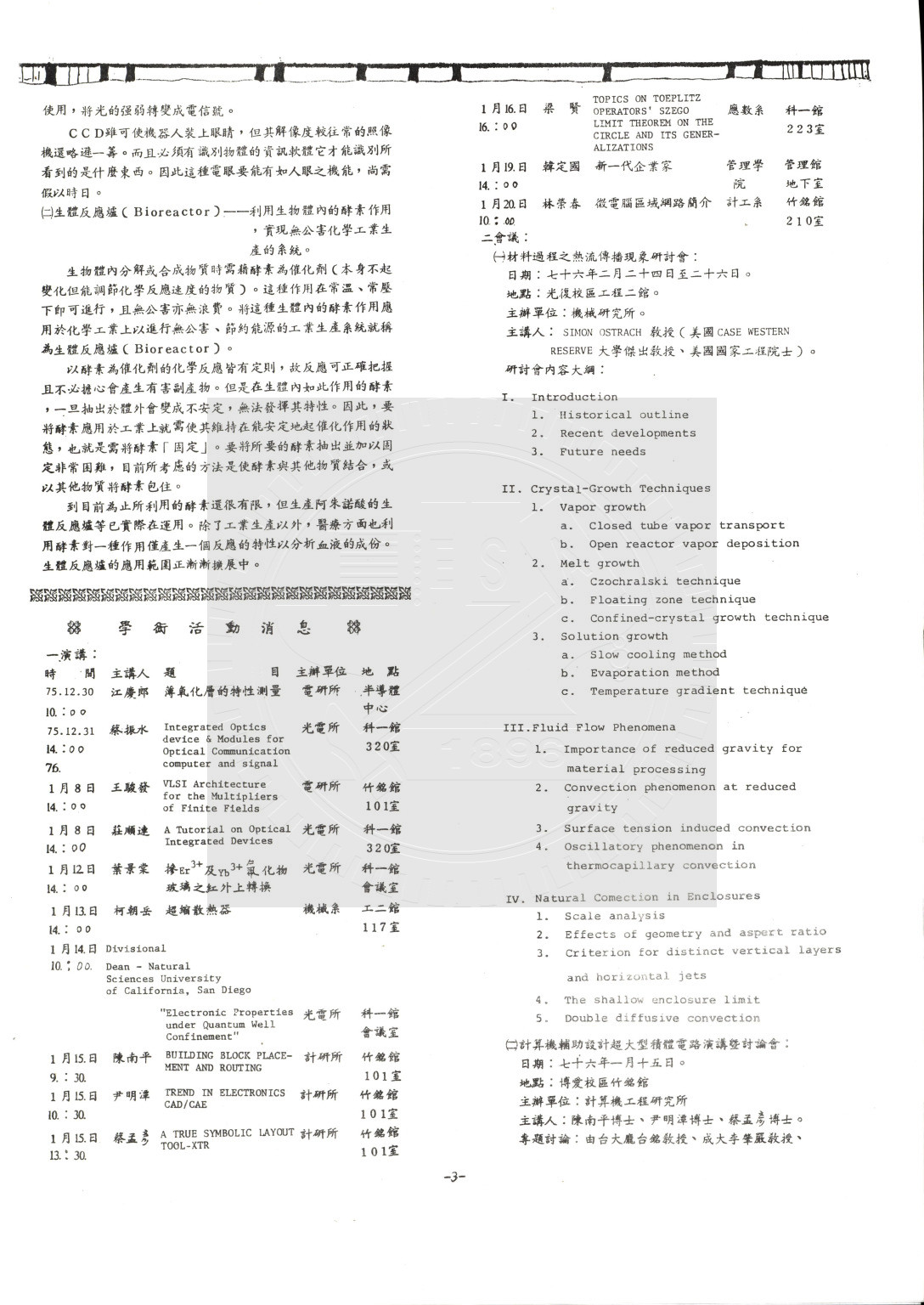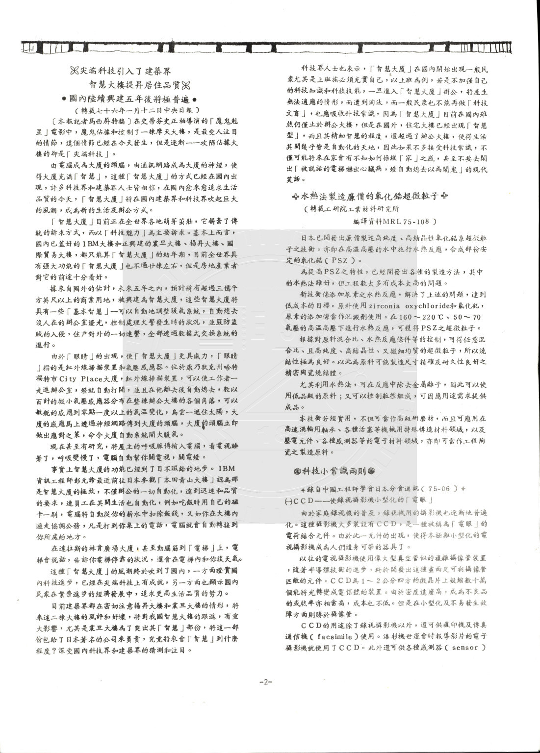 典藏地:交大校區 說明:國立交通大學科技簡訊 (76年1月)。內容:籌建首座同步輻射加速器規格已決定五年內完成;尖端科技引入了建築界智慧大樓提昇居住品質;水熱法製造廉價的氧化鋯超微粒子等。 資料類型:書刊 典藏號:110-0008-004-75(6) 品名:國立交通大學科技簡訊 (76年1月) 作者:- 年代:1987 出版者:主辦單位:建教合作委員會;協辦單位:圖書館、出版組。 數量:1冊 稽核資料:5頁 版本: 印刷品 作品語文: 中文 關鍵詞:交通大學、科技簡訊 權利聲明:國立陽明交通大學圖書館珍藏資料,如需引用,請註明來源。 取用權:開放