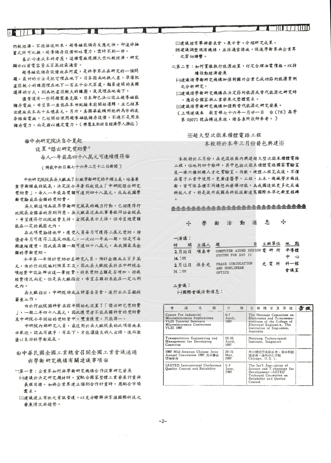 典藏地:交大校區 說明:國立交通大學科技簡訊 (76年2月)。內容:導電性研究朱經武再創紀錄;多餘電力存起來超導磁能儲存不折不扣高科技;中研院設置"傑出研究獎助費"等。 資料類型:書刊 典藏號:110-0008-004-75(7) 品名:國立交通大學科技簡訊 (76年2月) 作者:- 年代:1987 出版者:主辦單位:建教合作委員會;協辦單位:圖書館、出版組。 數量:1冊 稽核資料:3頁 版本: 印刷品 作品語文: 中文 關鍵詞:交通大學、科技簡訊 權利聲明:國立陽明交通大學圖書館珍藏資料,如需引用,請註明來源。 取用權:開放