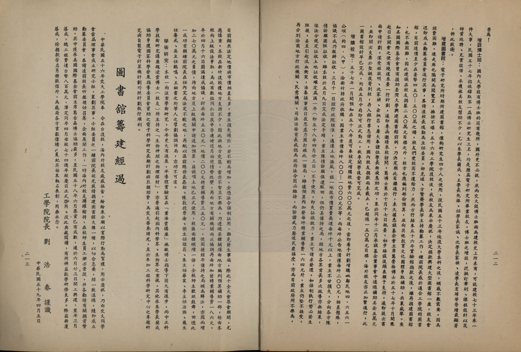典藏地:交大校區 說明:交大工學院一年來之發展 (劉浩春,五十八年四月)。內容:增設博士班、增建圖書館及籌建經過、增購校地、一年來工學院之發展 (五十九年四月)等。 資料類型:文稿 典藏號:301-0004-0002-017 品名:交大工學院一年來之發展 (劉浩春,五十八年四月) 作者:劉浩春 年代:1970 出版者:- 數量:1篇 稽核資料:4頁 版本: 油印稿 作品語文: 中文 關鍵詞:交大工學院、一年來 權利聲明:國立陽明交通大學圖書館珍藏資料,如需引用,請註明來源。 取用權:開放