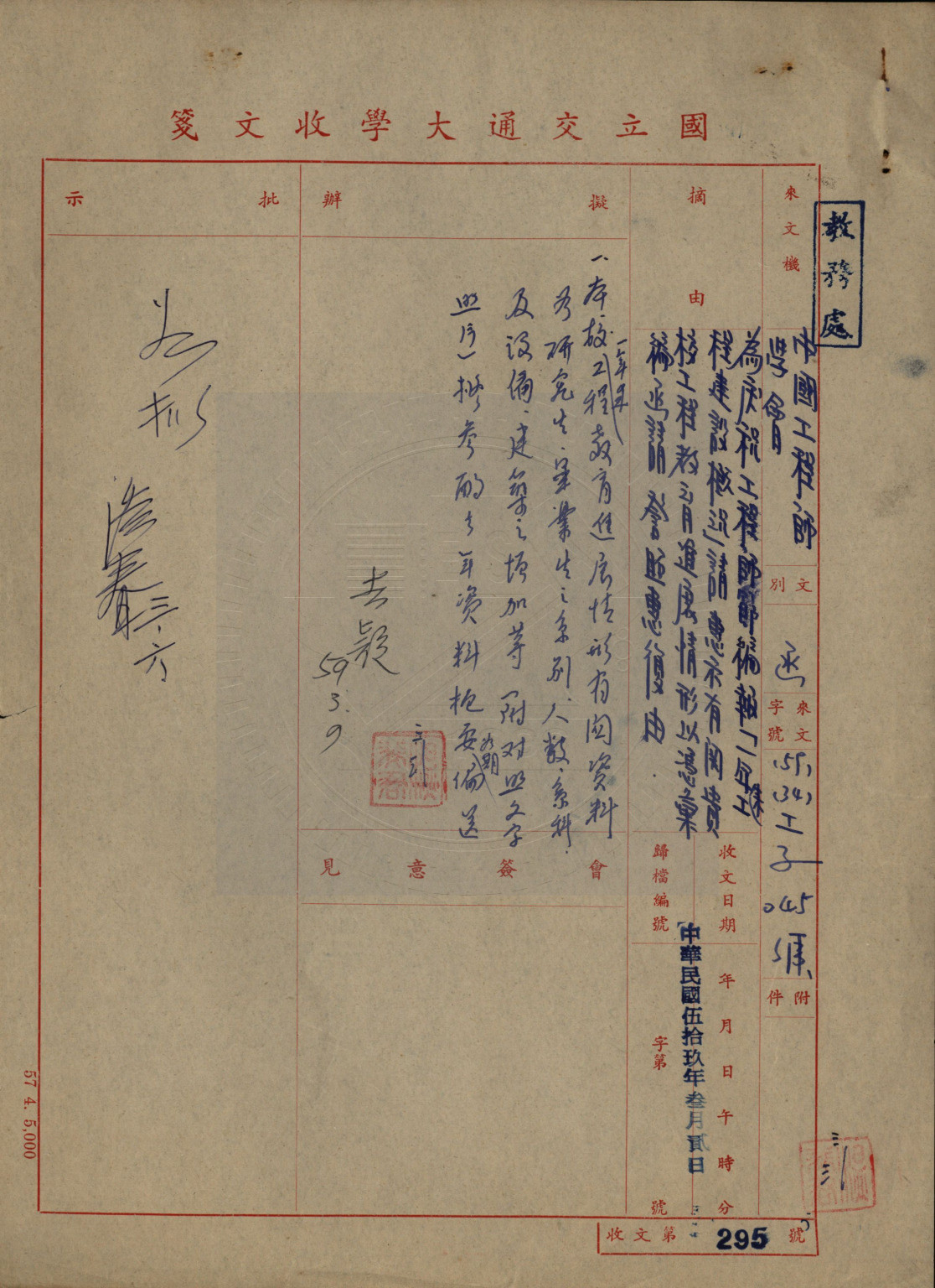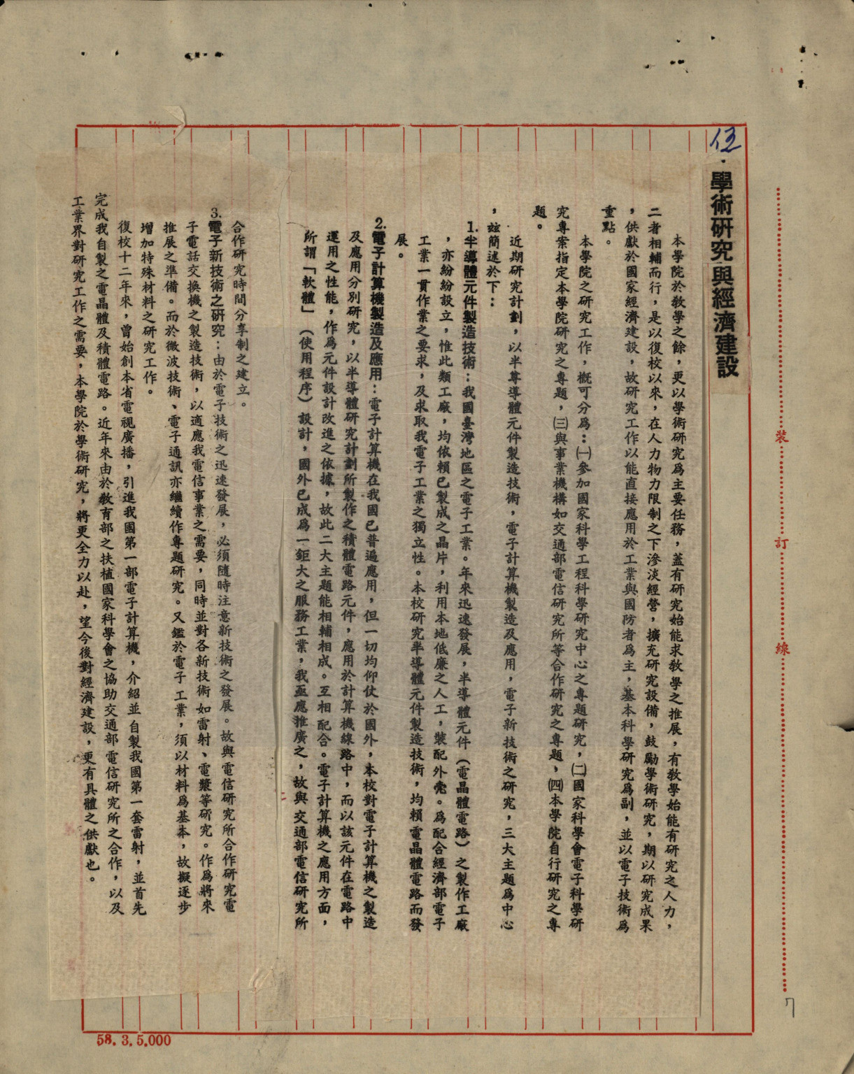 典藏地:交大校區 說明:國立交通大學工學院工程教育概況 (五十九年四月),附設備圖片。國立交通大學工學院檢送資料予中國工程師學會。(59)交大教字第351號。 資料類型:參考資料 典藏號:301-0004-0002-018 品名:國立交通大學工學院工程教育概況 (五十九年四月),附設備圖片。 作者:國立交通大學工學院 年代:1970 出版者:- 數量:1份 稽核資料:7頁 版本: 手稿、油印稿 作品語文: 中文 關鍵詞:交通大學工學院、工程教育 權利聲明:國立陽明交通大學圖書館珍藏資料,如需引用,請註明來源。 取用權:開放