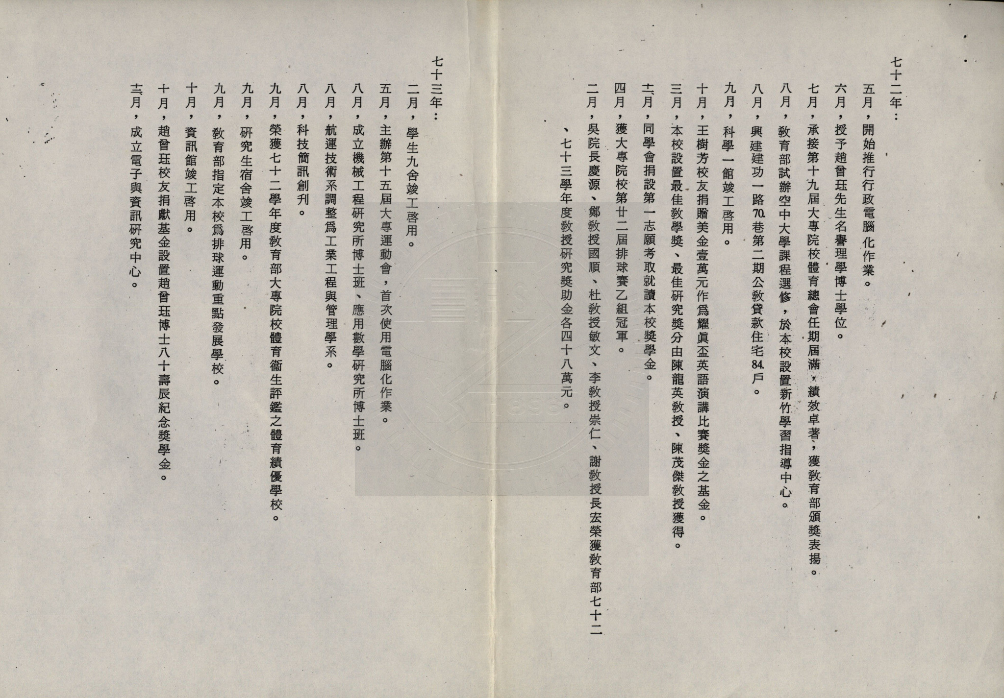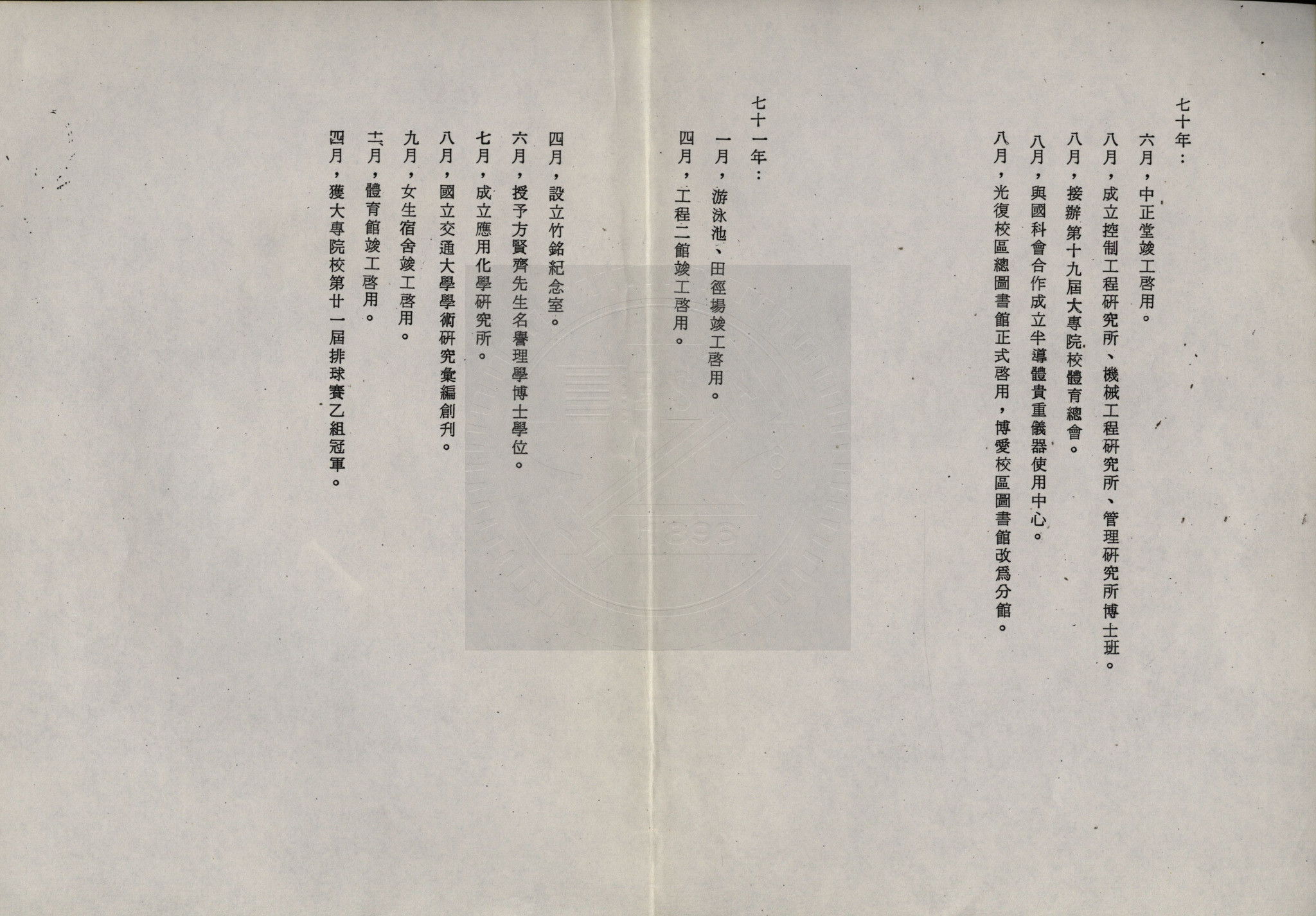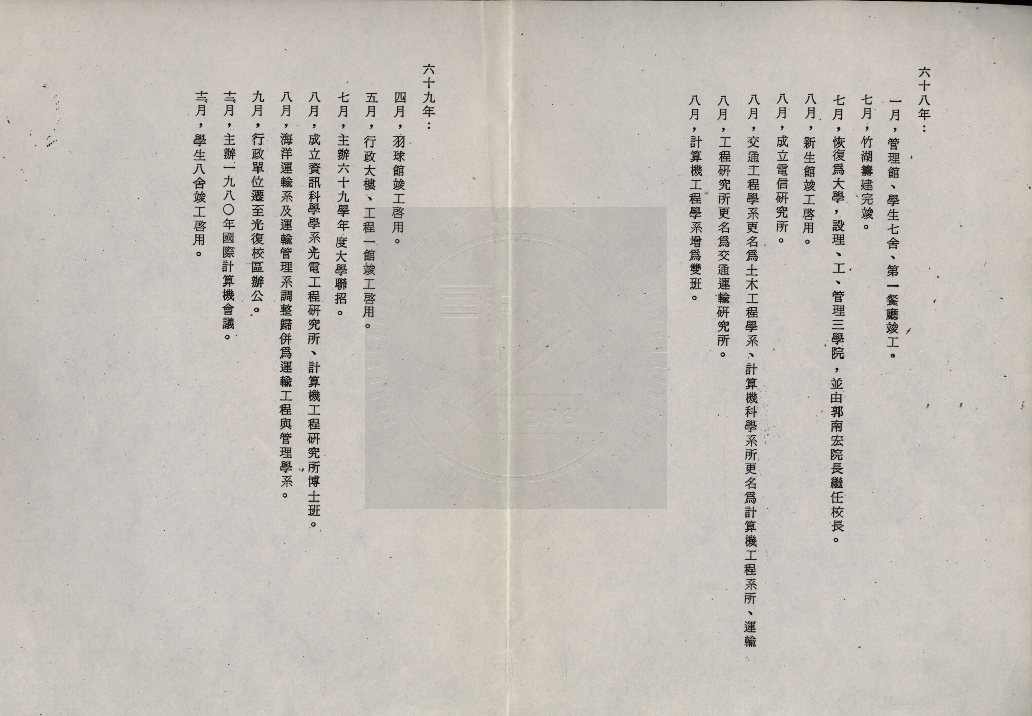 典藏地:交大校區 說明:國立交通大學六十五年至七十五年重要事蹟。內容含:交大學報創刊、征收光復校區土地、遷至光復校區辦公、成立電子與資訊研究中心等。 資料類型:參考資料 典藏號:301-0004-0002-029 品名:國立交通大學六十五年至七十五年重要事蹟 作者:國立交通大學 年代:1986 出版者:- 數量:1件 稽核資料:5頁 版本: 影印稿 作品語文: 中文 關鍵詞:國立交通大學、六十五年、七十五年、重要事蹟 權利聲明:國立陽明交通大學圖書館珍藏資料,如需引用,請註明來源。 取用權:開放