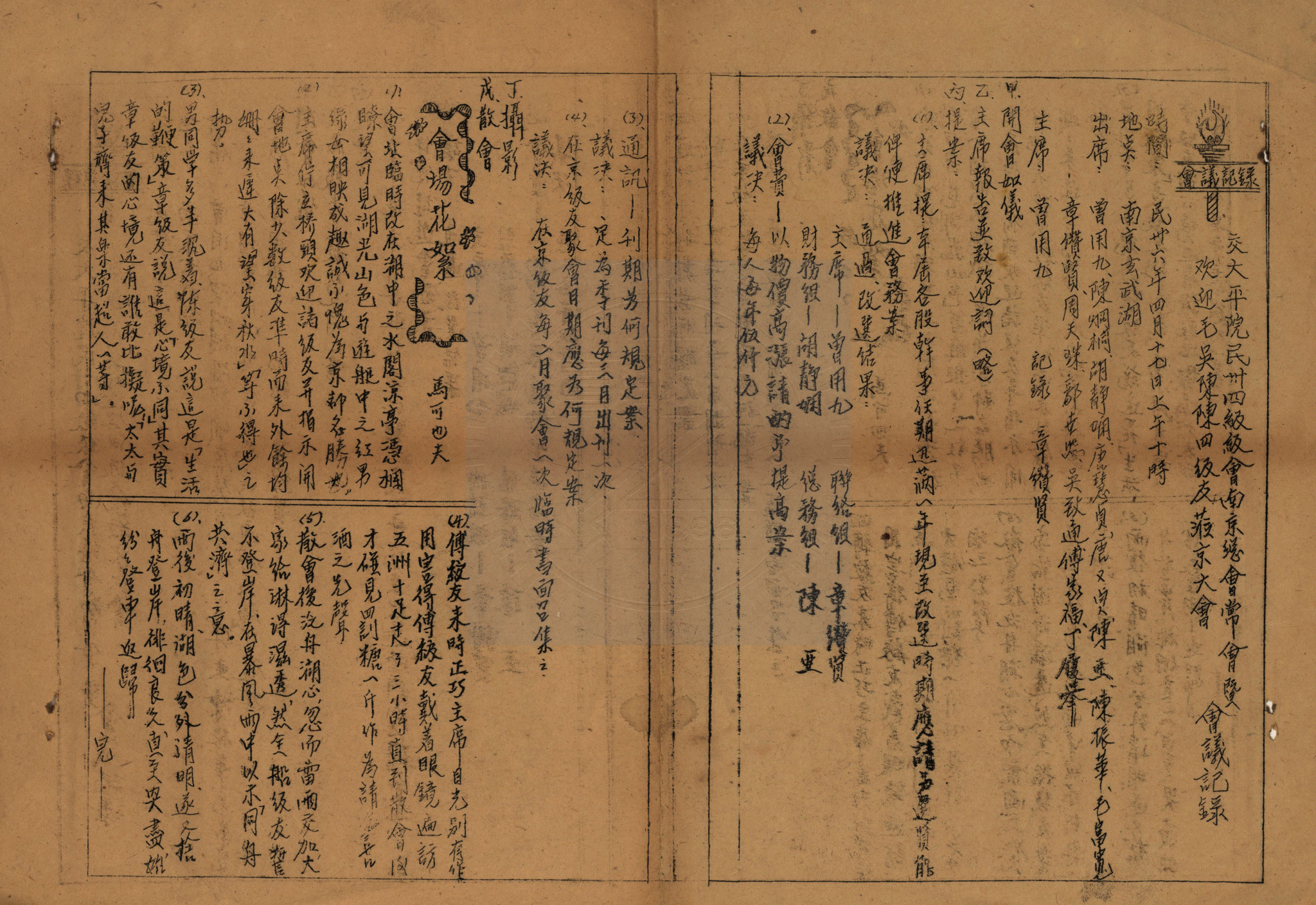 典藏地:交大校區 說明:交大平院民卅四級級會南京總會常會暨歡迎毛吳陳陳四級友蒞京大會會議記錄。時間:民卅六年四月十七日;地點:南京玄武湖。 資料類型:會議資料 典藏號:301-0006-0002 品名:交大平院民卅四級級會南京總會常會暨歡迎毛吳陳陳四級友蒞京大會會議記錄 作者:交大平院民卅四級級會南京總會常會 年代:1947 出版者:- 數量:1件 稽核資料:8頁 版本: 複寫稿 作品語文: 中文 關鍵詞:交大平院、民卅四級、南京總會、常會、毛吳陳陳四級友 權利聲明:國立陽明交通大學圖書館珍藏資料,如需引用,請註明來源。 取用權:開放