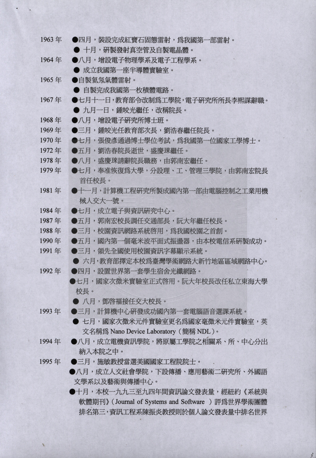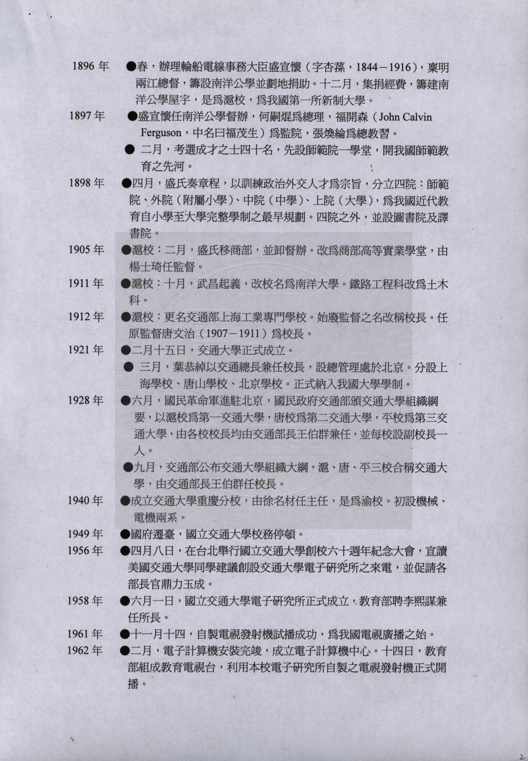 典藏地:交大校區 說明:國立交通大學校史紀年 (簡潔版):1896~2001。 資料類型:文稿 典藏號:301-0204-0001-002 品名:國立交通大學校史紀年 (簡潔版):1896~2001 作者:國立交通大學 年代:2000 出版者:- 數量:1篇 稽核資料:4頁 版本: 影印稿 作品語文: 中文 關鍵詞:國立交通大學、校史紀年 權利聲明:國立陽明交通大學圖書館珍藏資料,如需引用,請註明來源。 取用權:開放