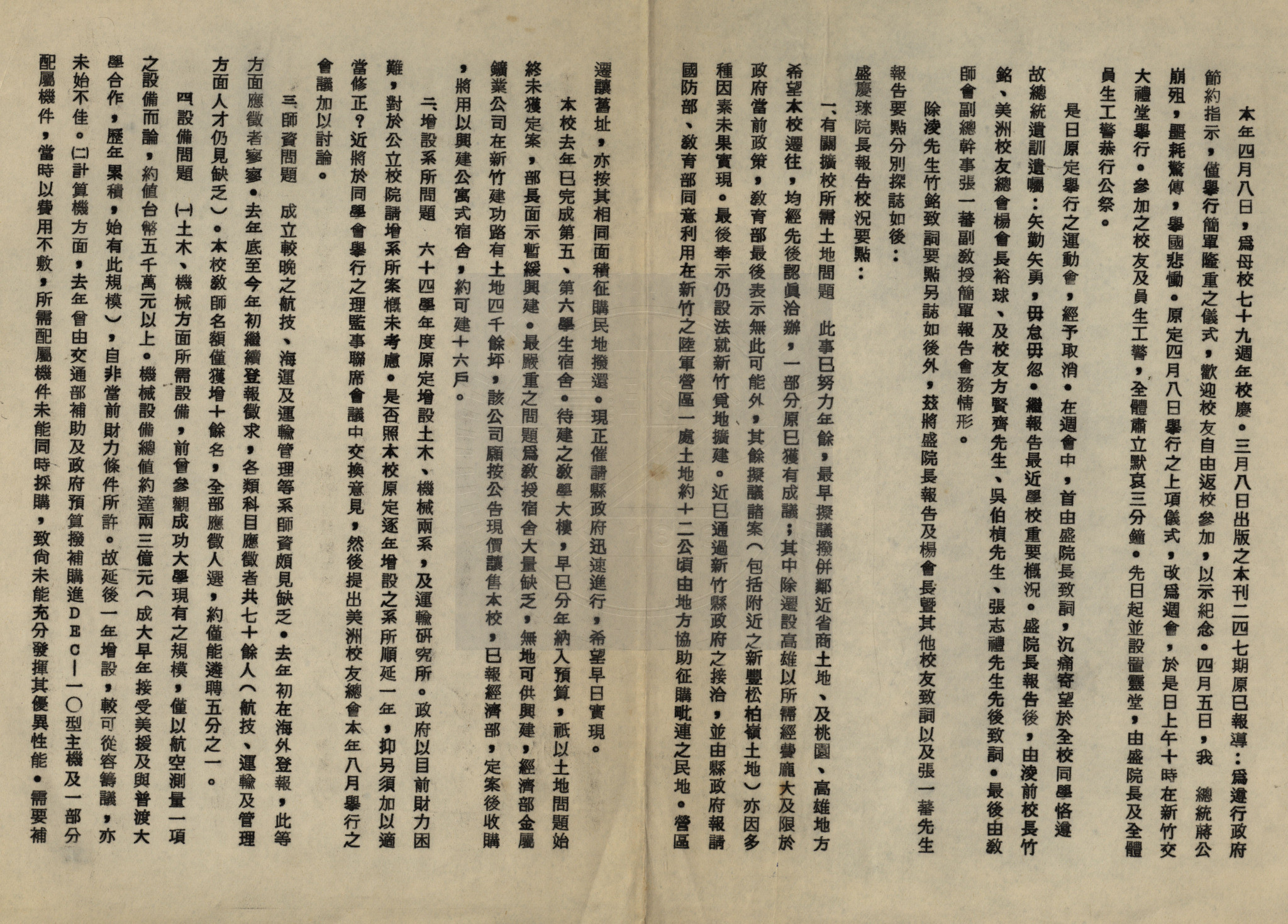 簡訊:郭南宏教授借調擔任教育部技術及職業教育司司長、擴校所需土地問題等。